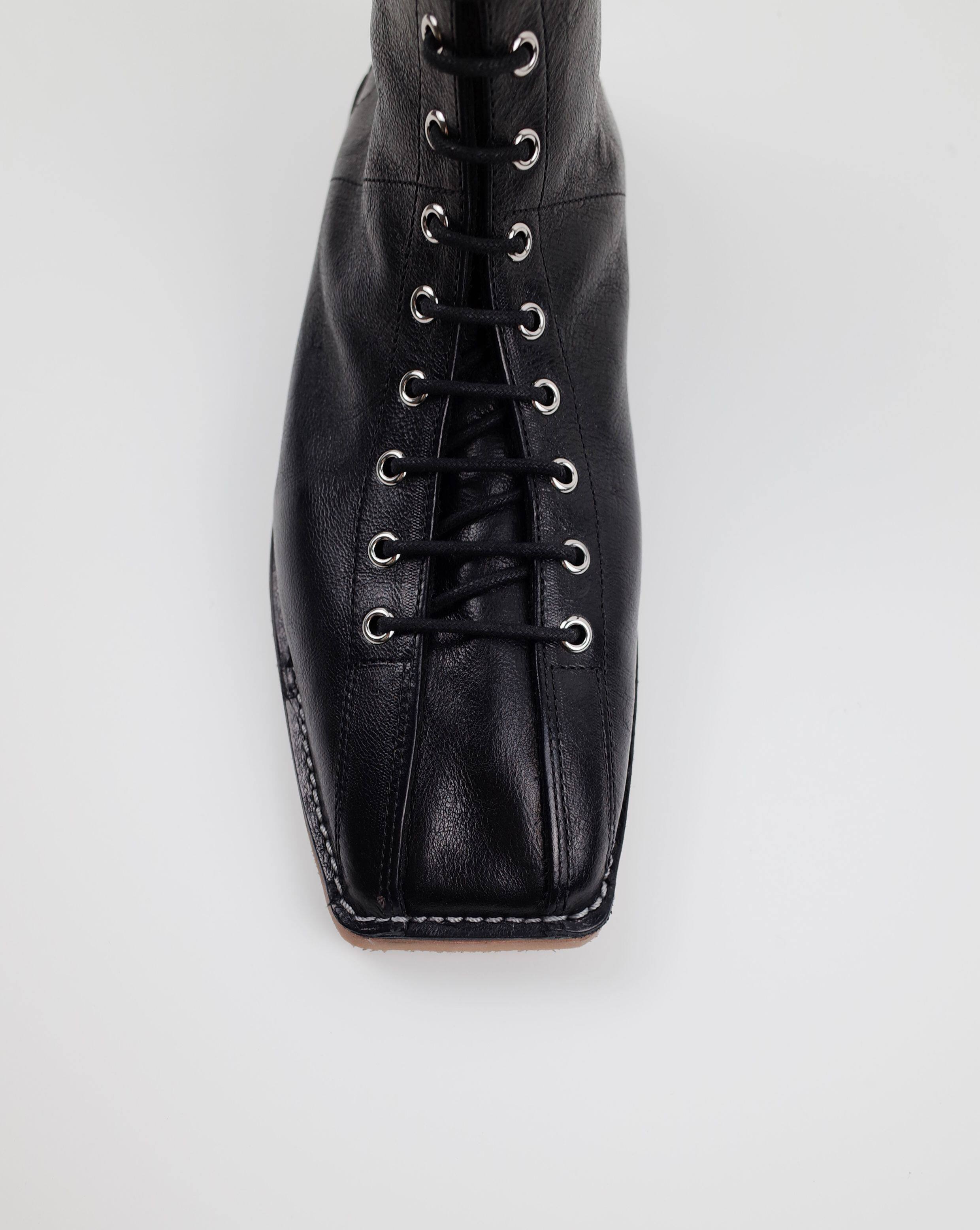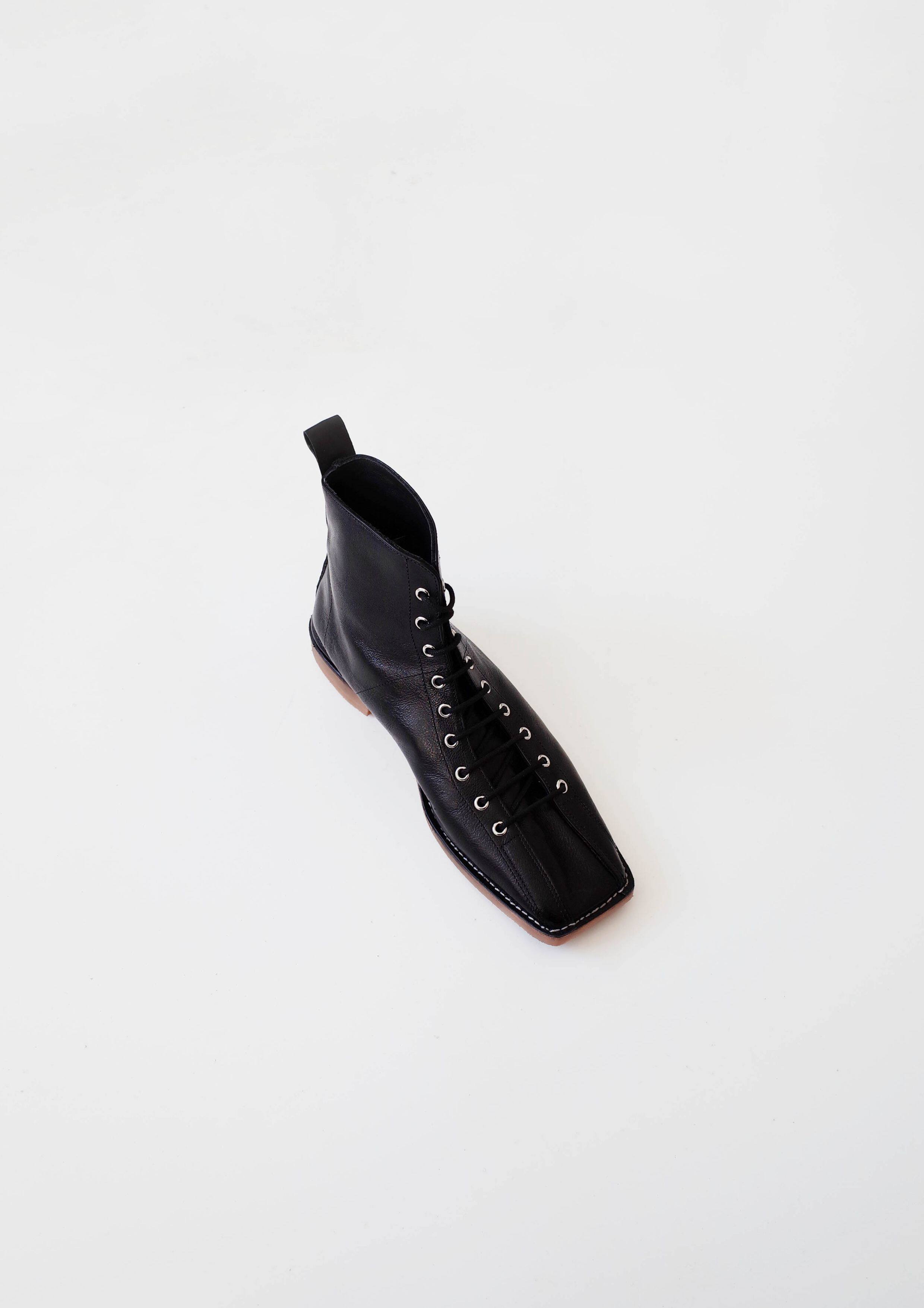 Home Work 18/Aw Collection Square Toe Lace-Up Decorative Simple Flat Boots Black