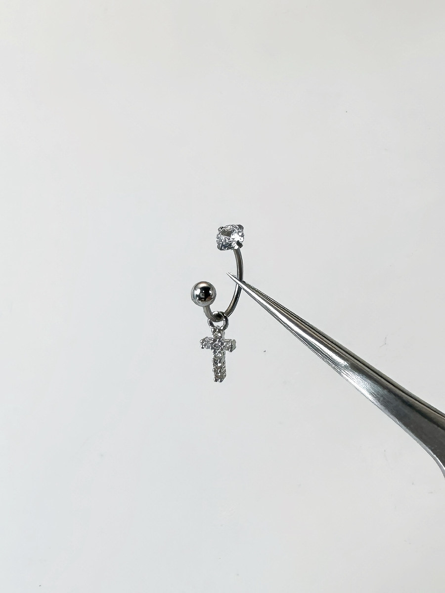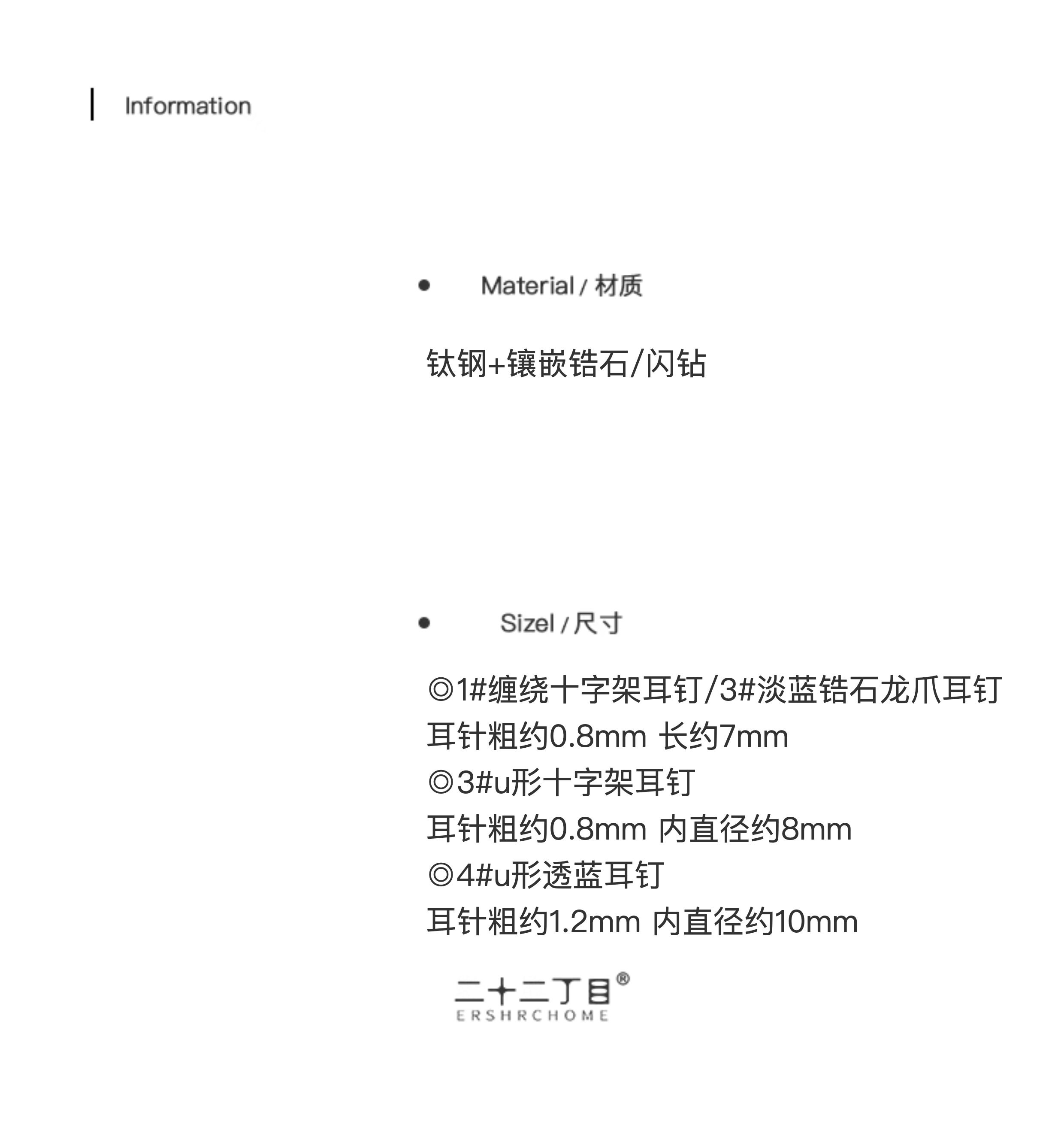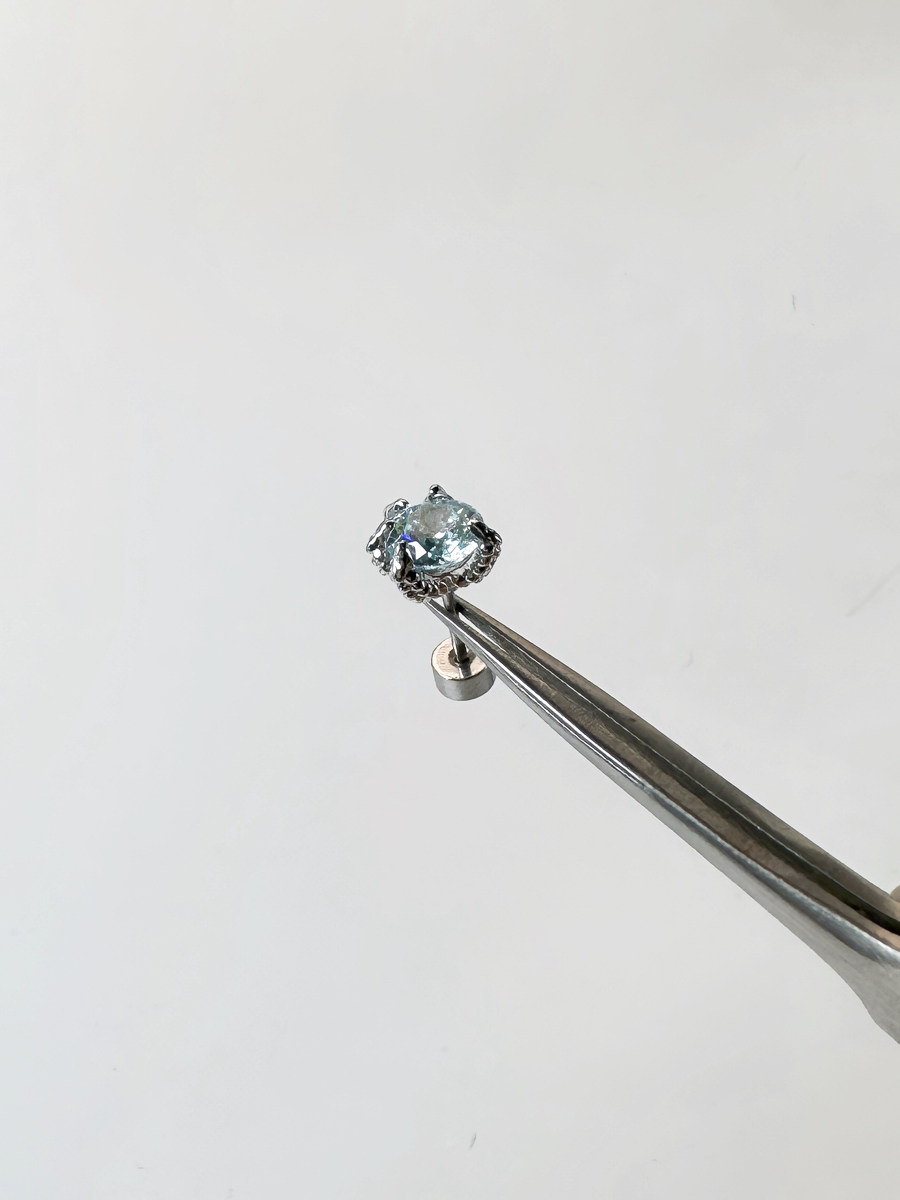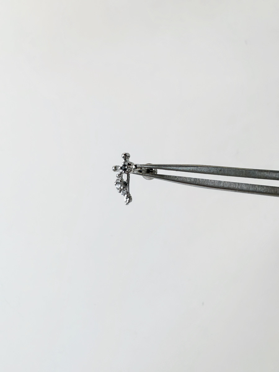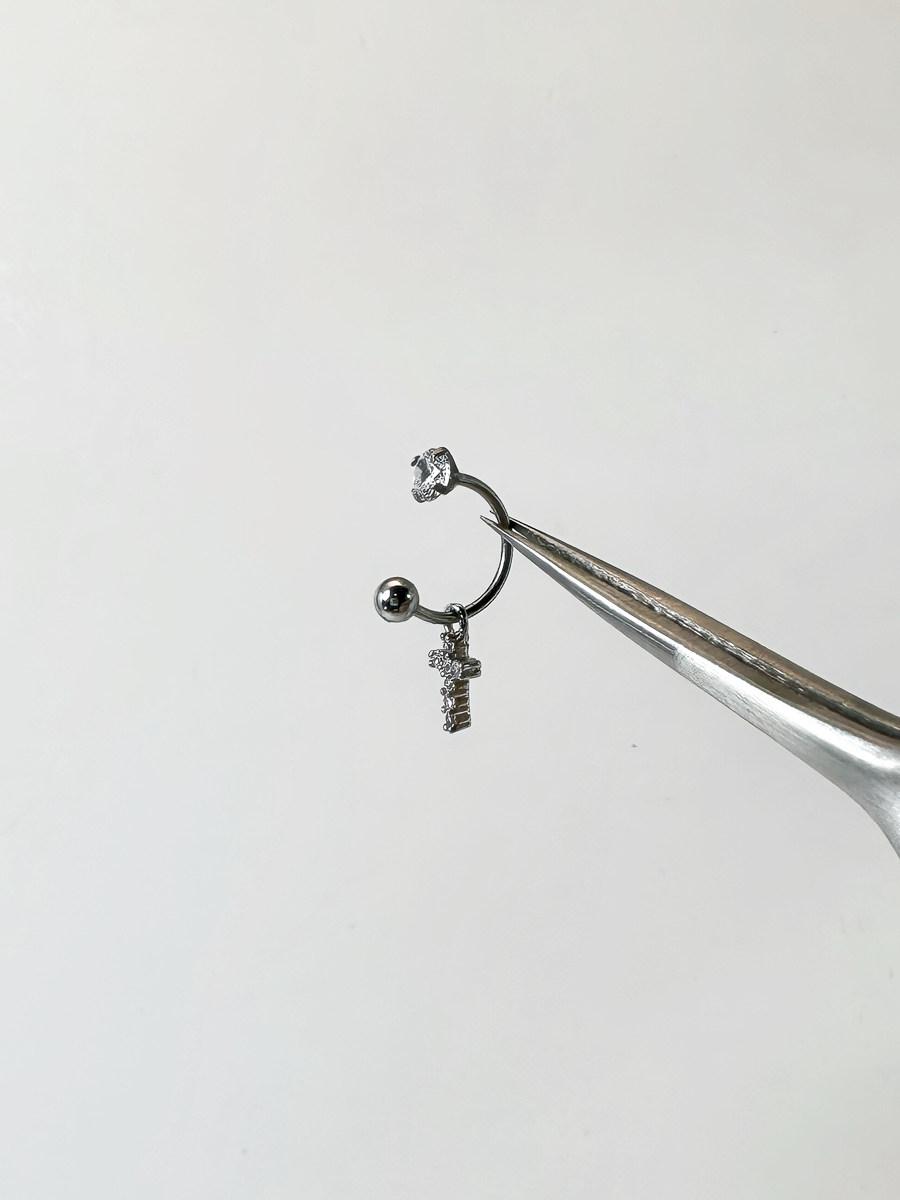 Twenty-Two-Chome Super Flash Cross Earrings Flash Diamond Titanium Steel Dragon Claw Horseshoe Ring Light Blue Ear Bone Cochlear Nail