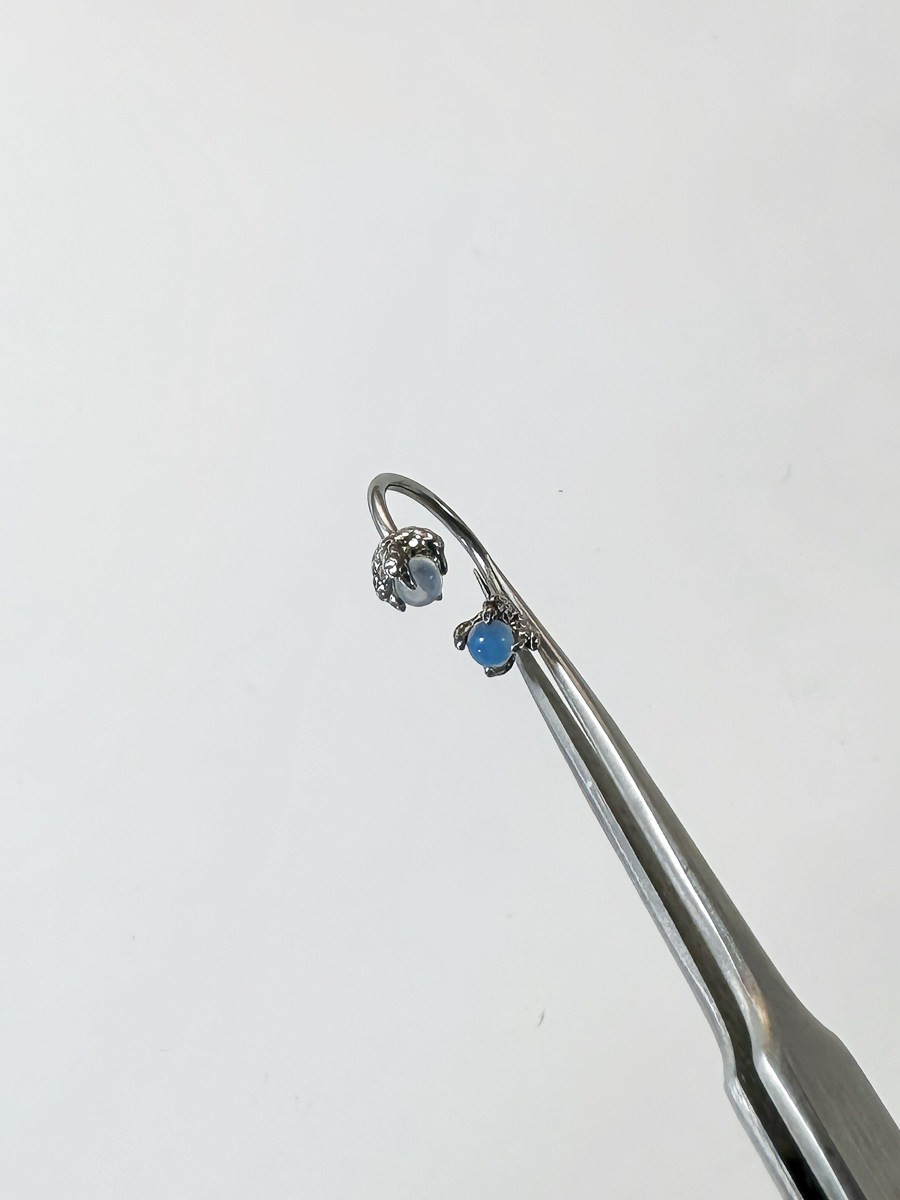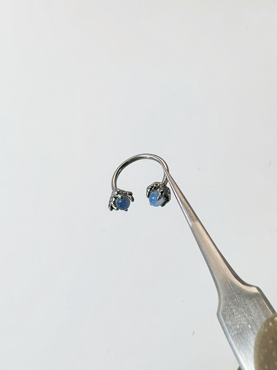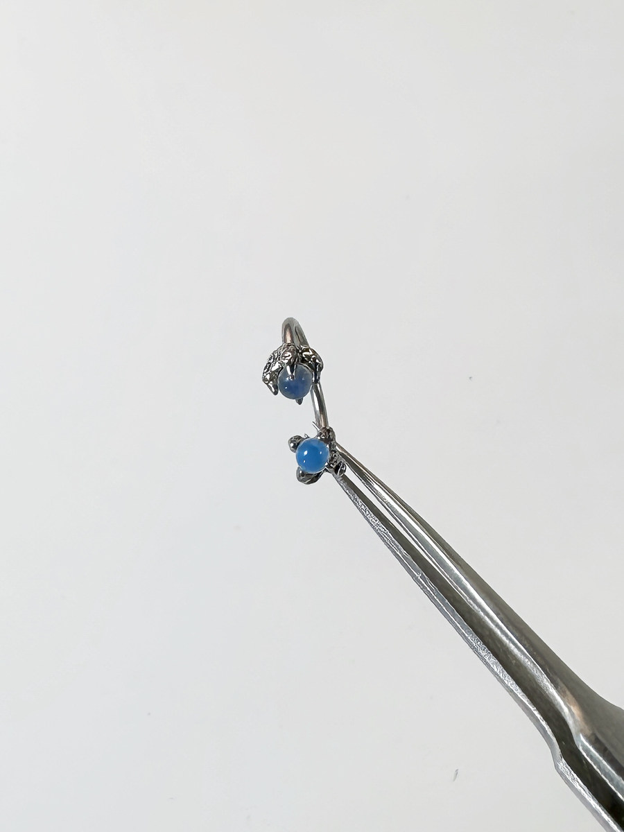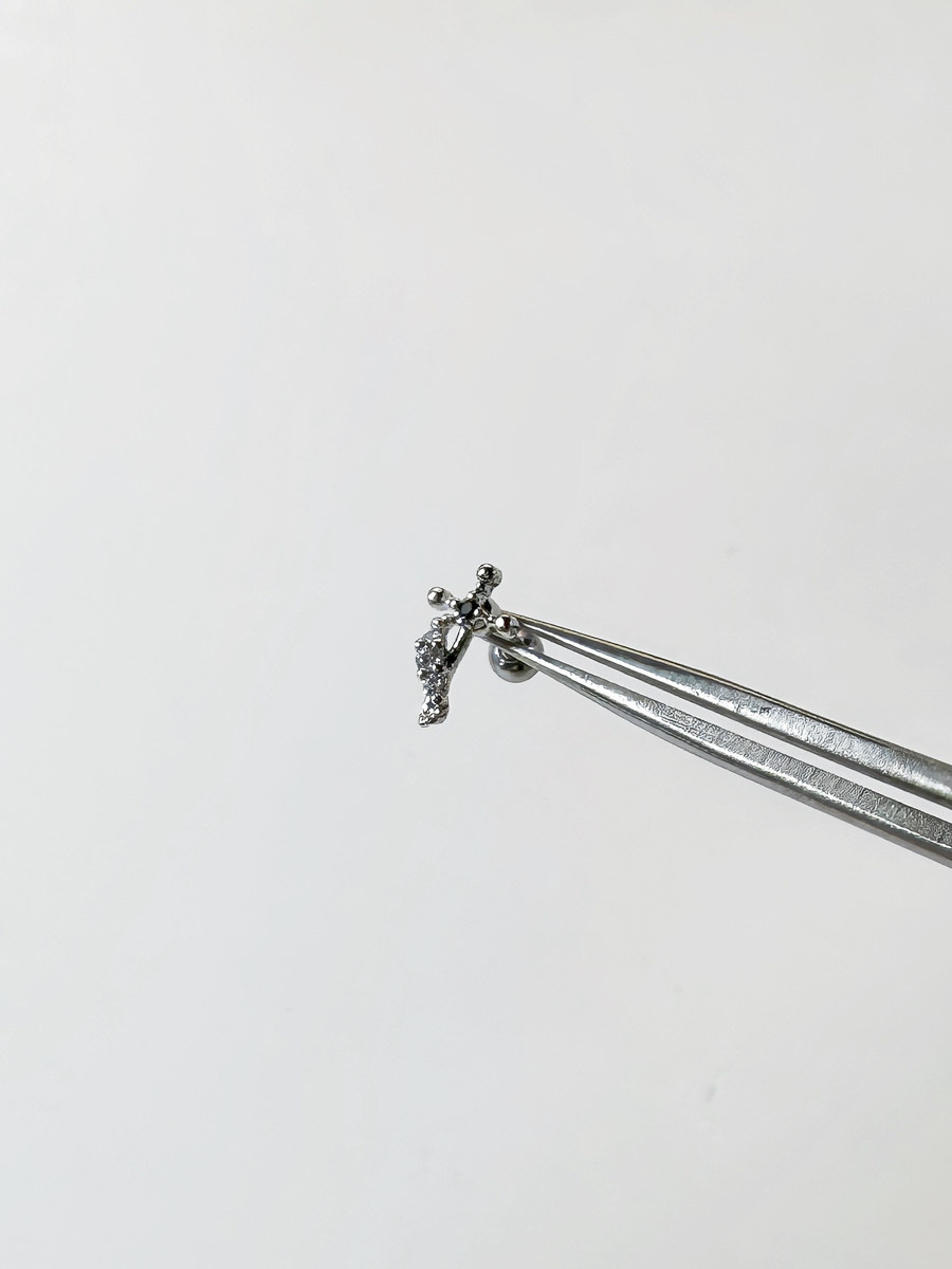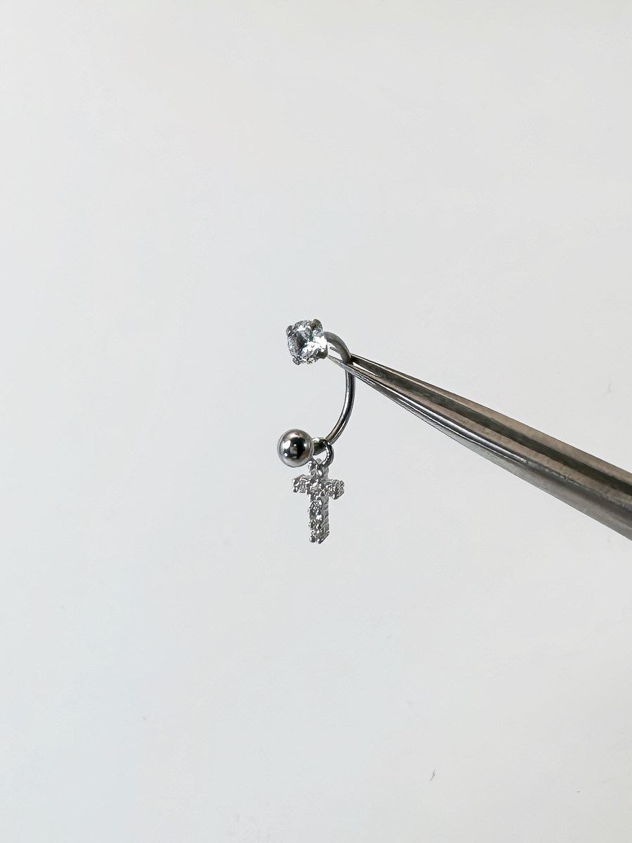 Twenty-Two-Chome Super Flash Cross Earrings Flash Diamond Titanium Steel Dragon Claw Horseshoe Ring Light Blue Ear Bone Cochlear Nail