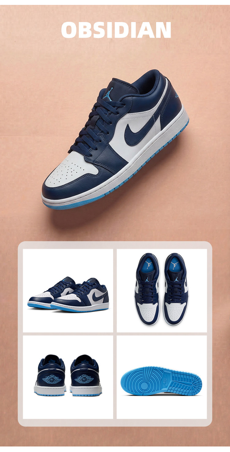 Sneakers Air Jordan 1 Blue and White Men's Low-Top Retro Sports Basketball Shoes 553558-404
