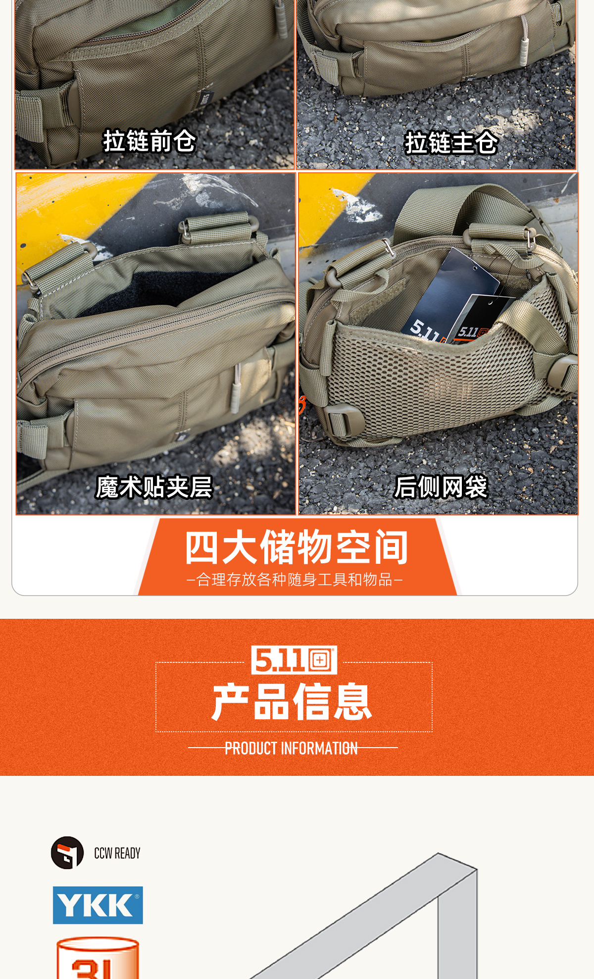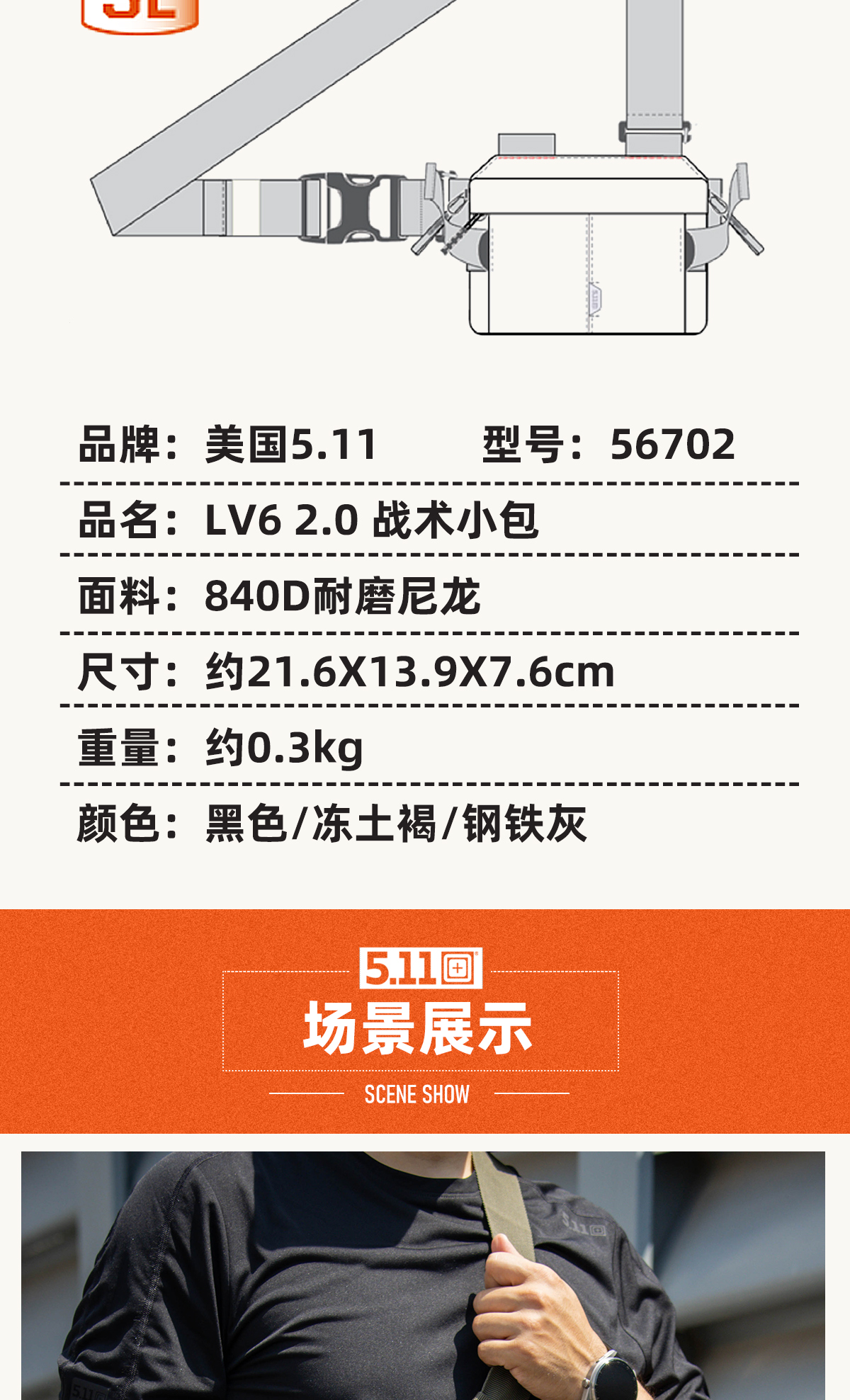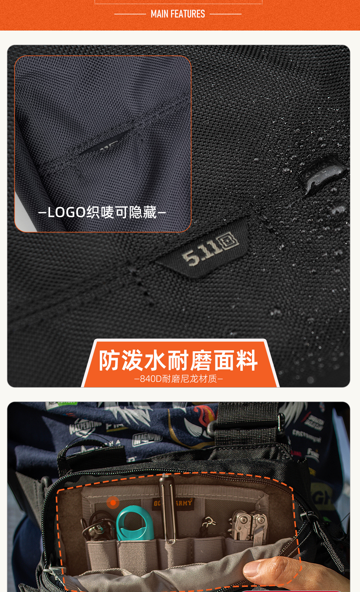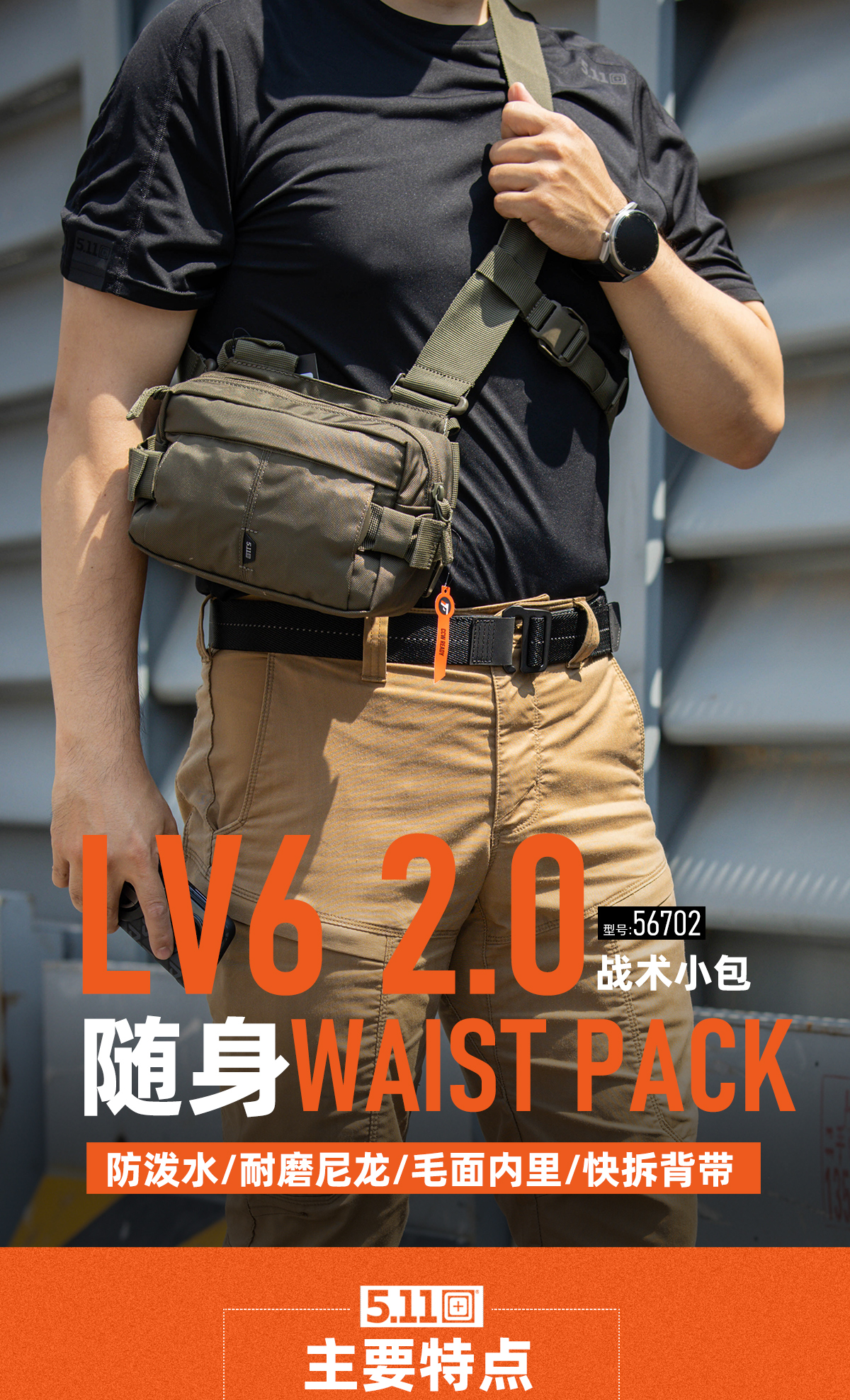 5.11Lv6 Tactical Small Bag Outdoor Portable Waist Bag Commuter Shoulder Bag 511 Travel Crossbody Chest Bag 56702