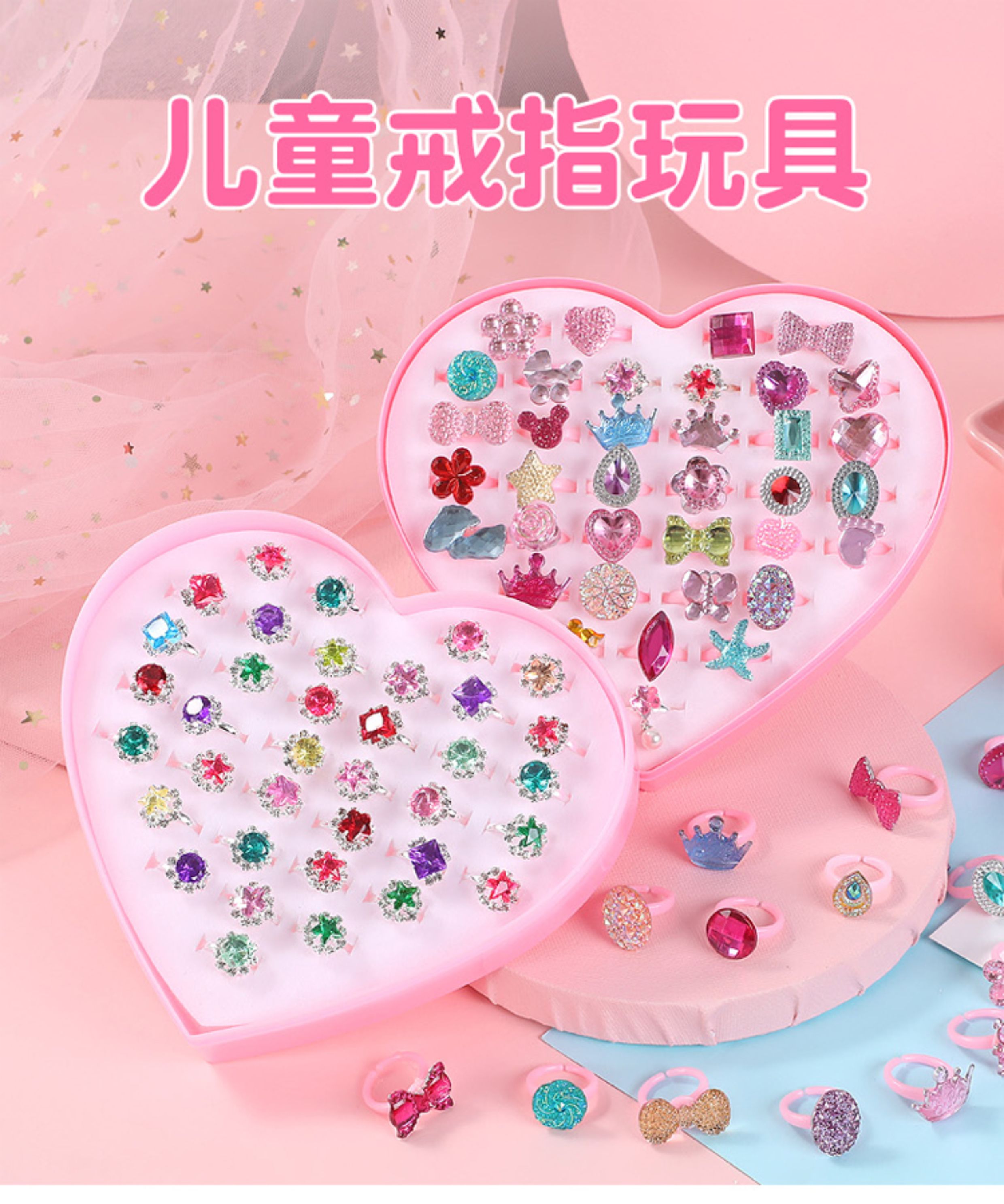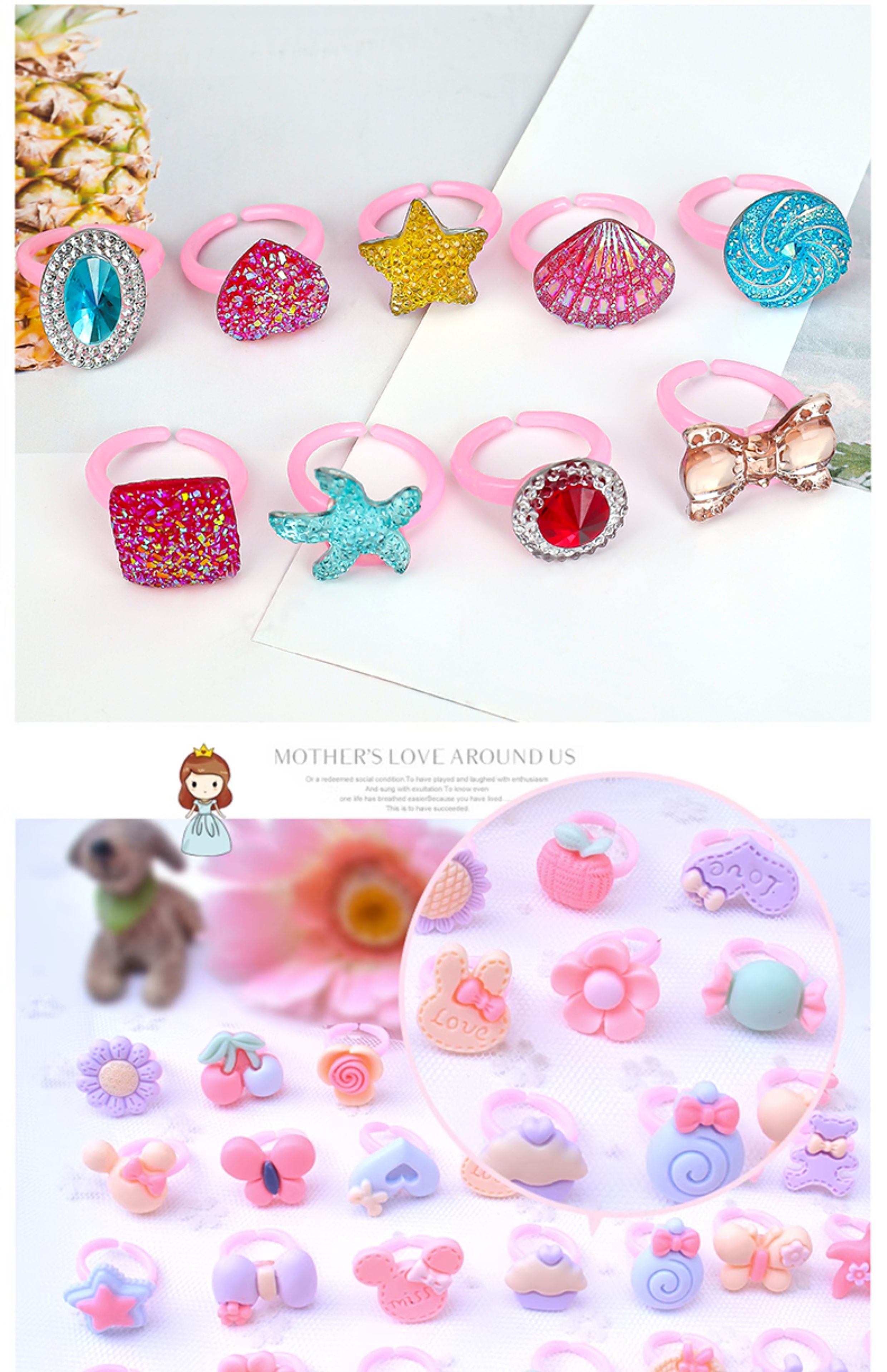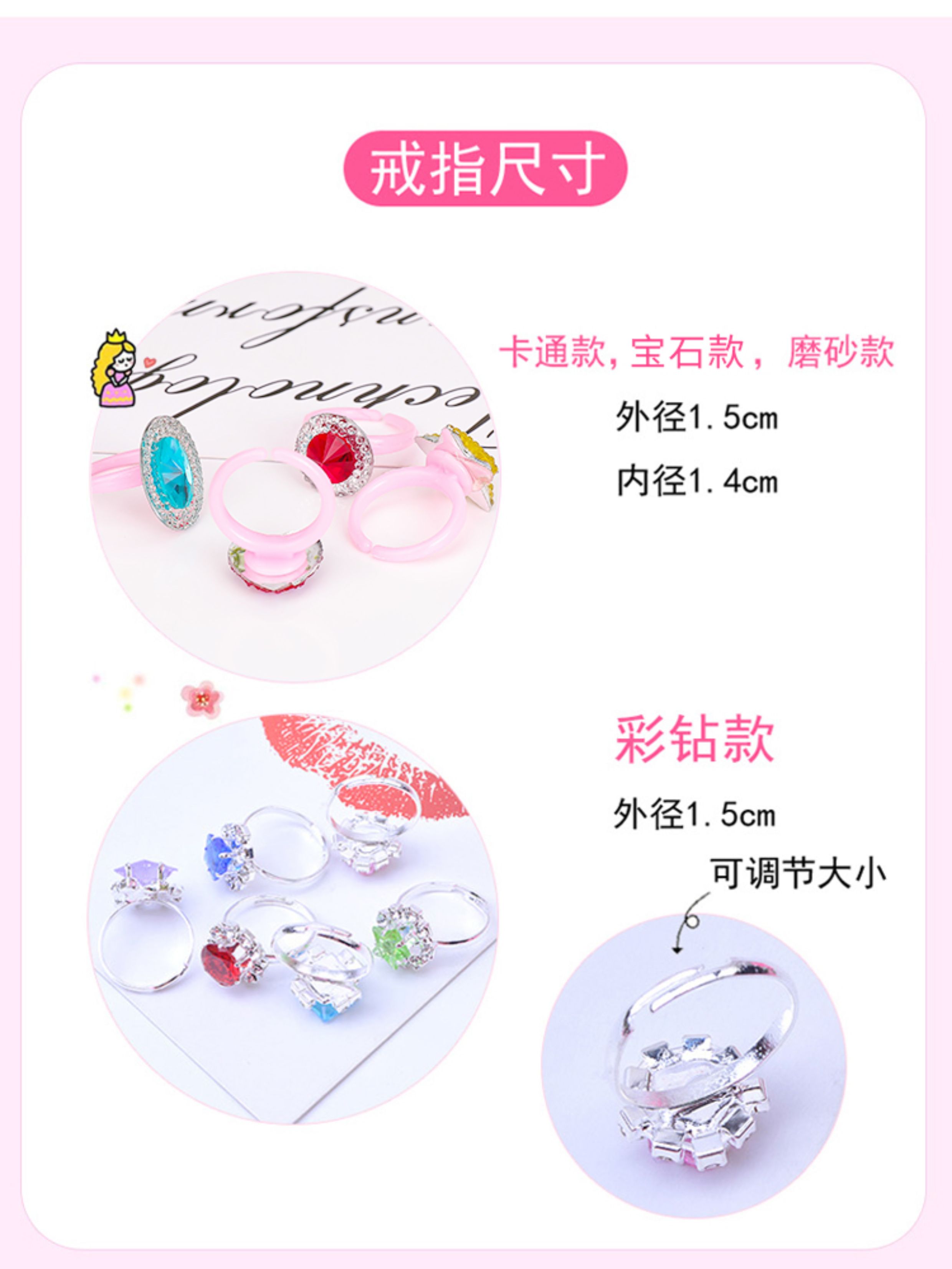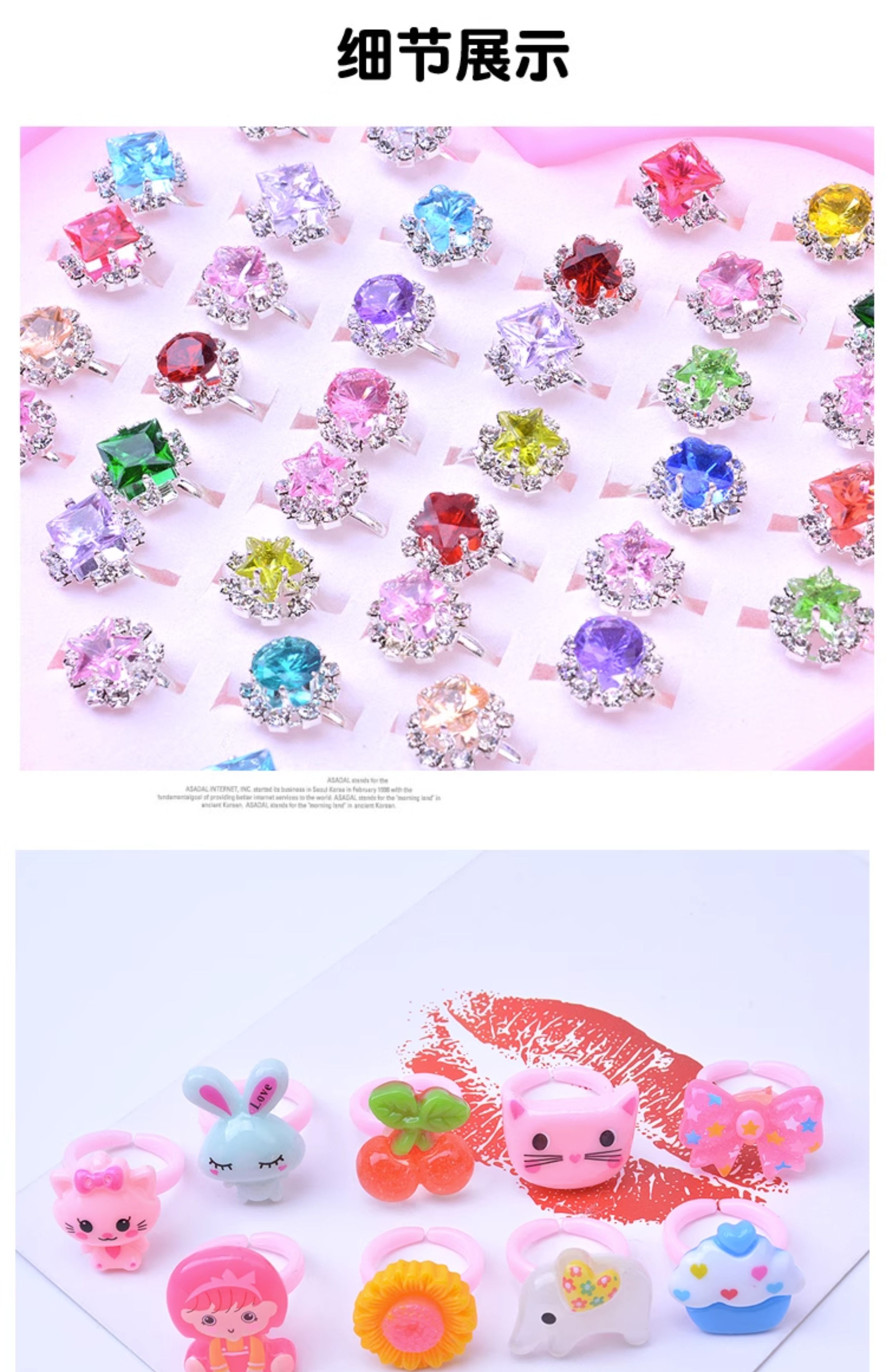 Children's Ring, Girl's Imitation Diamond Gemstone Toy, Girl's Rhinestone Jewelry, Baby's Imitation Crystal Small Ring, Princess Jewelry