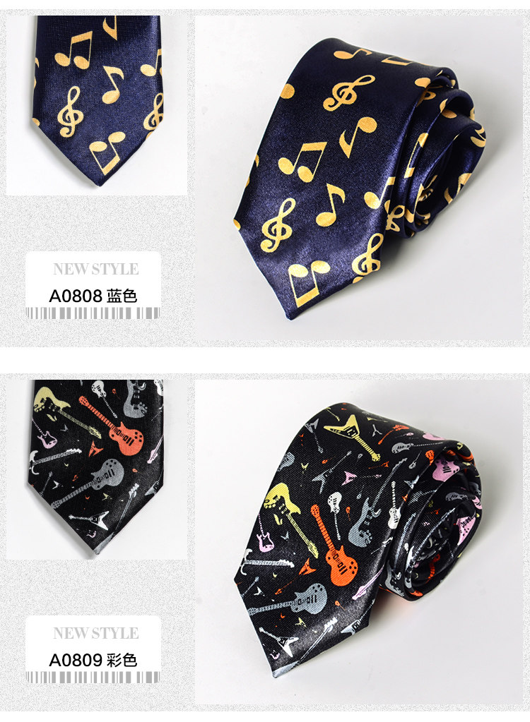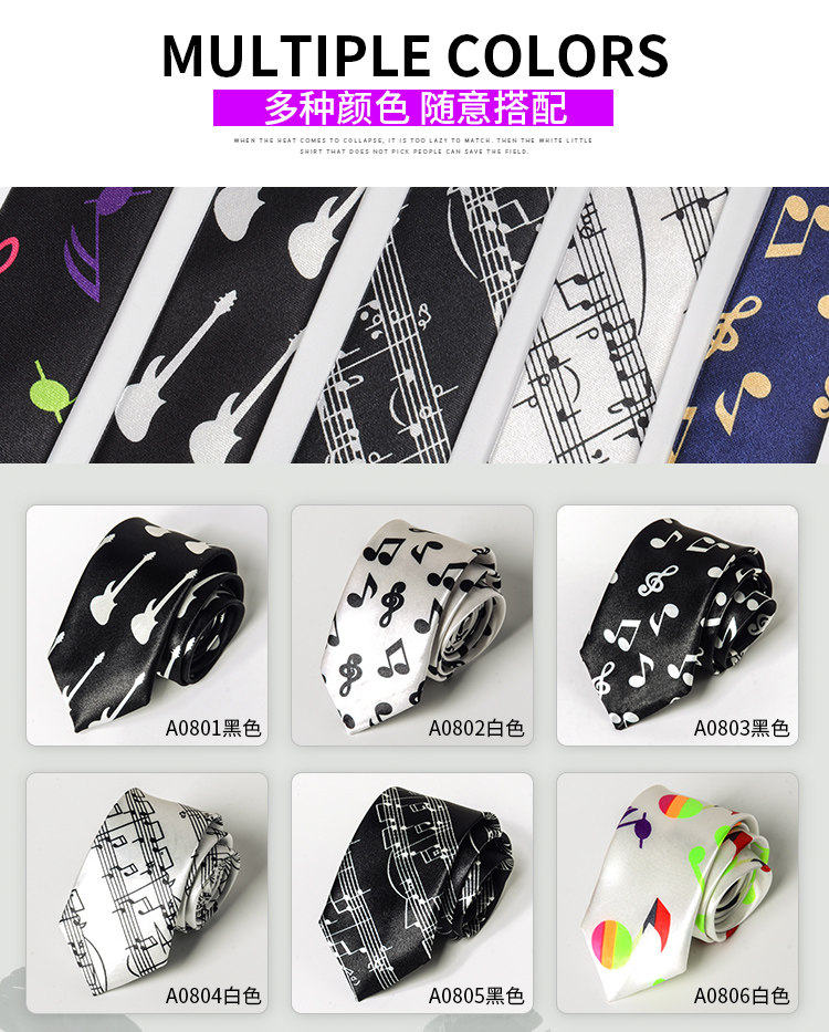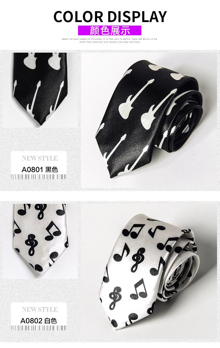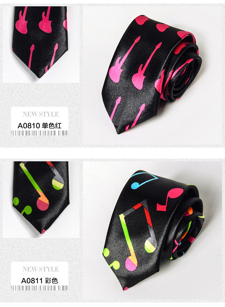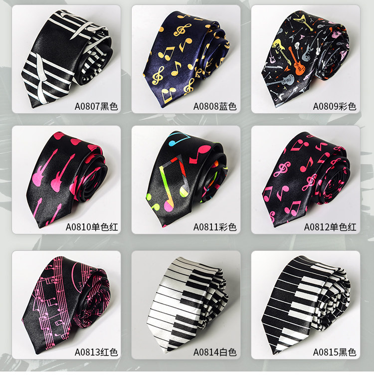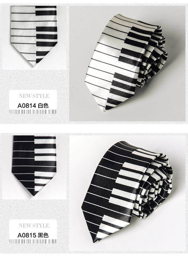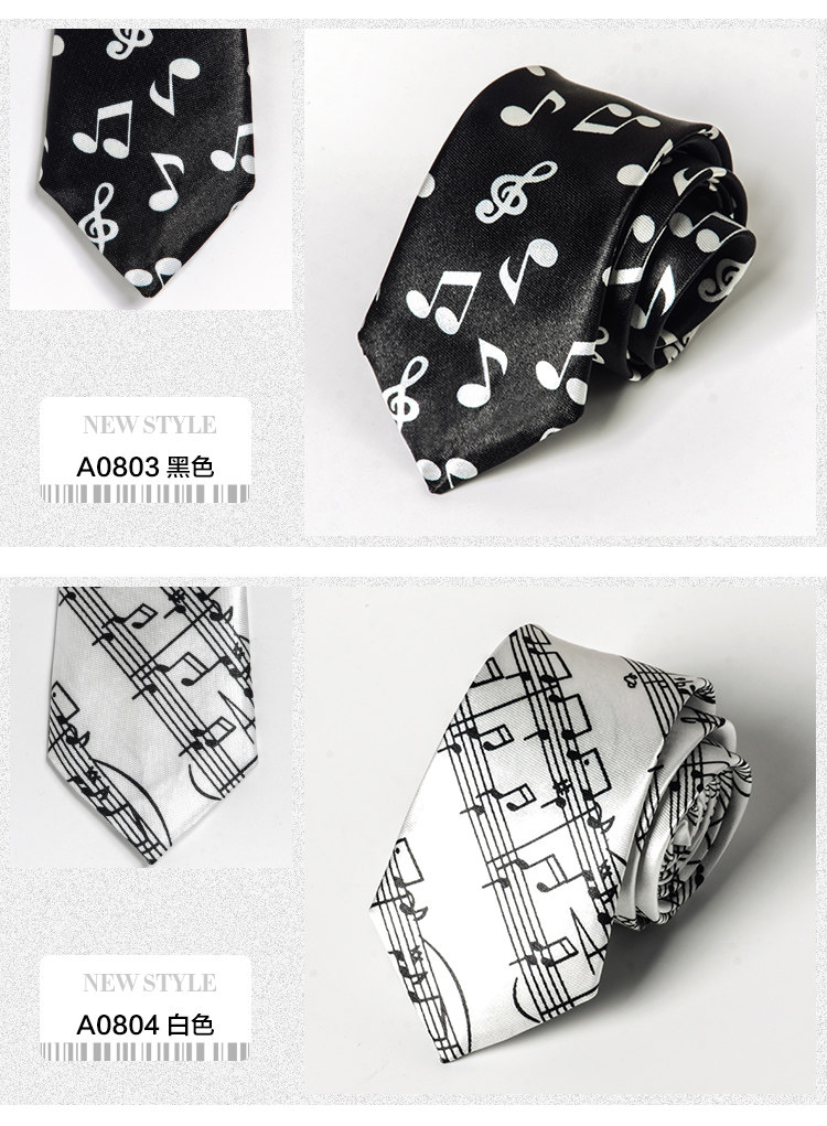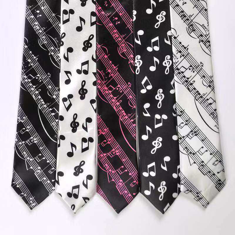 Handmade Fashion Music Tie for Male and Female Students, College Style, Piano Notes, Korean Version, Unique, Cool, Hip-Hop, Black