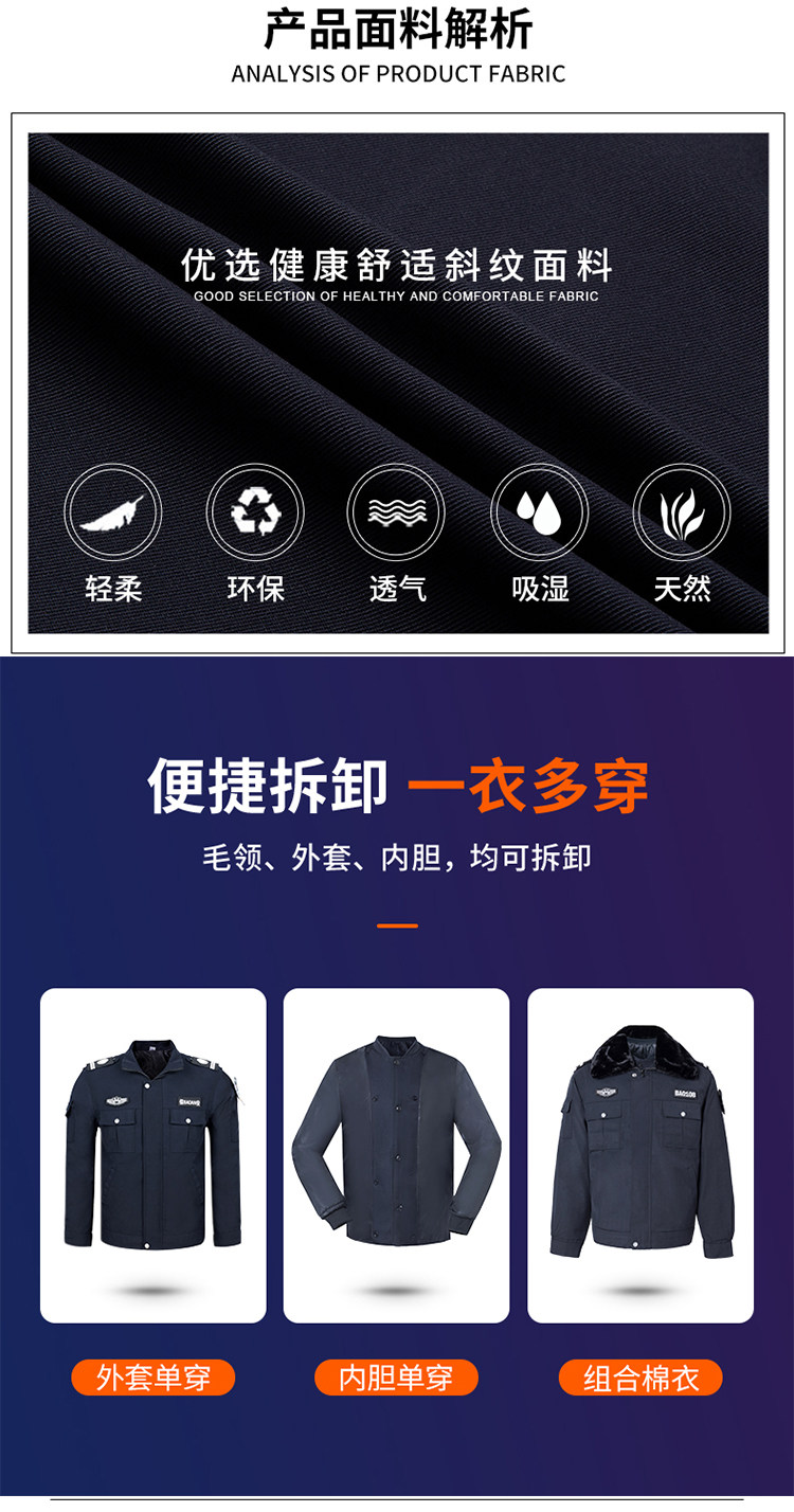 Winter Security Cotton Coat, Multi-Functional Training Short Coat, Cotton Coat, Cashmere Cold-Proof Labor Protection Clothing, Thickened Set