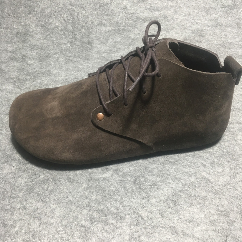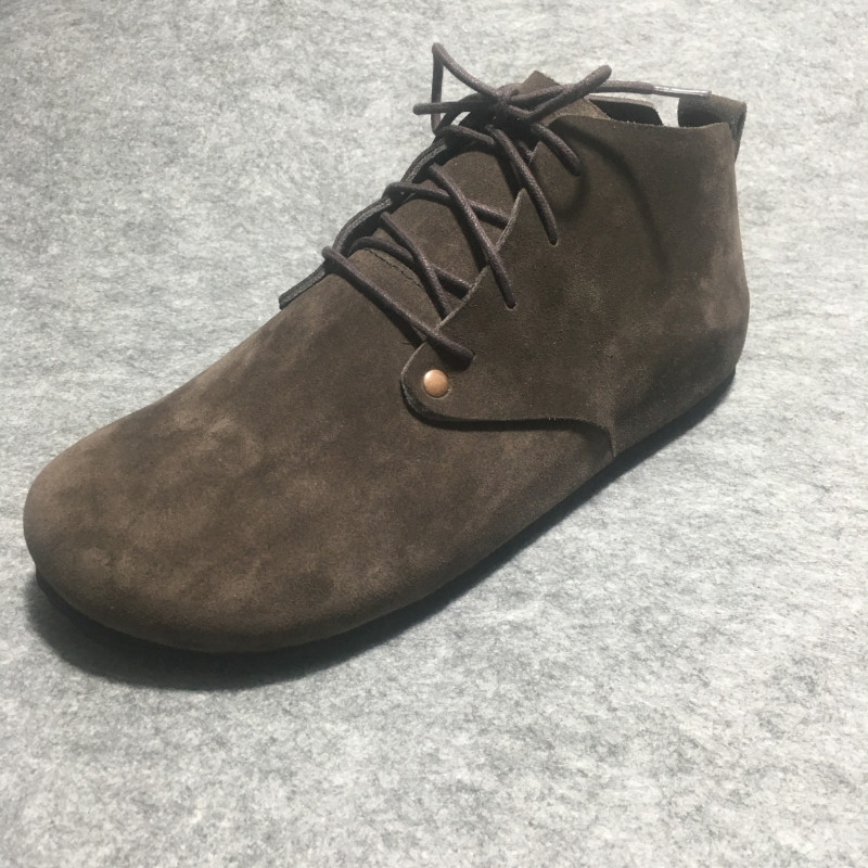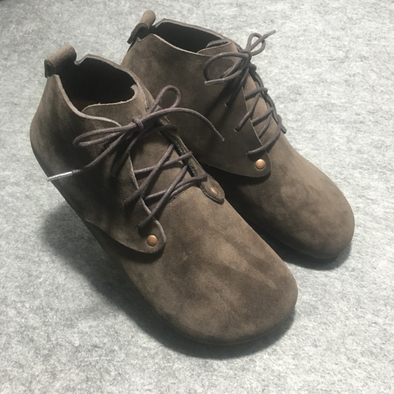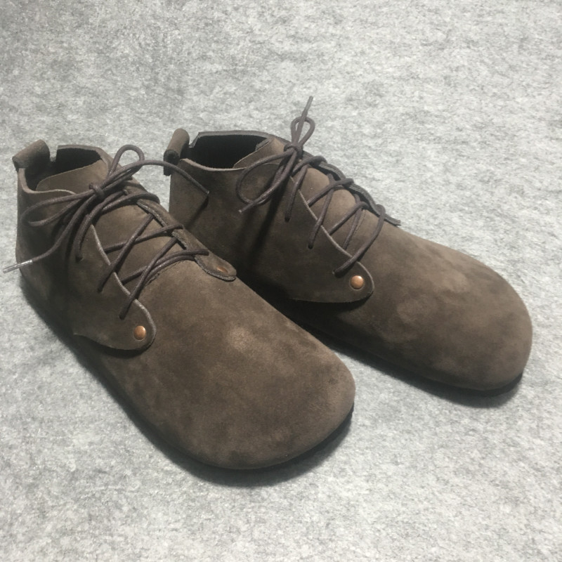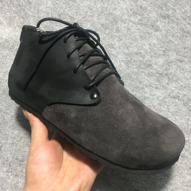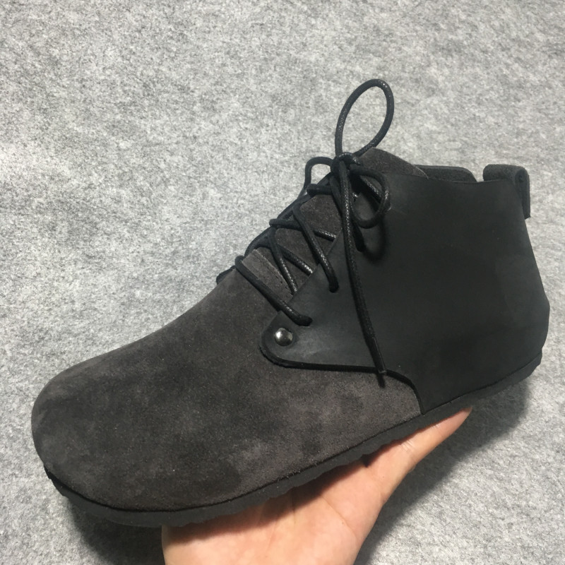Bmx High-Top Cork Birkenstock-Style Shoes, Pure Leather Single Shoes, Round Toe, Large Toe, Love-Themed, Flat-Soled, Lace-Up, Greek Style