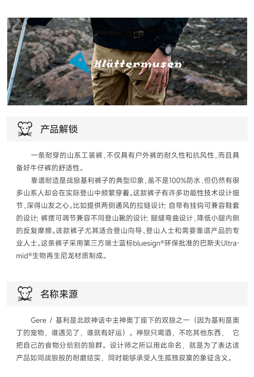 Klattermusen Mountain Climbing Rat Wolf Warriors Keeley Men's and Women's Abrasion Resistant Wind-resistant Quick-drying Hiking Casual pants 10592