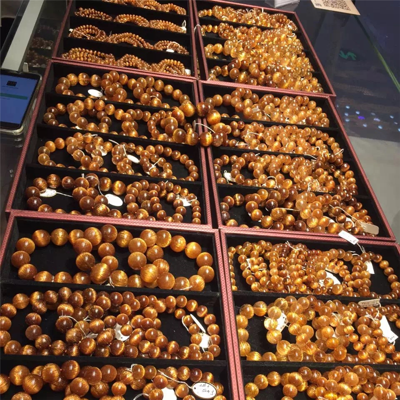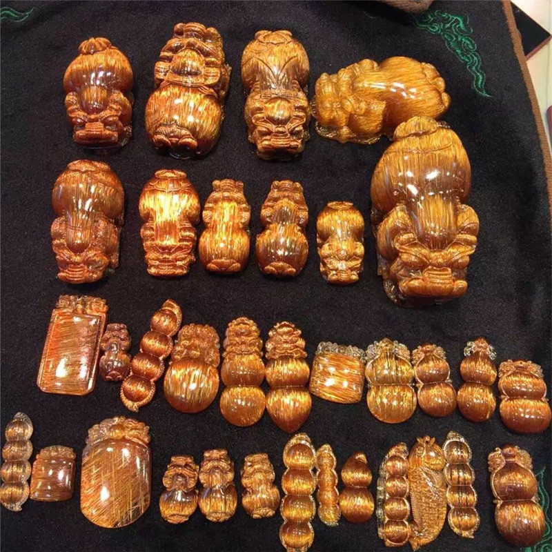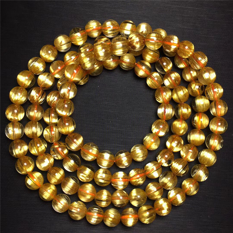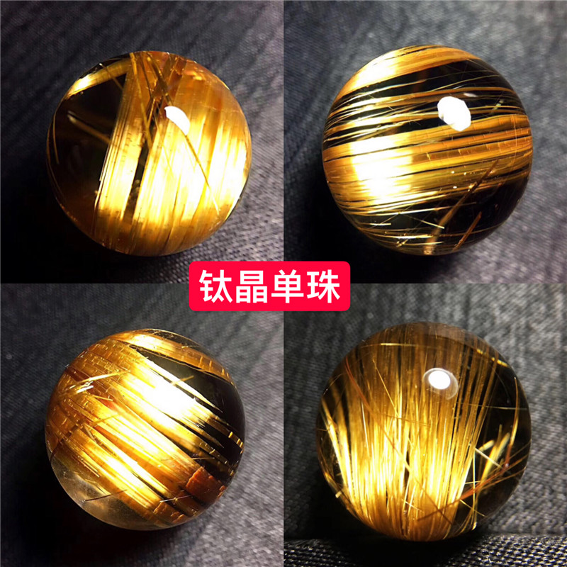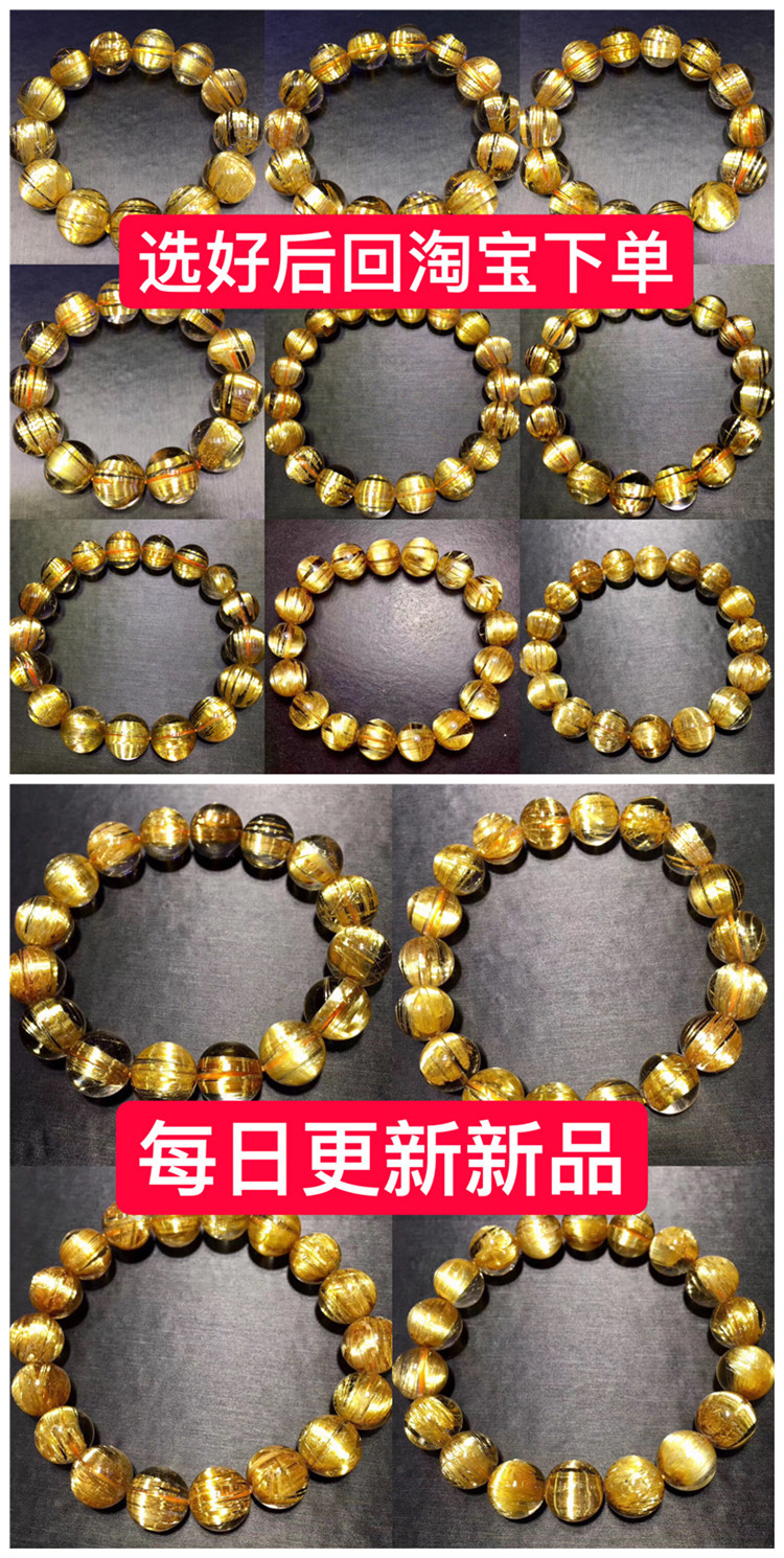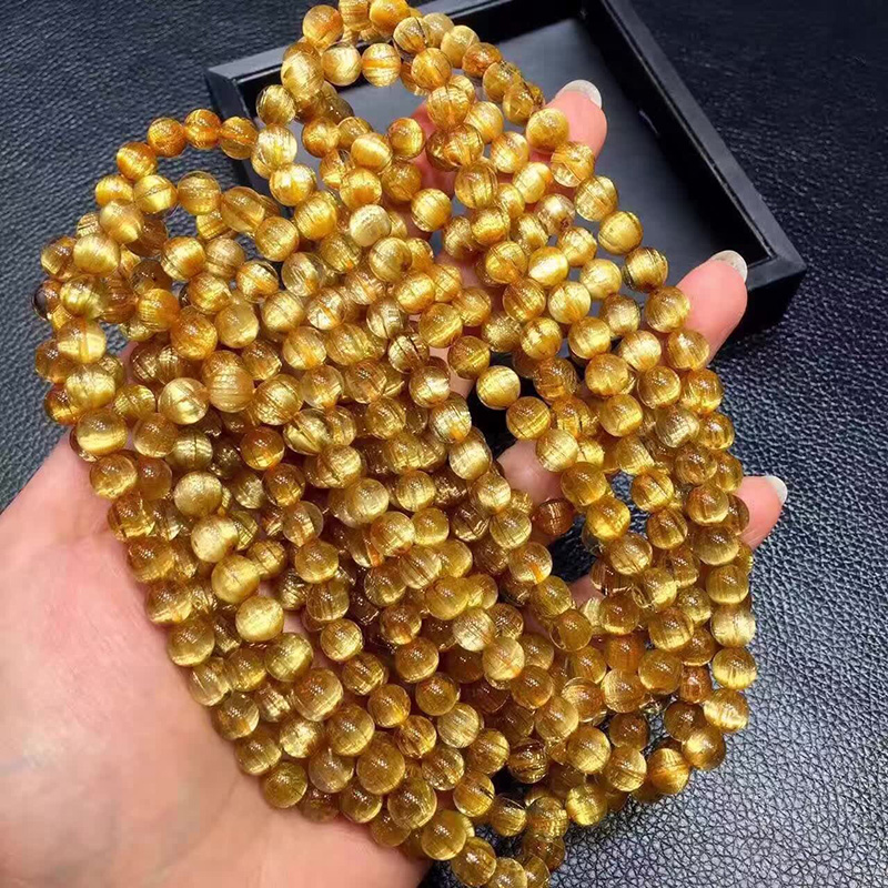 Collectible Natural Cat's Eye Golden Rutilated Quartz Bracelet Titanium Crystal Single Circle 108 Beads Titanium Multi-Circle Pixiu Bracelet Pendant