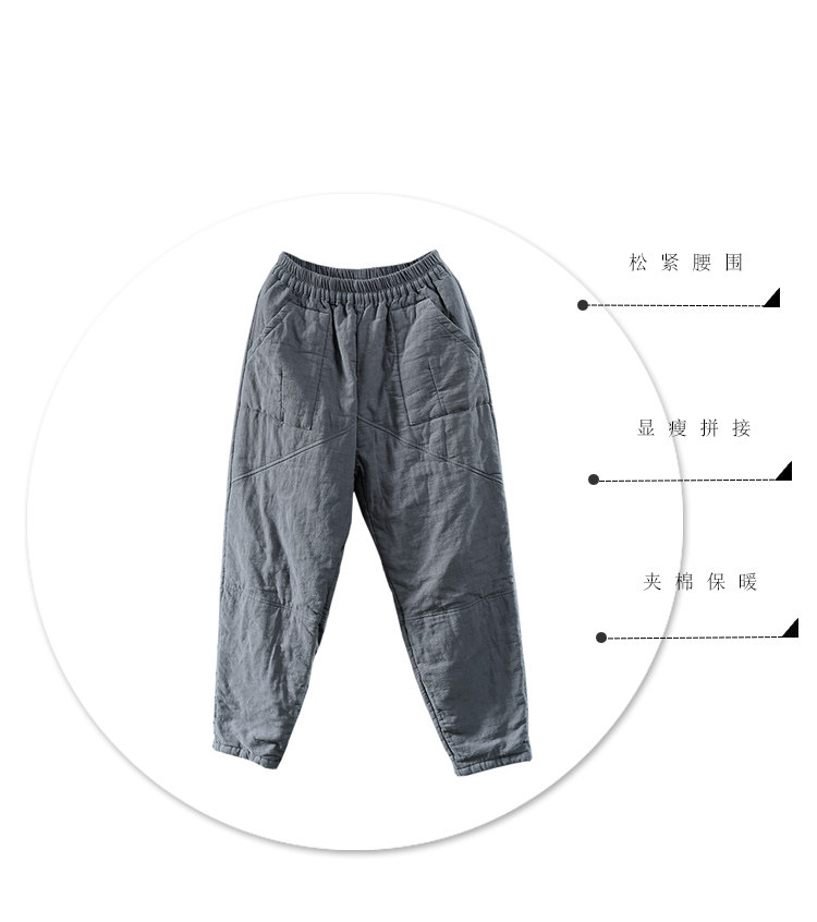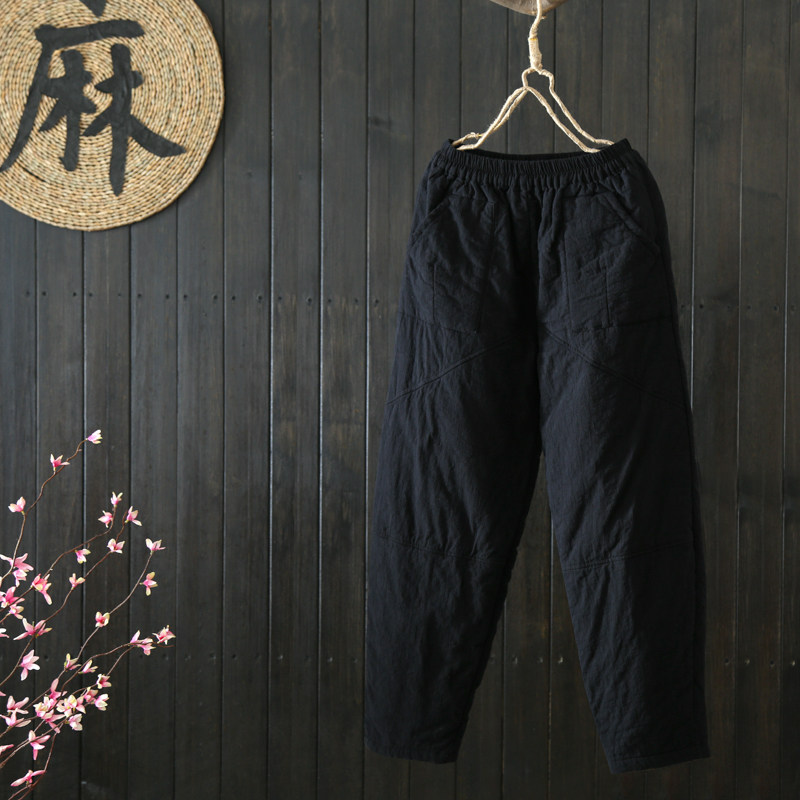 2025 Autumn/Winter New Cotton and Linen Padded Women's Pants with Elastic Waist, Thickened for Warmth, Slimming Harem Pants, Long Trousers
