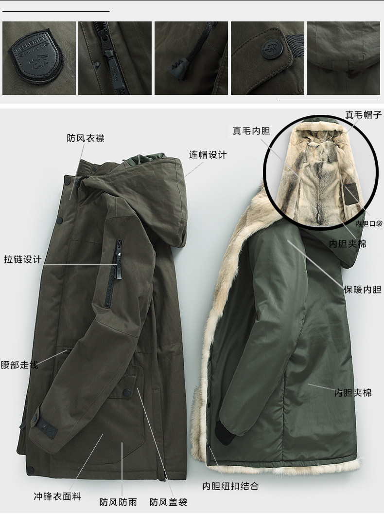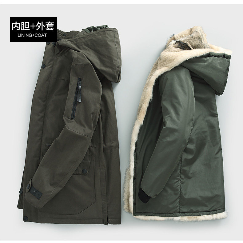 Men's Parka 2025 Winter Mid-Length Coyote Fur Thickened Korean Style Genuine Leather Fur Integrated Nylon Parka Jacket