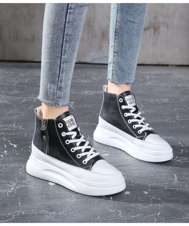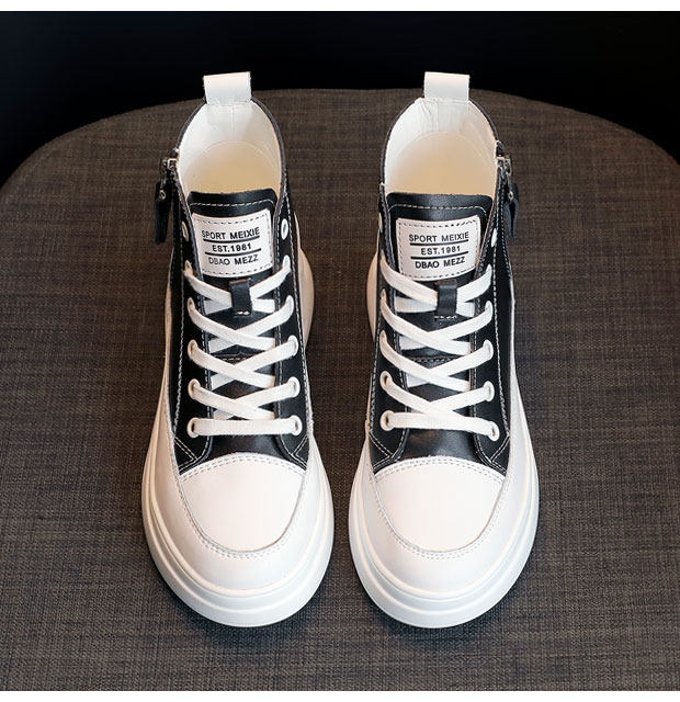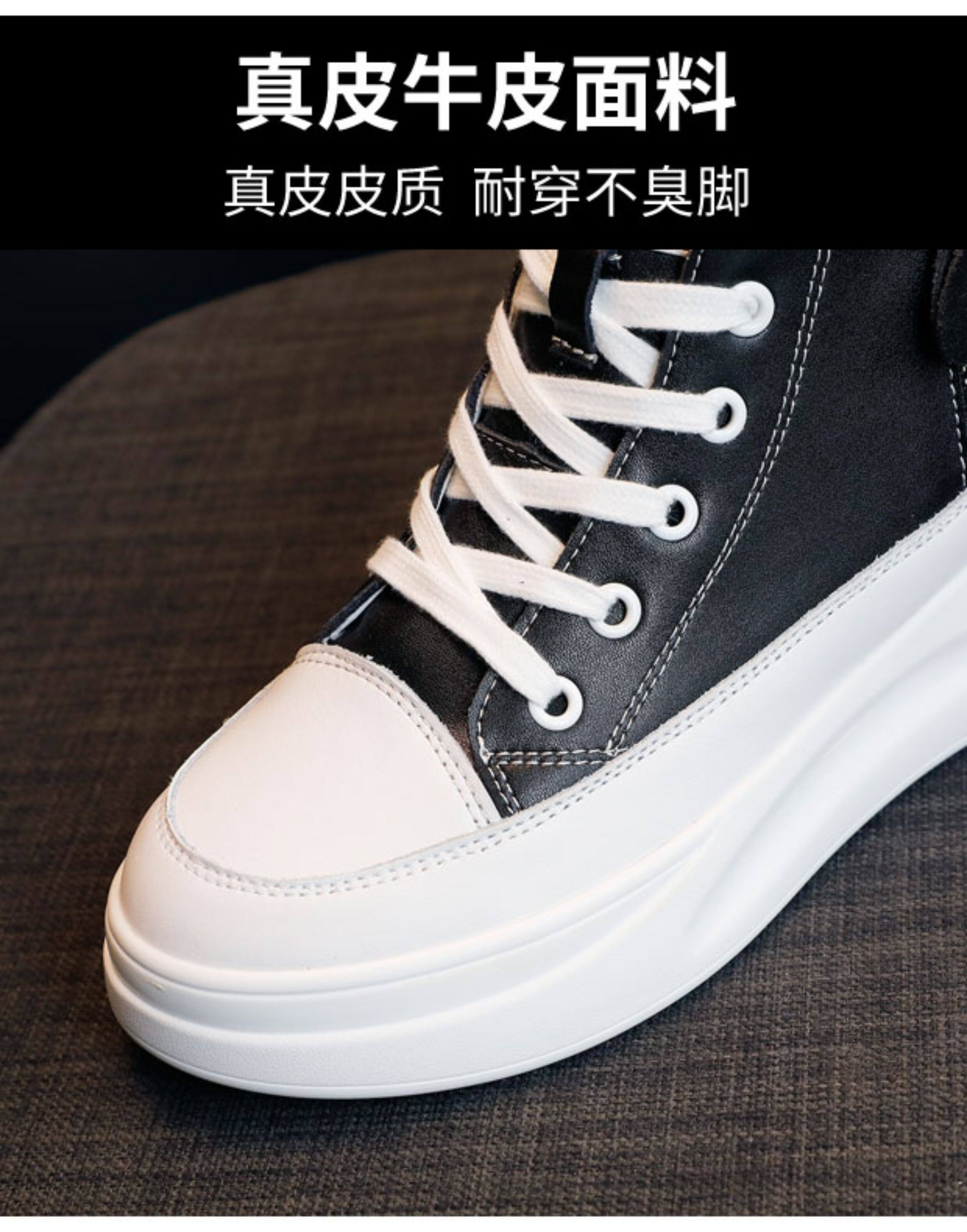 2026 Spring New High-Top Genuine Leather White Fleece-Lined Sneakers, Spring and Autumn Versatile Thick-Soled Height-Increasing Women's Shoes