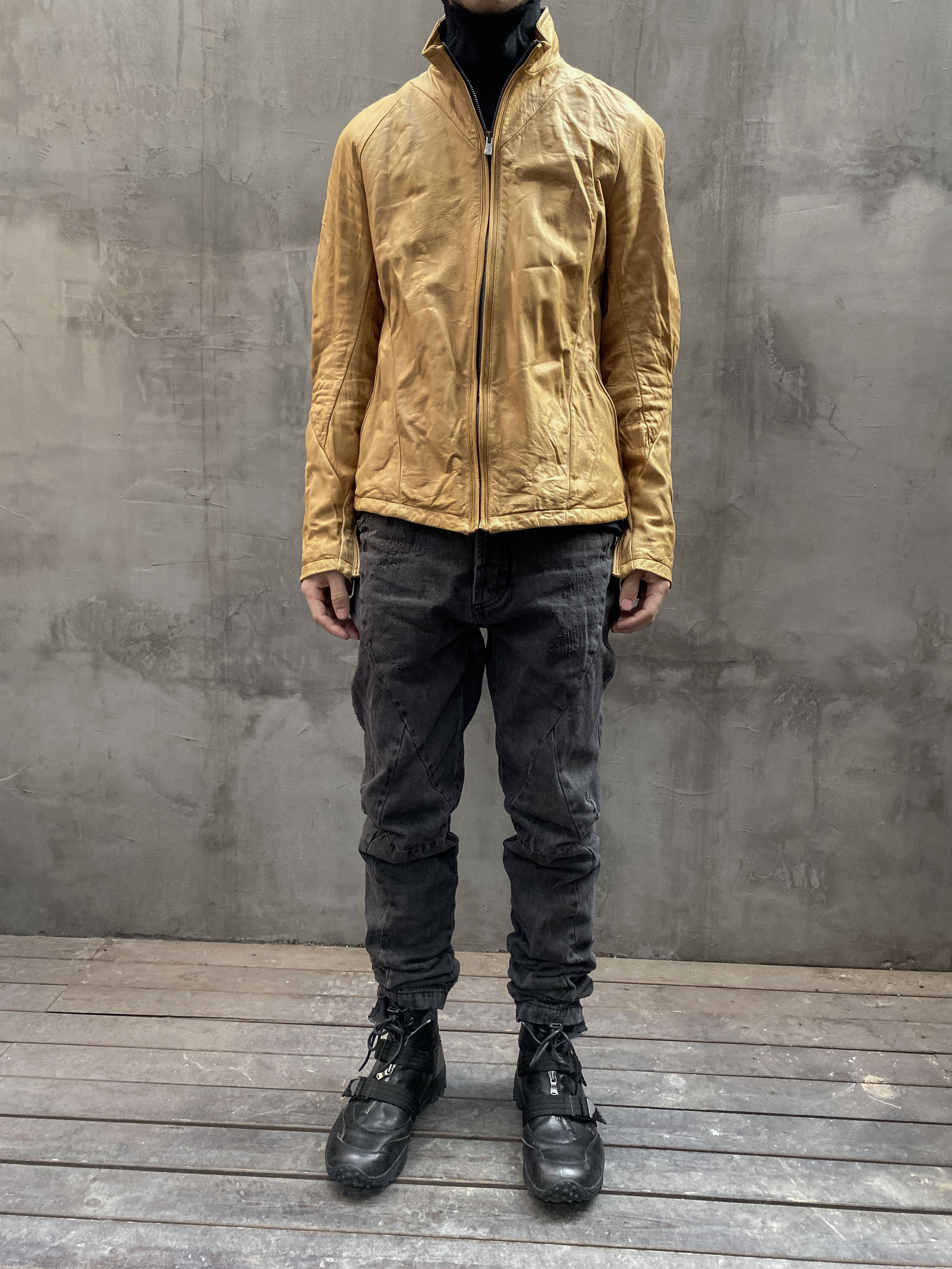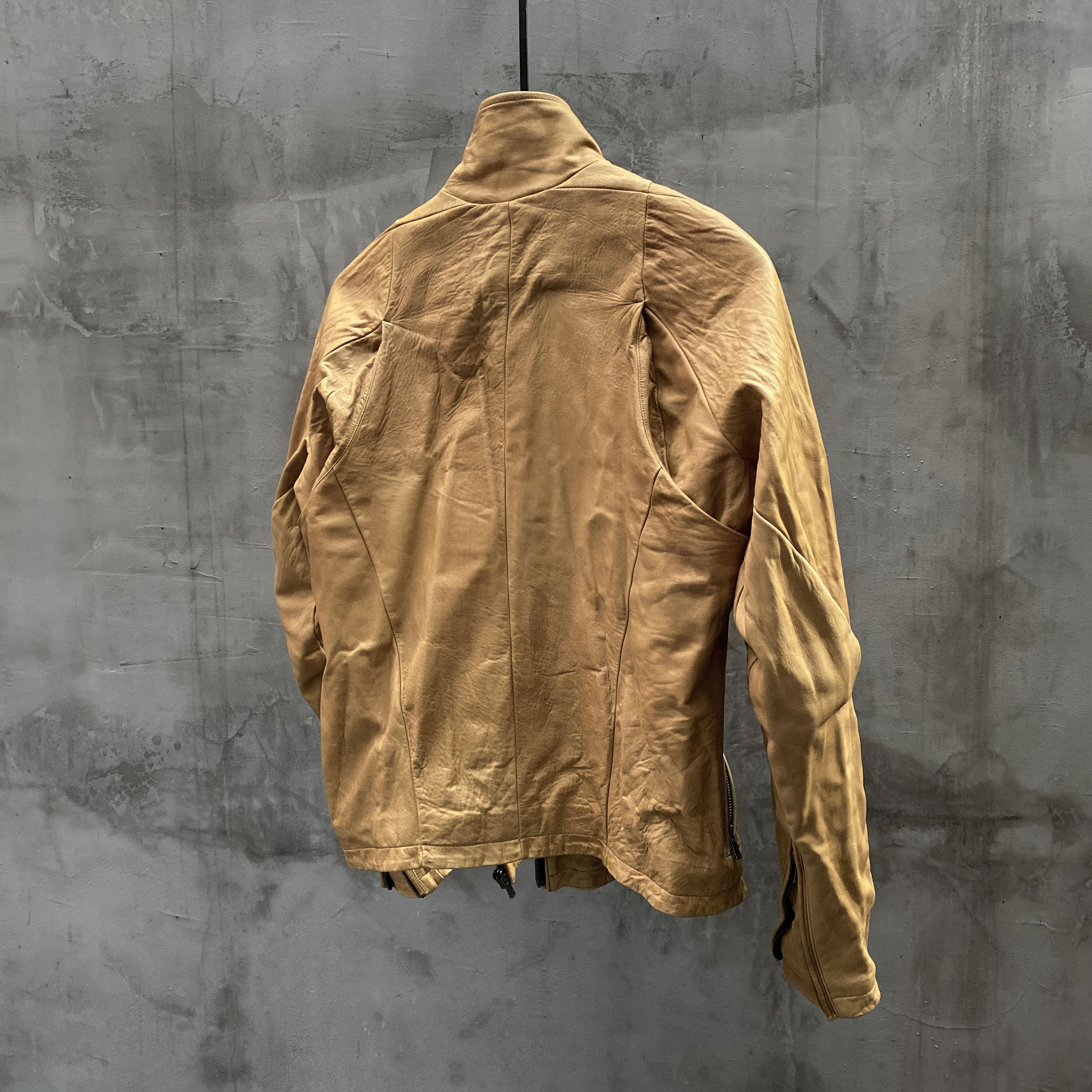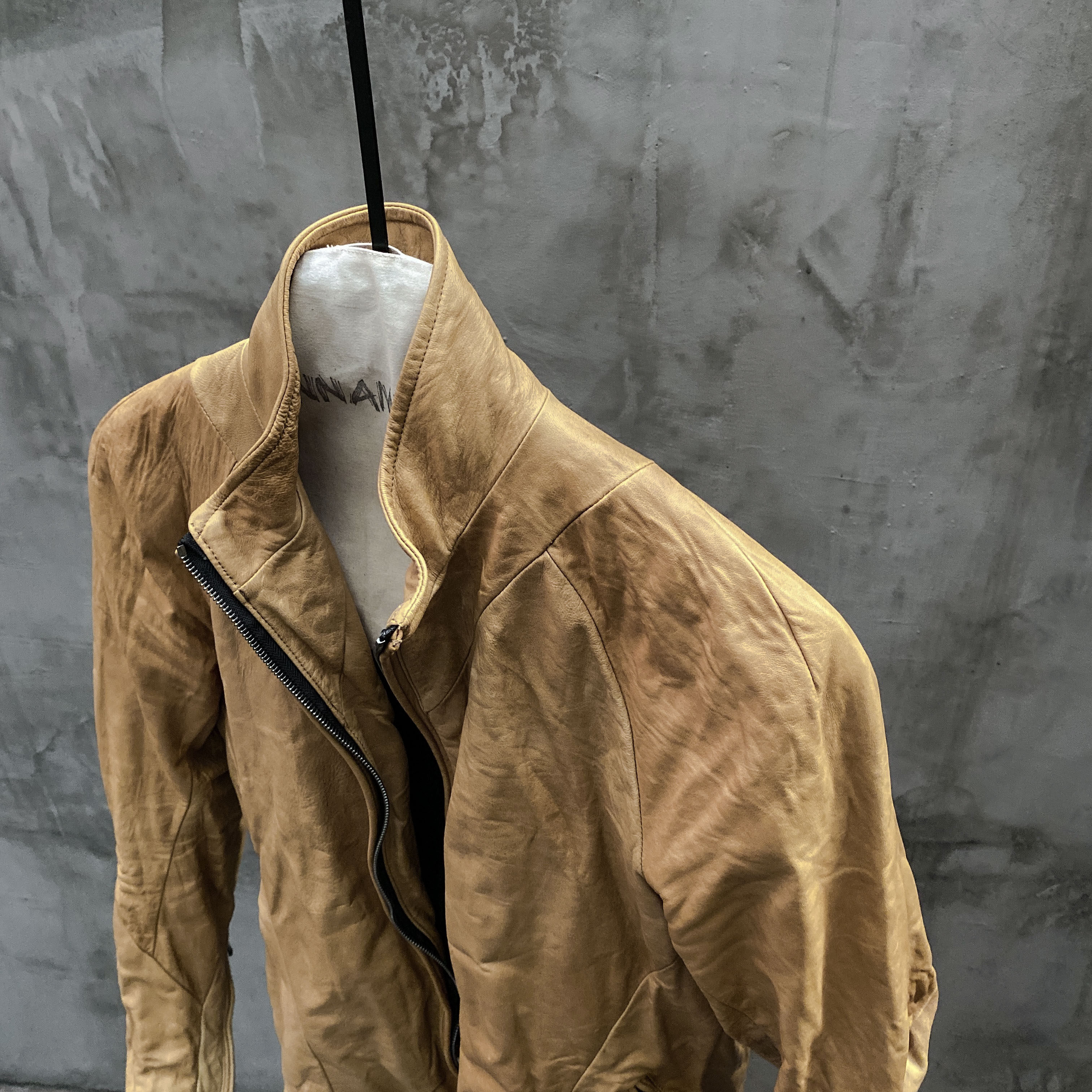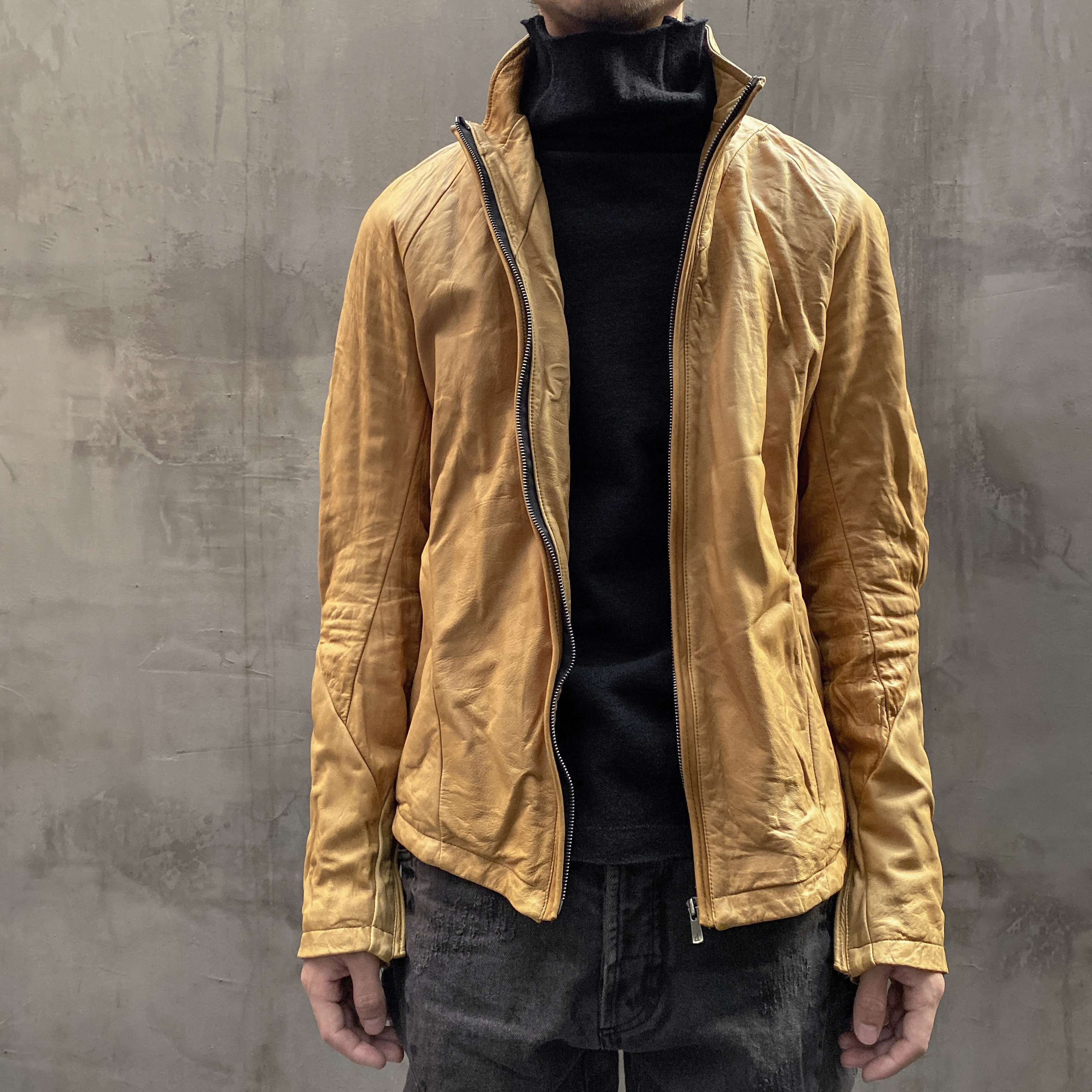 Unnaming Xia Real Shot Original Washed and Distressed Yellow Genuine Sheepskin Men's Short Jacket Stand Collar Biker Jacket