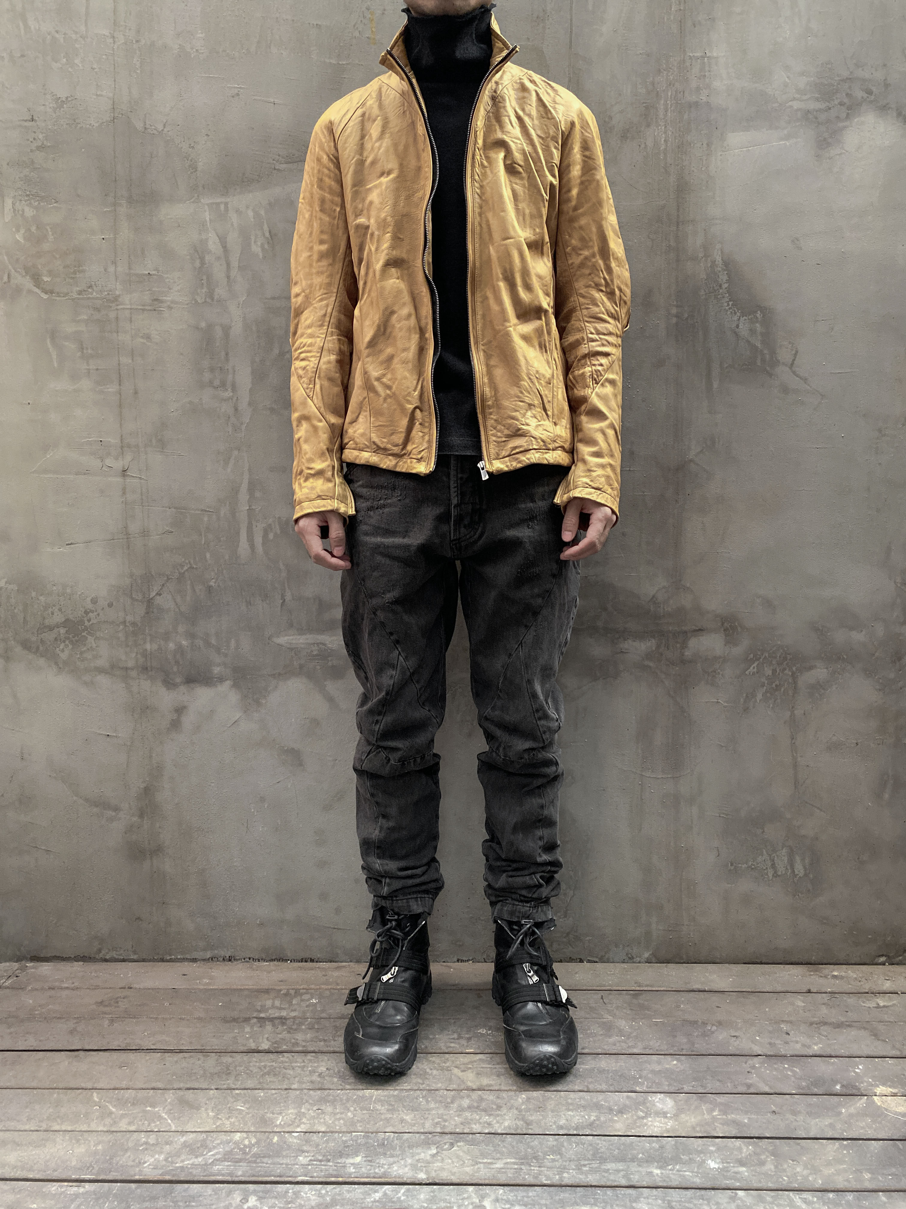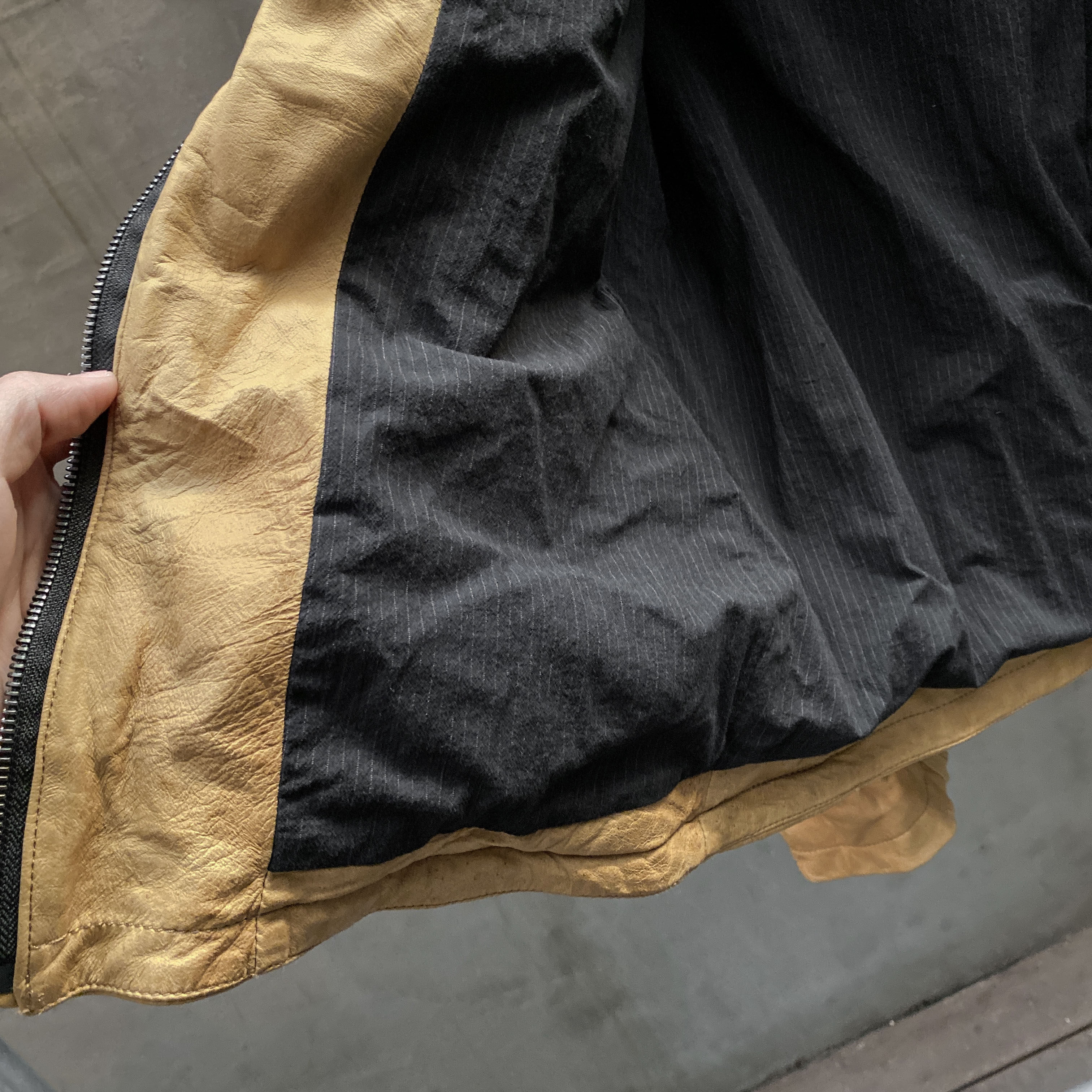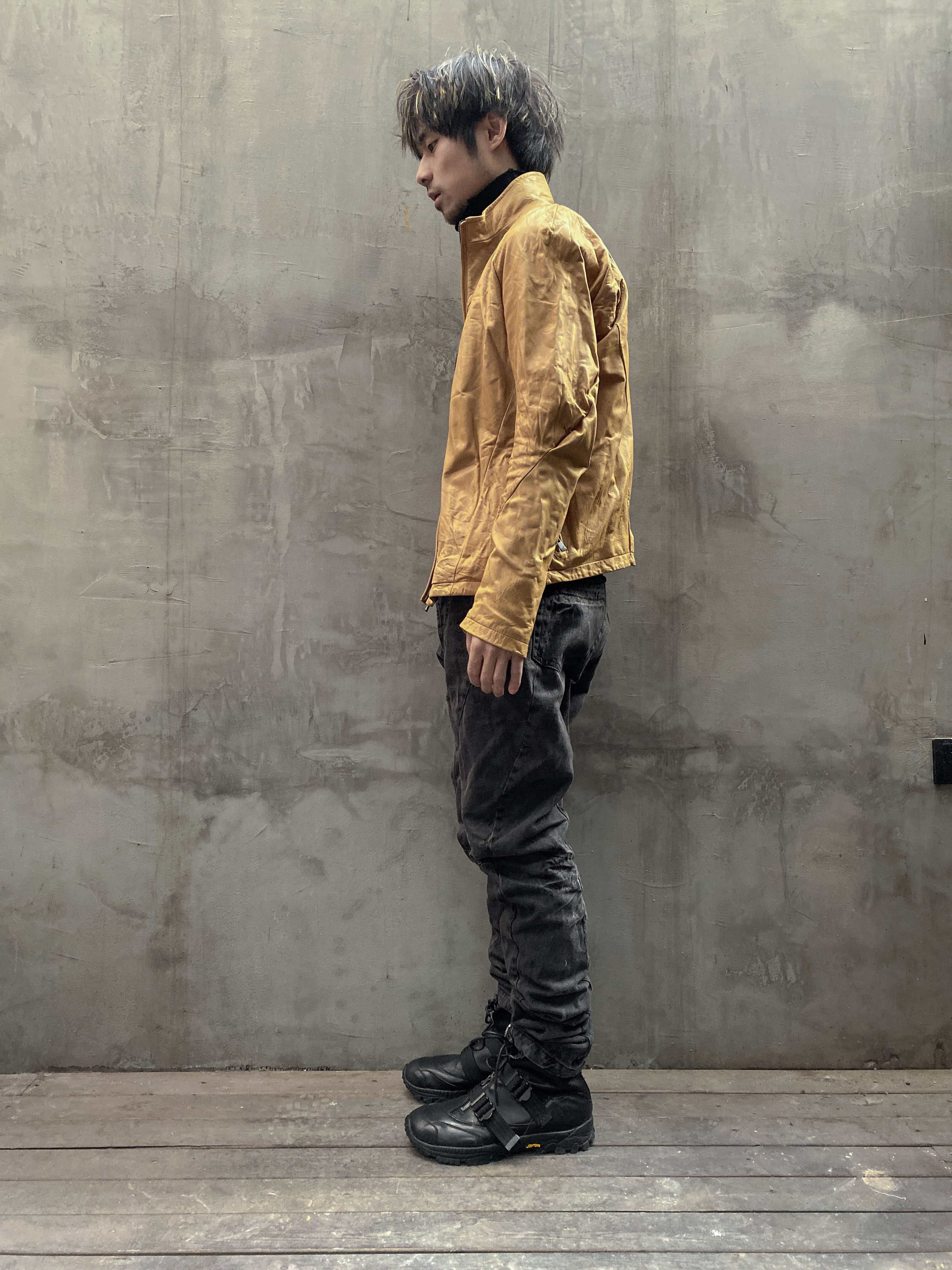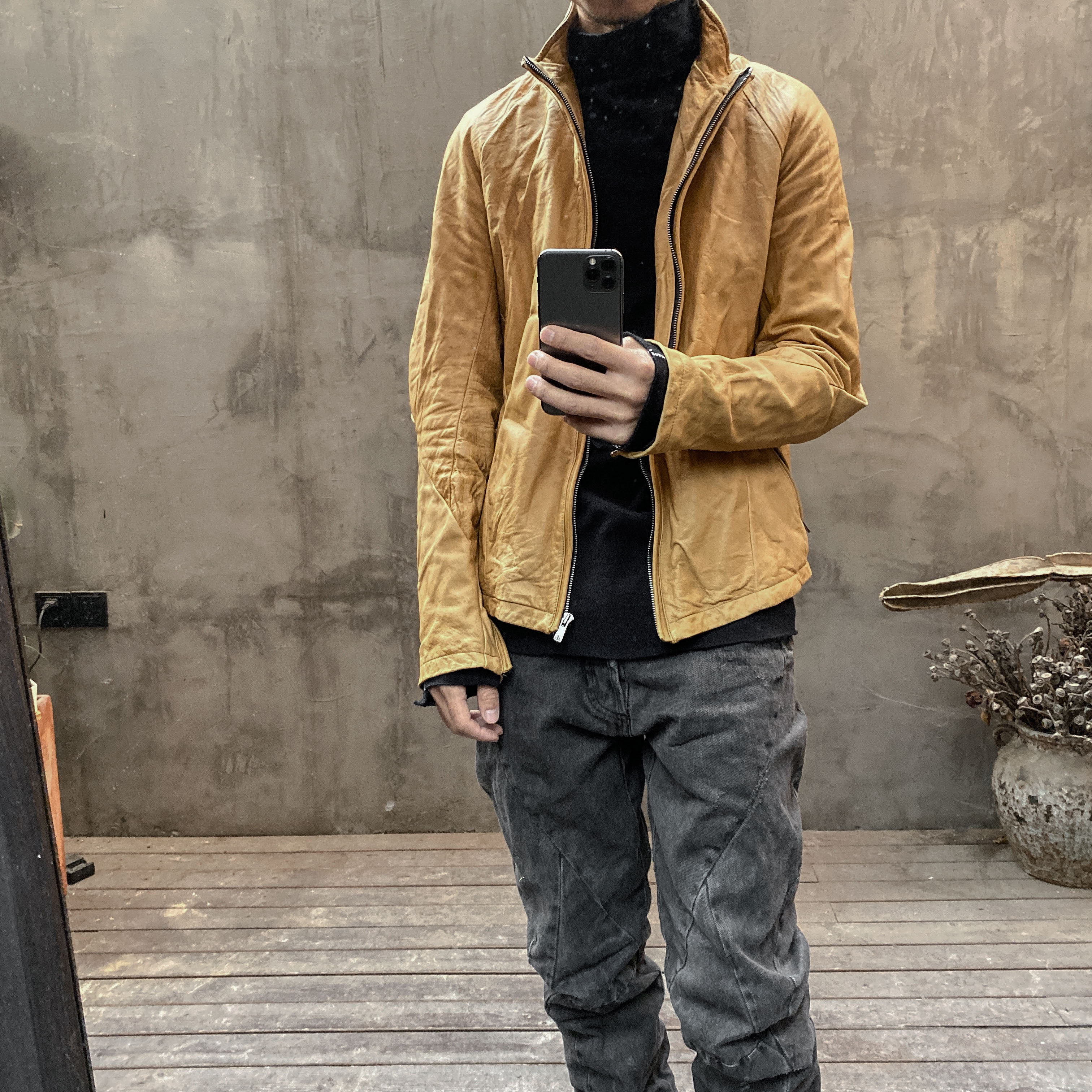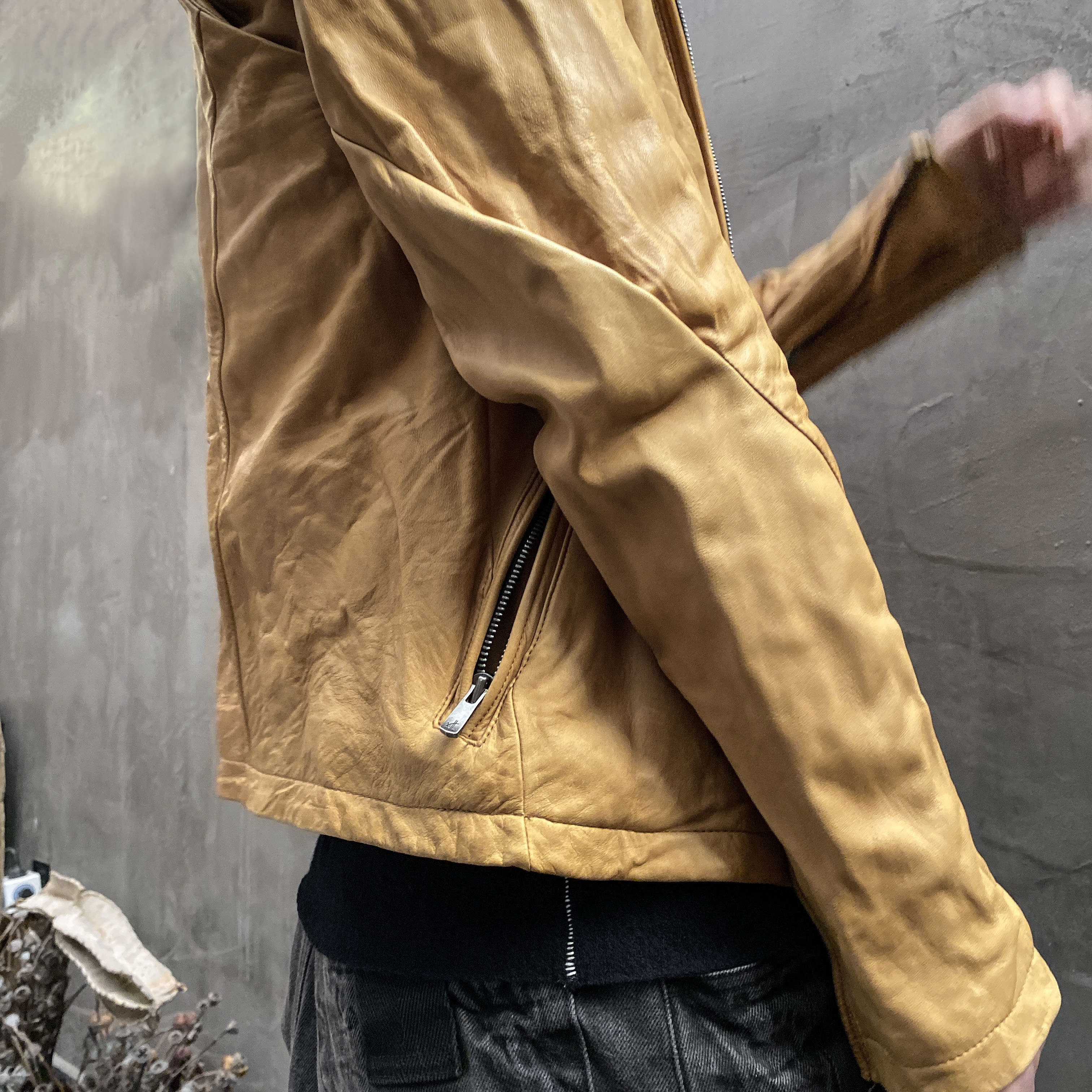 Unnaming Xia Real Shot Original Washed and Distressed Yellow Genuine Sheepskin Men's Short Jacket Stand Collar Biker Jacket