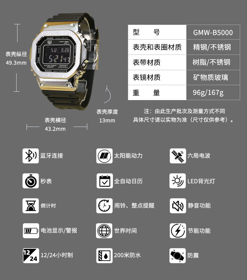 Casio 50Th Anniversary Limited Edition Gshock Solar Wave Bluetooth Small Square Watch for Men Gmw-B5000D