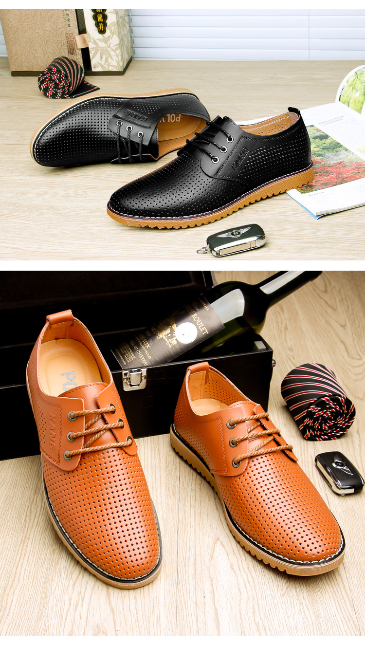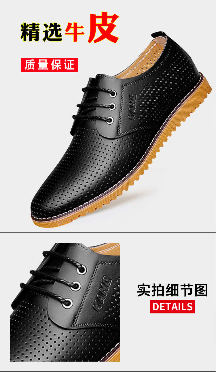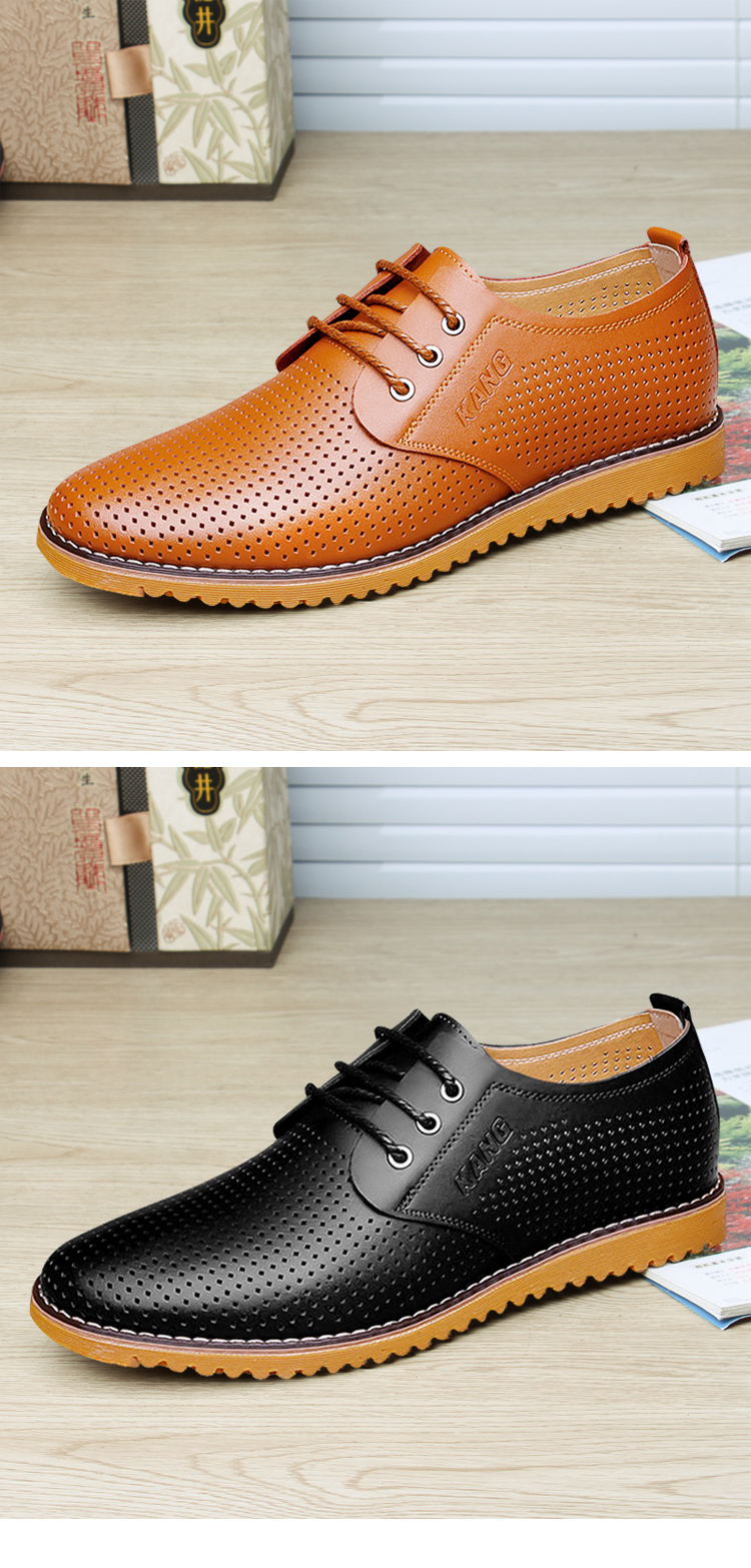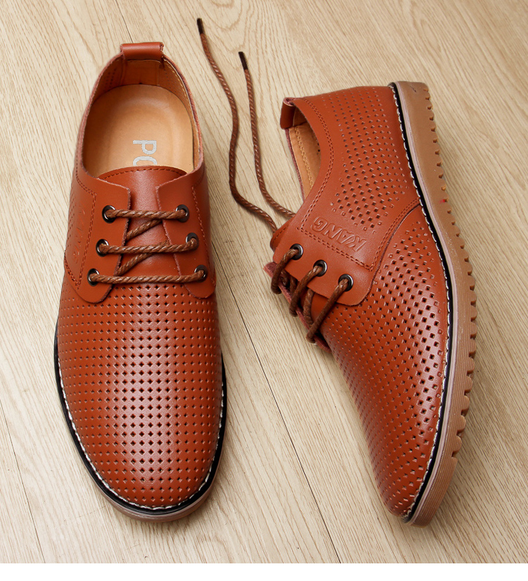 Summer Hole Sandals Men's Casual Leather Shoes Korean Style Genuine Leather Cut Out Breathable Trendy Shoes Cowhide Round Toe Lace-Up Men's Shoes