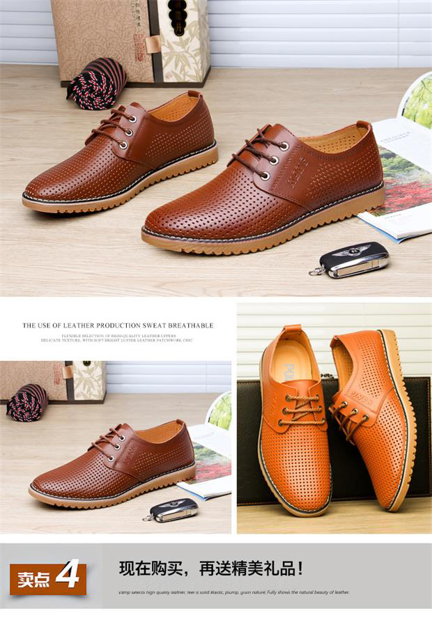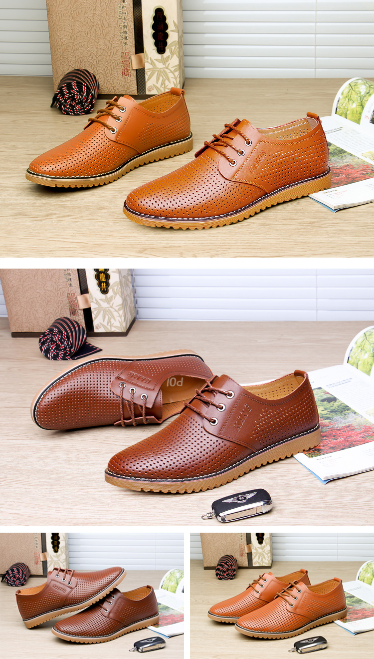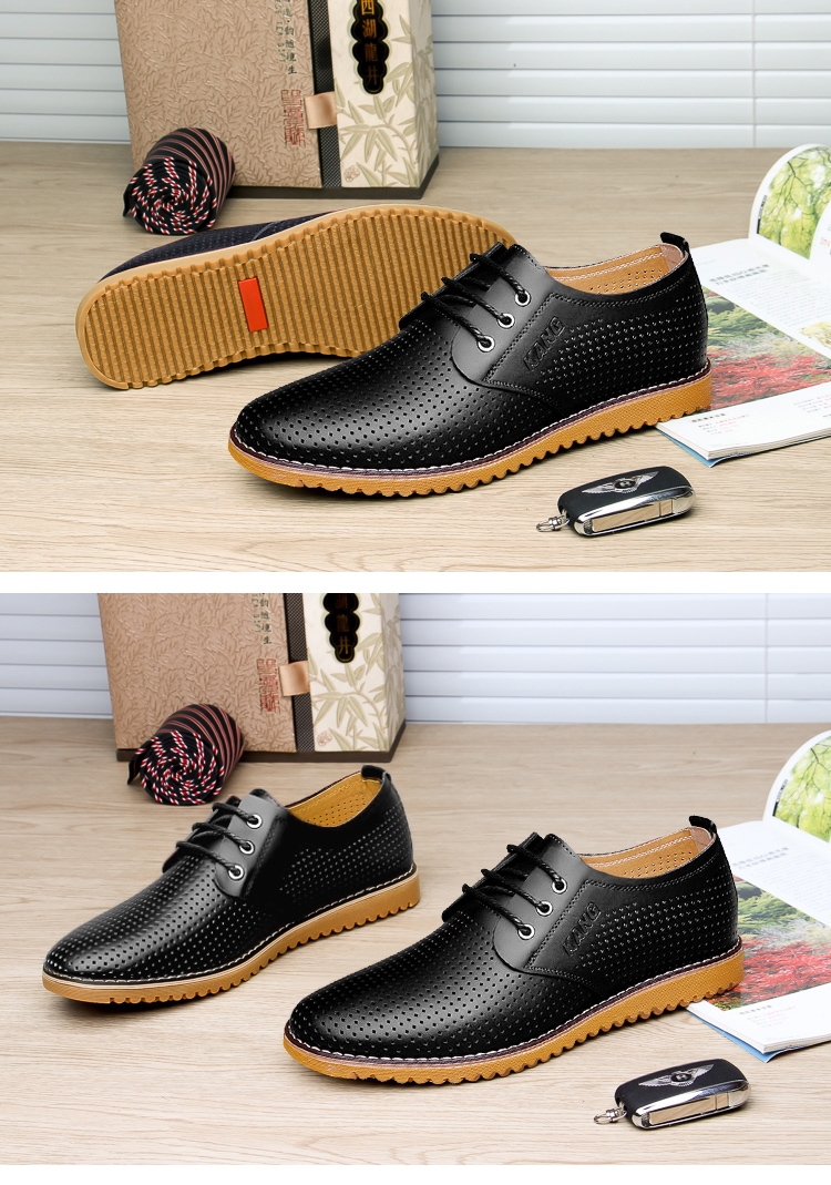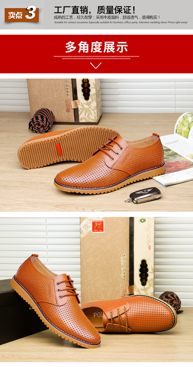 Summer Hole Sandals Men's Casual Leather Shoes Korean Style Genuine Leather Cut Out Breathable Trendy Shoes Cowhide Round Toe Lace-Up Men's Shoes
