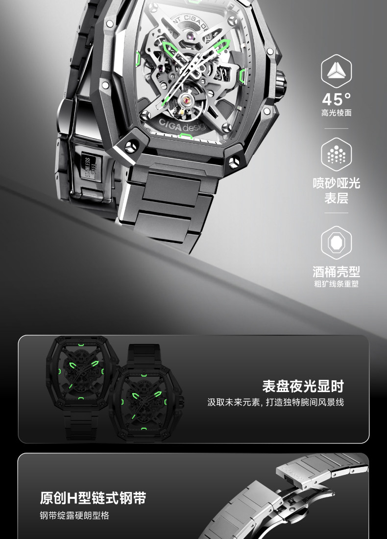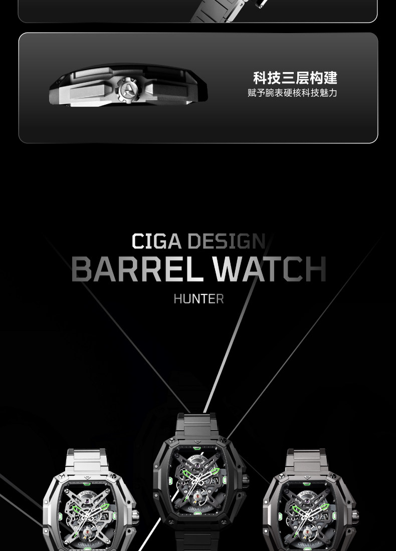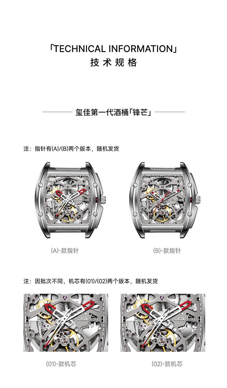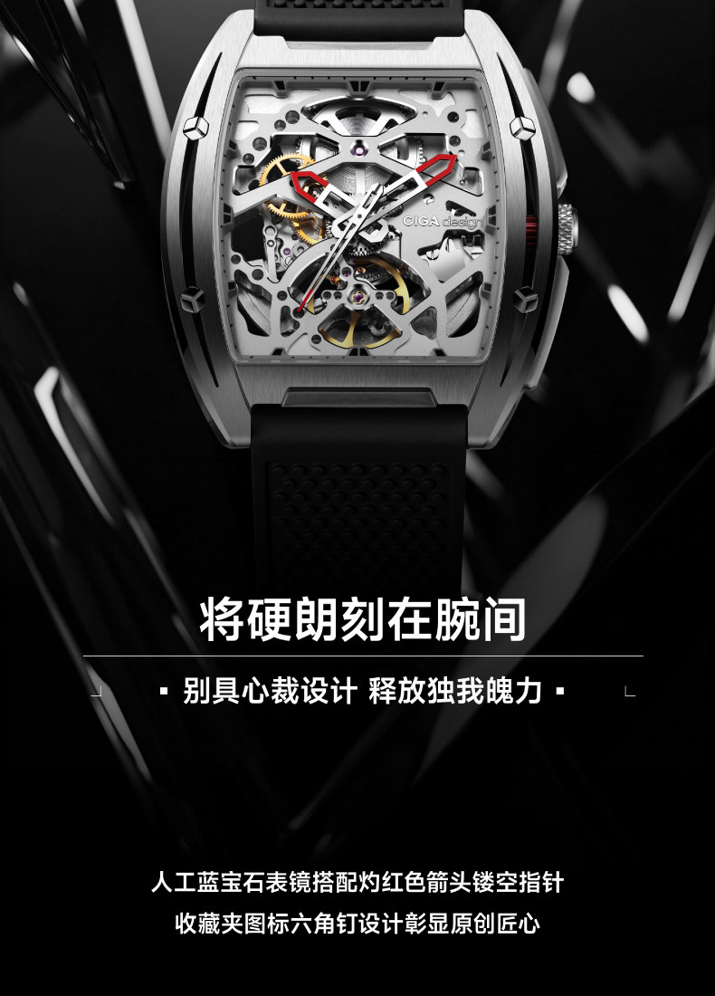 Ciga Design Xijia Fengmang Series Mechanical Watch Barrel-Shaped Men's Watch Trendy Skeleton Student Watch