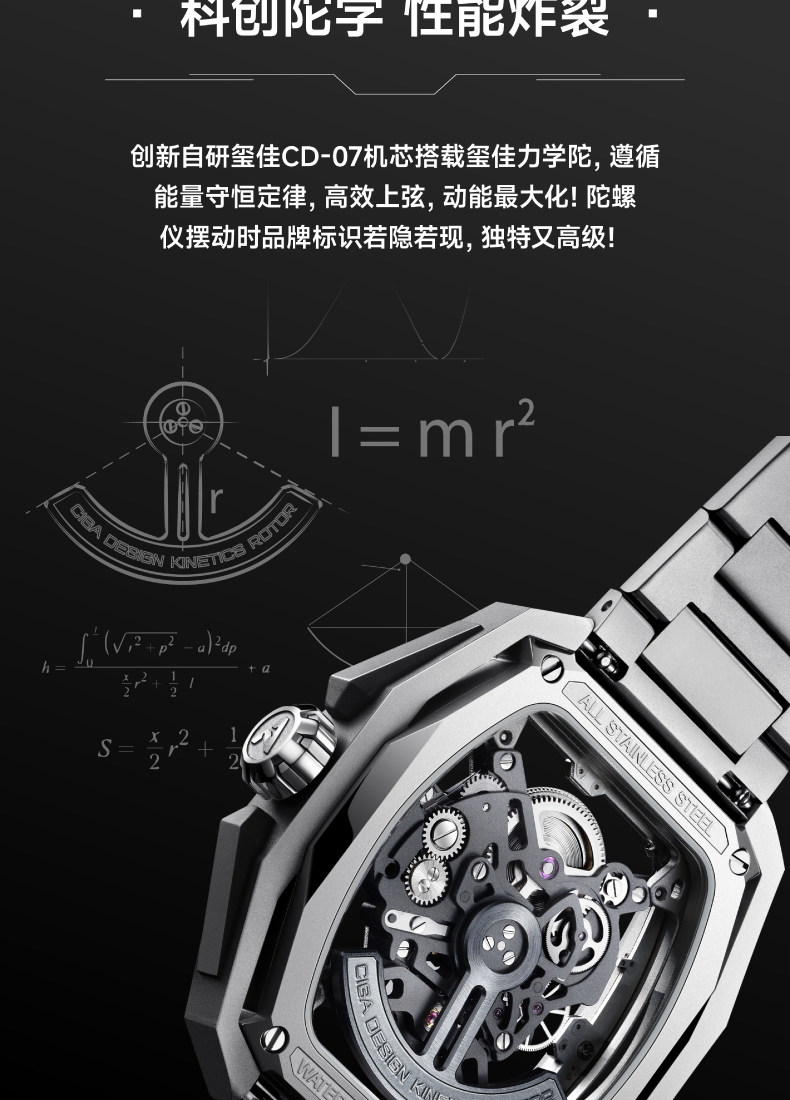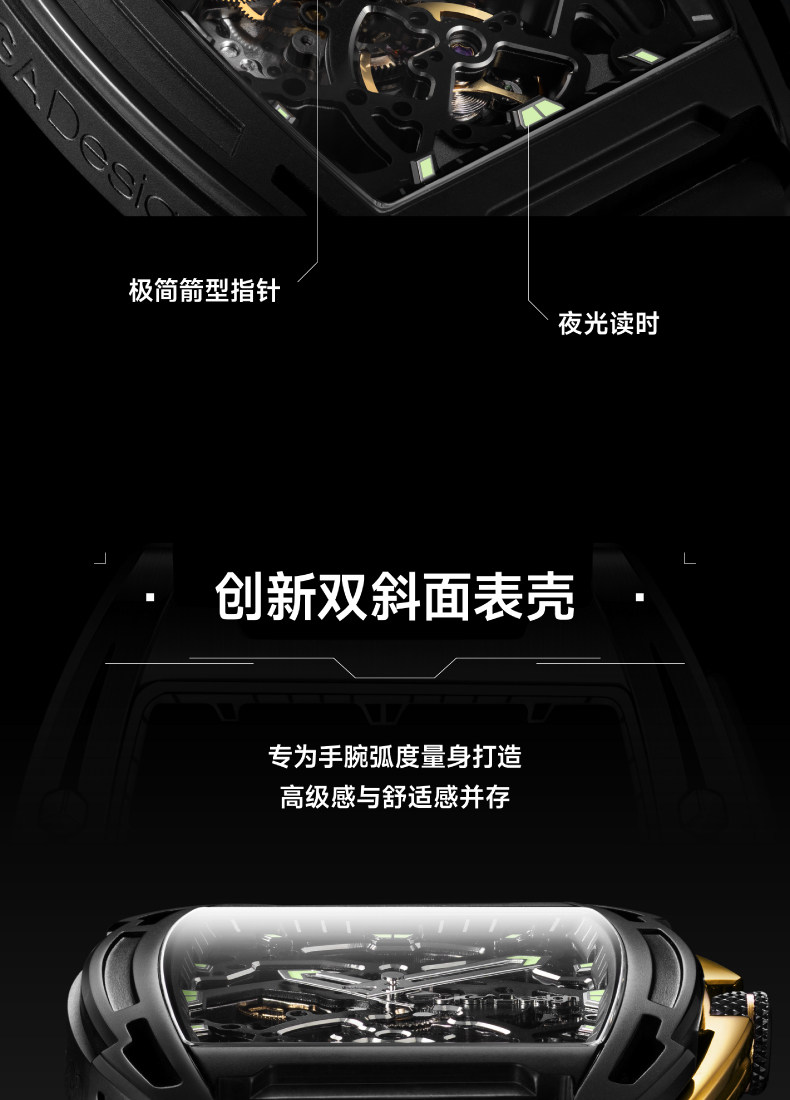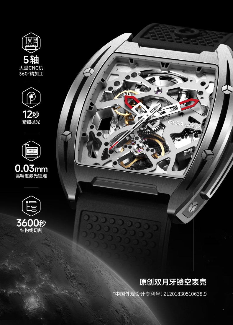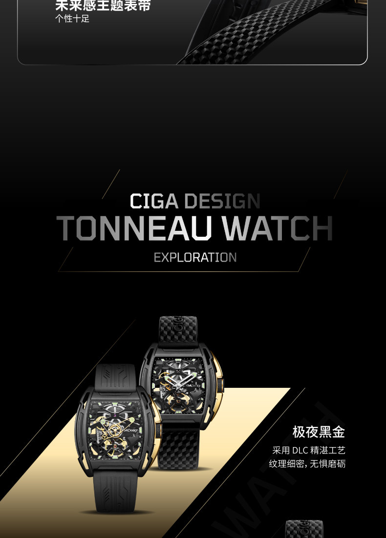 Ciga Design Xijia Fengmang Series Mechanical Watch Barrel-Shaped Men's Watch Trendy Skeleton Student Watch