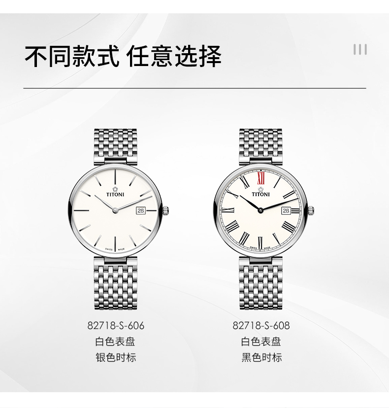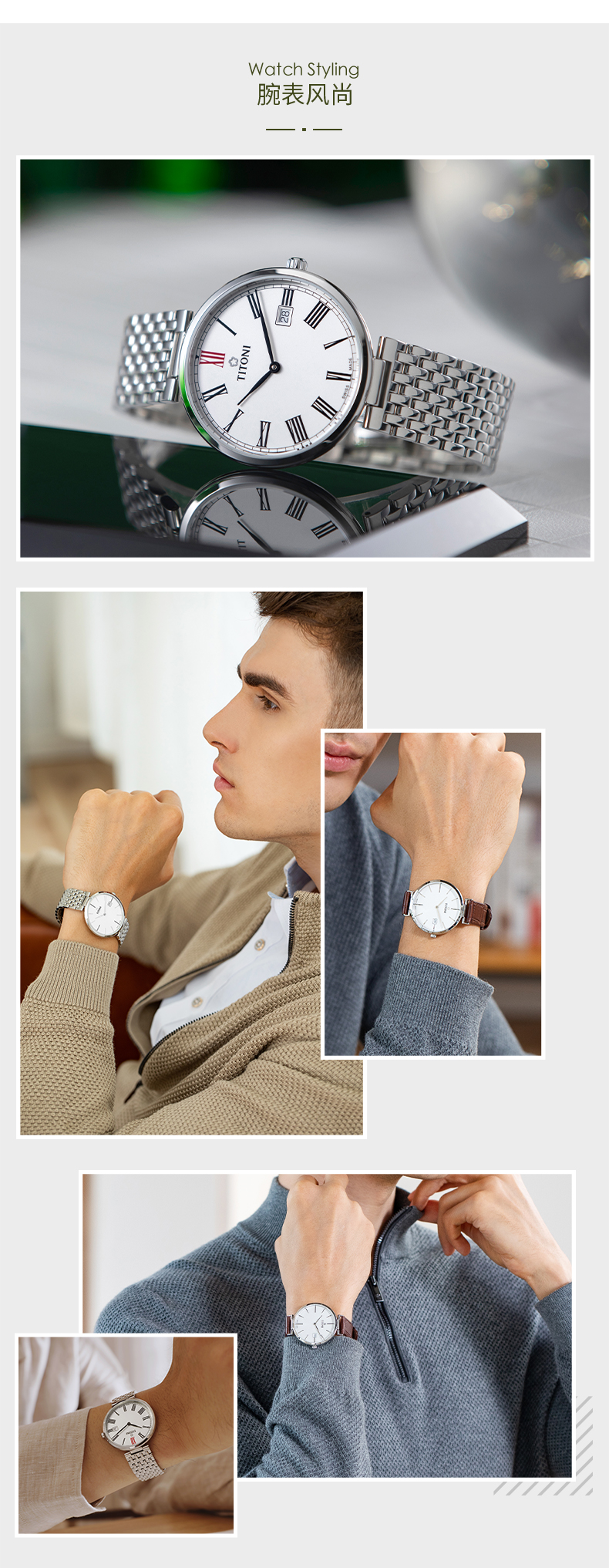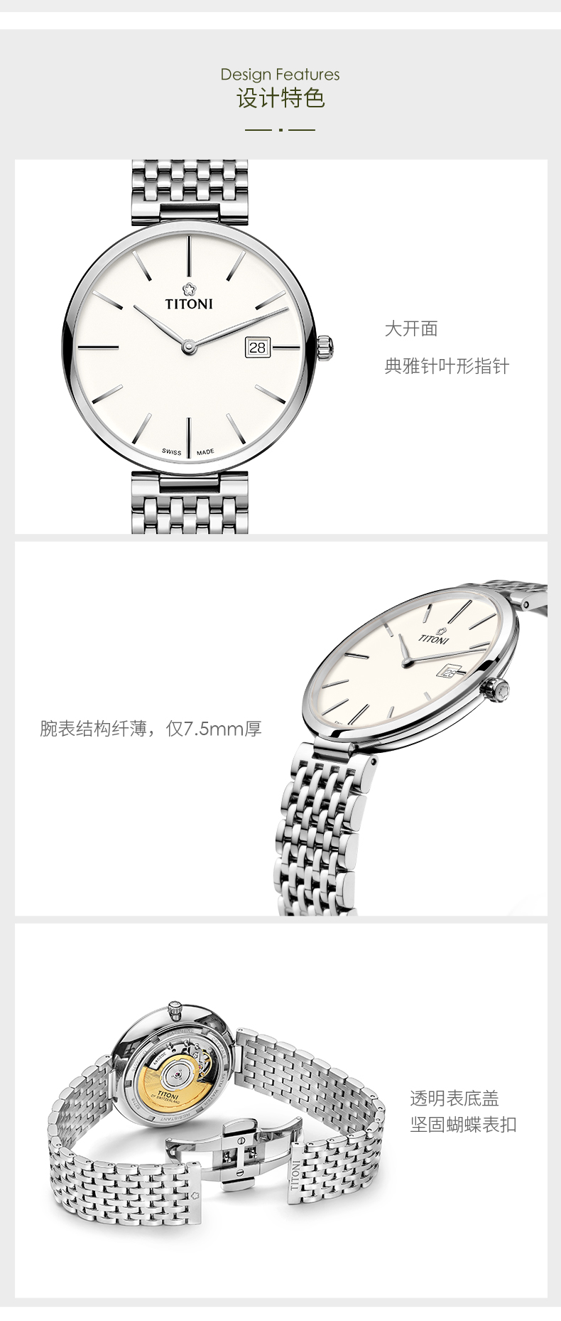 Titoni Swiss Plum Blossom Watch Men's Watch Slim Series Automatic Mechanical Watch Stainless Steel Model Official Flagship Store