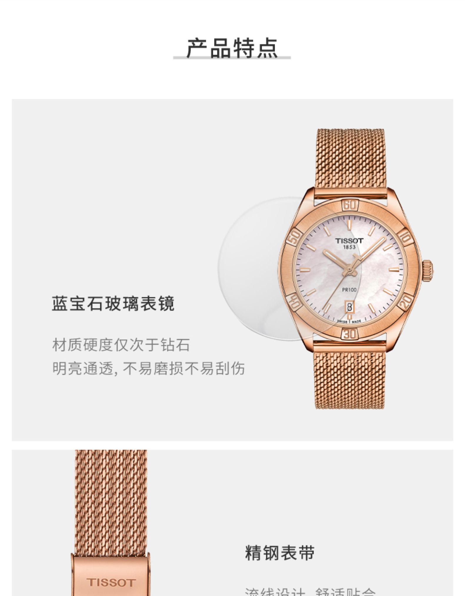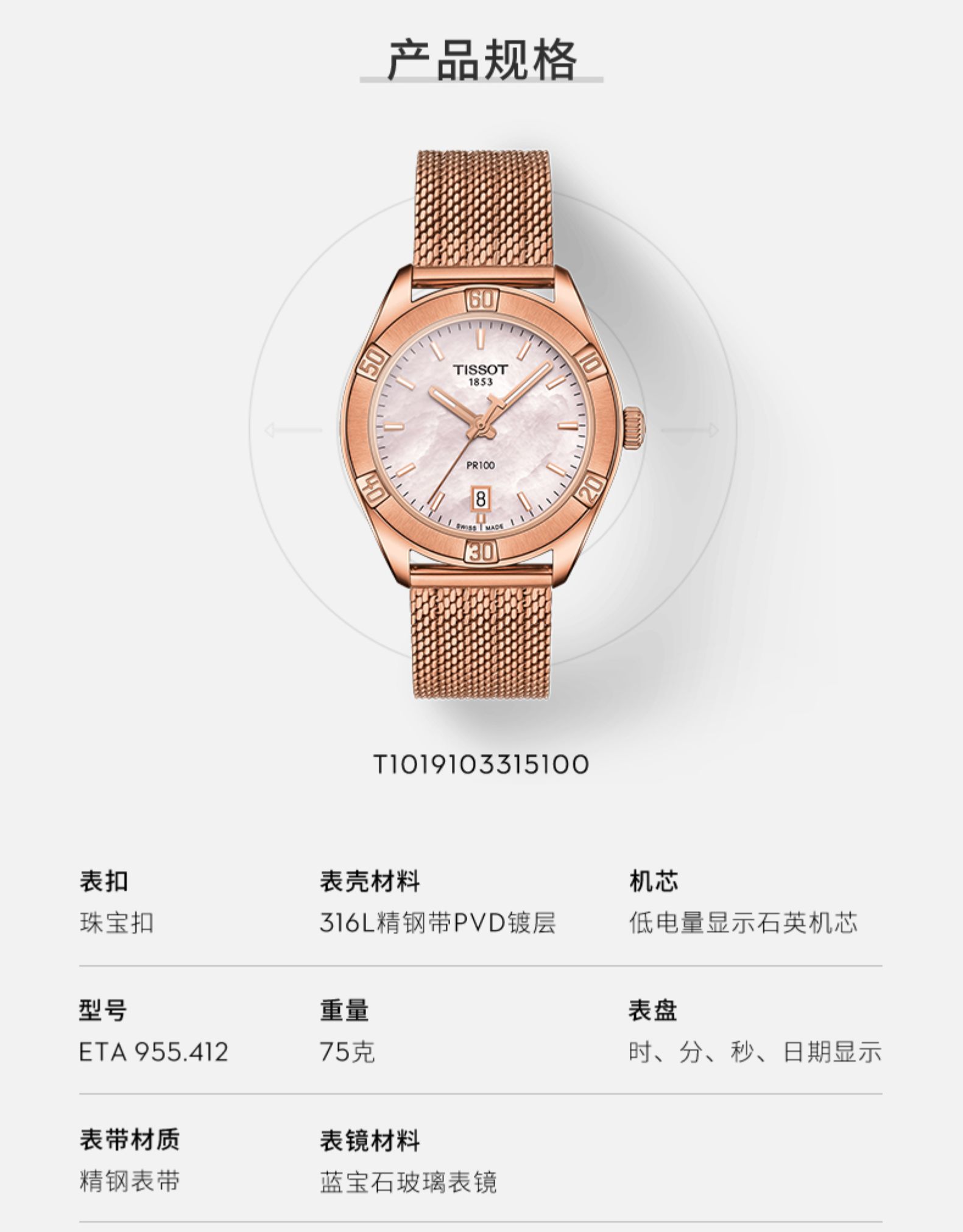 Tissot Pr100 Smart Watch, Same Model as Liu Yifei, Small Gold Watch with Mother-Of-Pearl Dial, Women's Watch