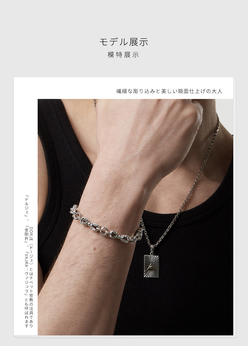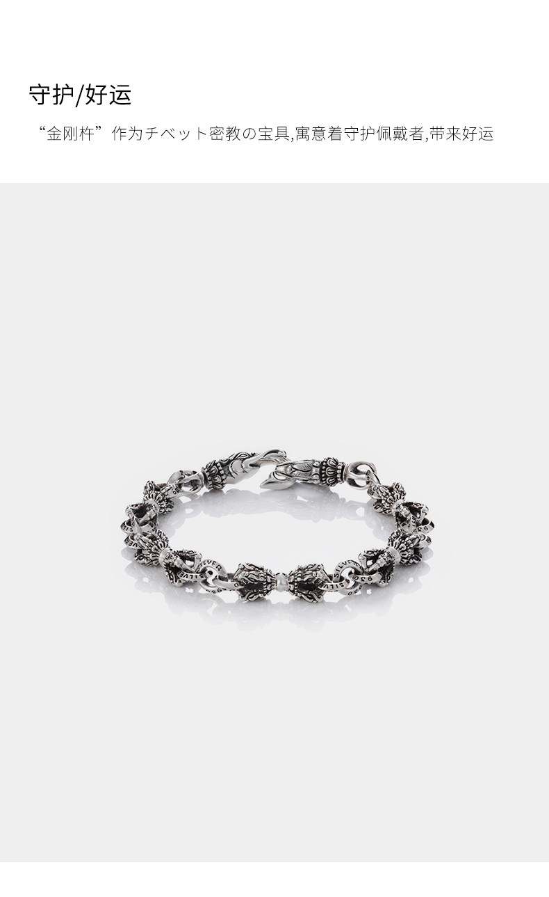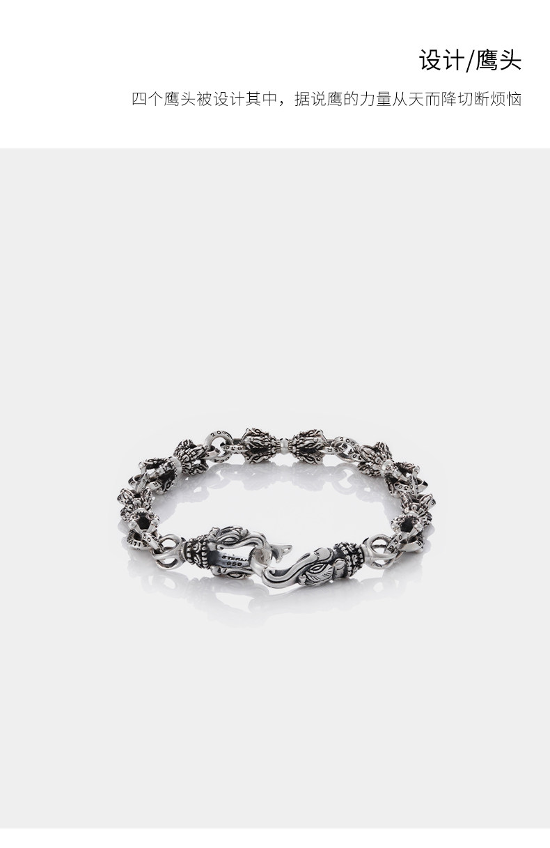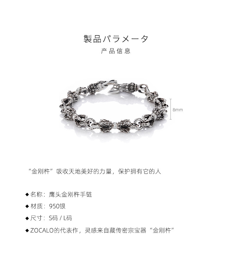 [Popular Choice] Zocalo Vajra Series Men's 950 Sterling Silver Jewelry Eagle Head Vajra Bracelet