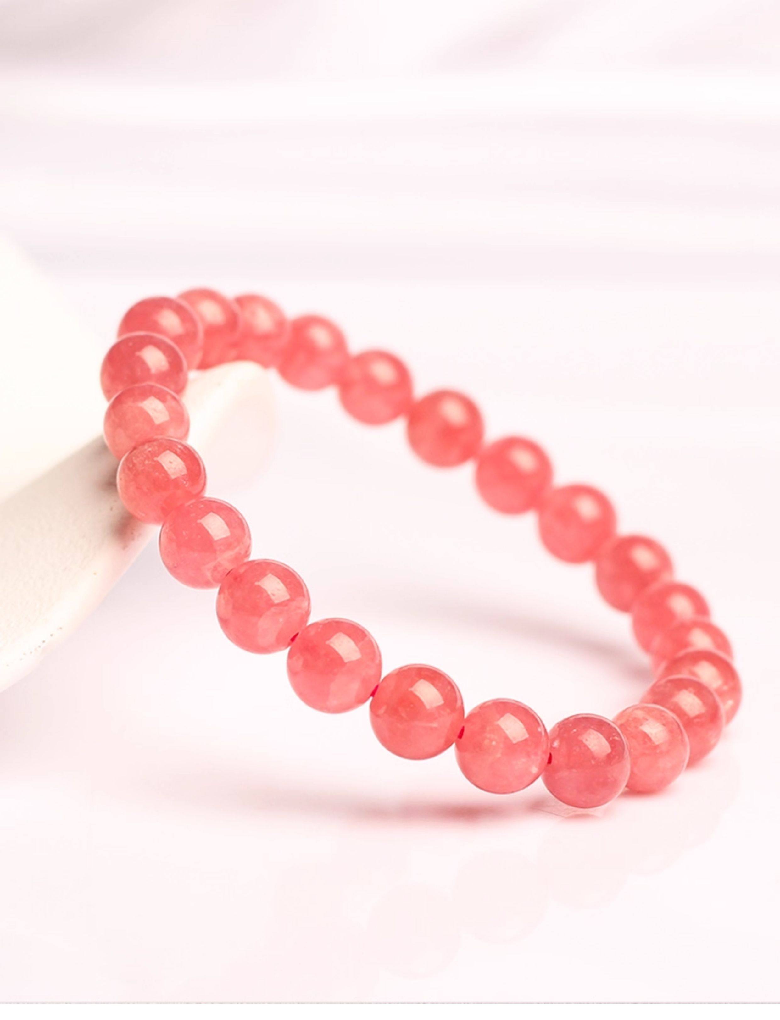 Argentine Natural Ice Rhodolite Bracelet, Peach Blossom Attracting Women's Bracelet, Raw Stone Pink Crystal Gift, Celebrity Style
