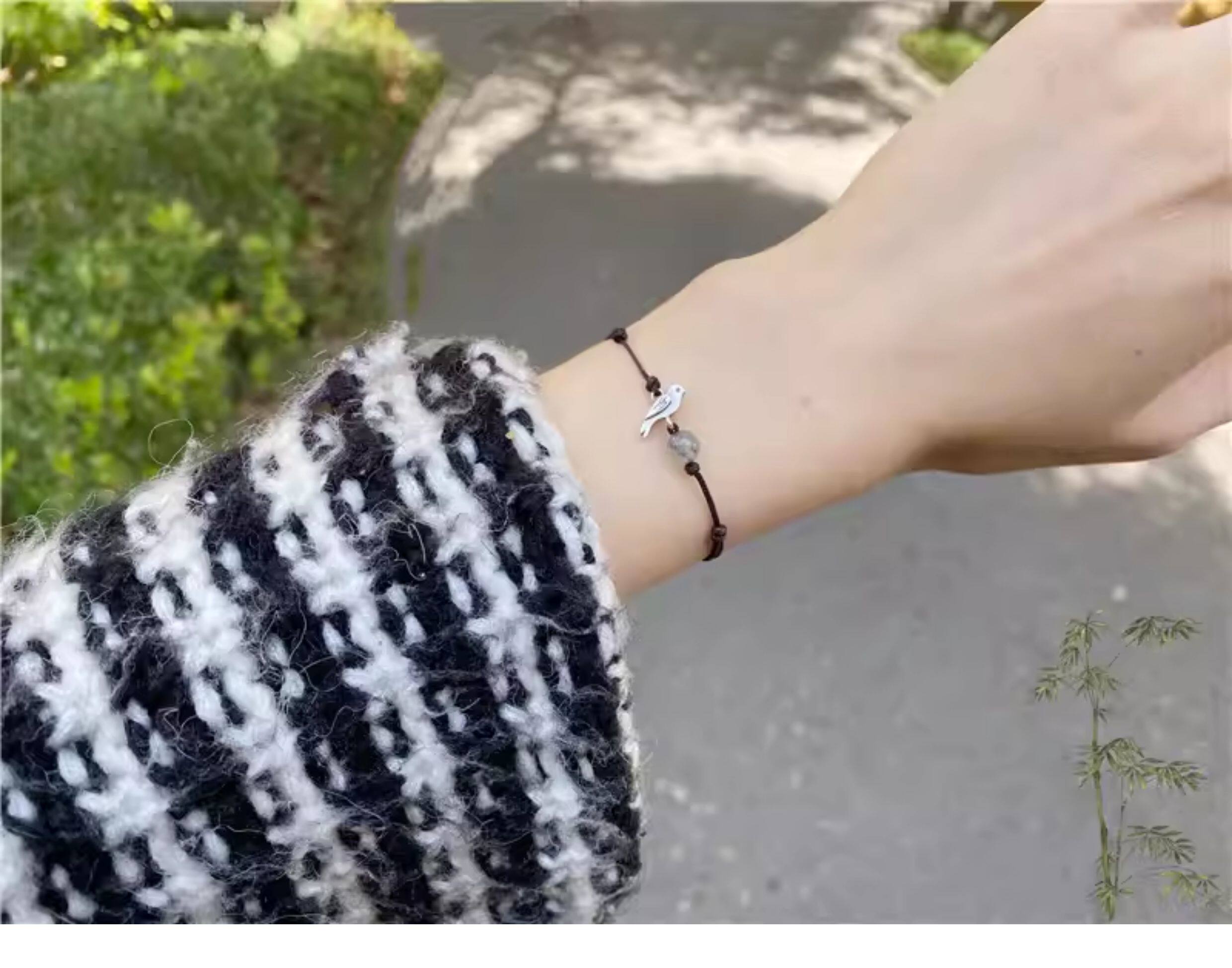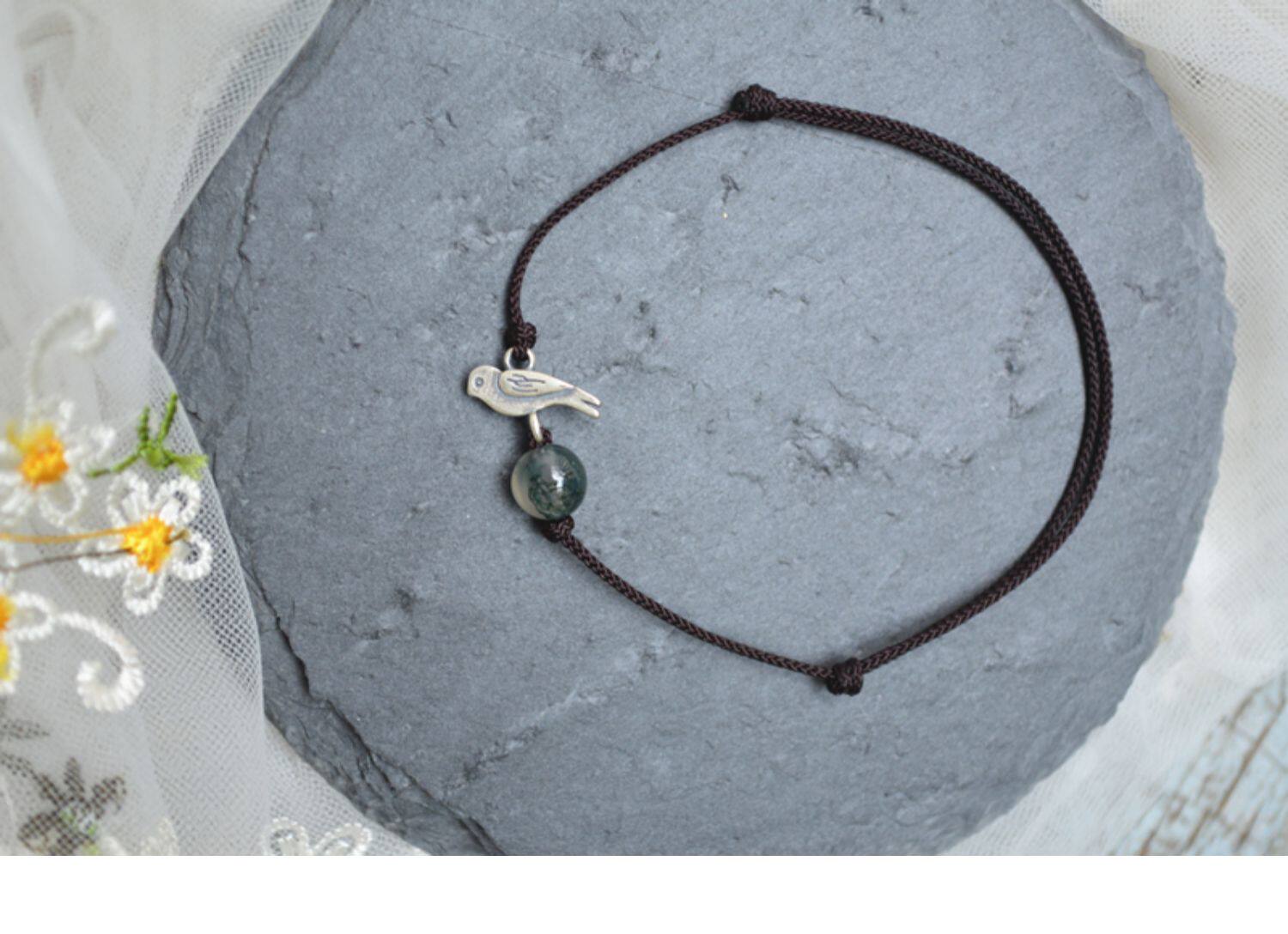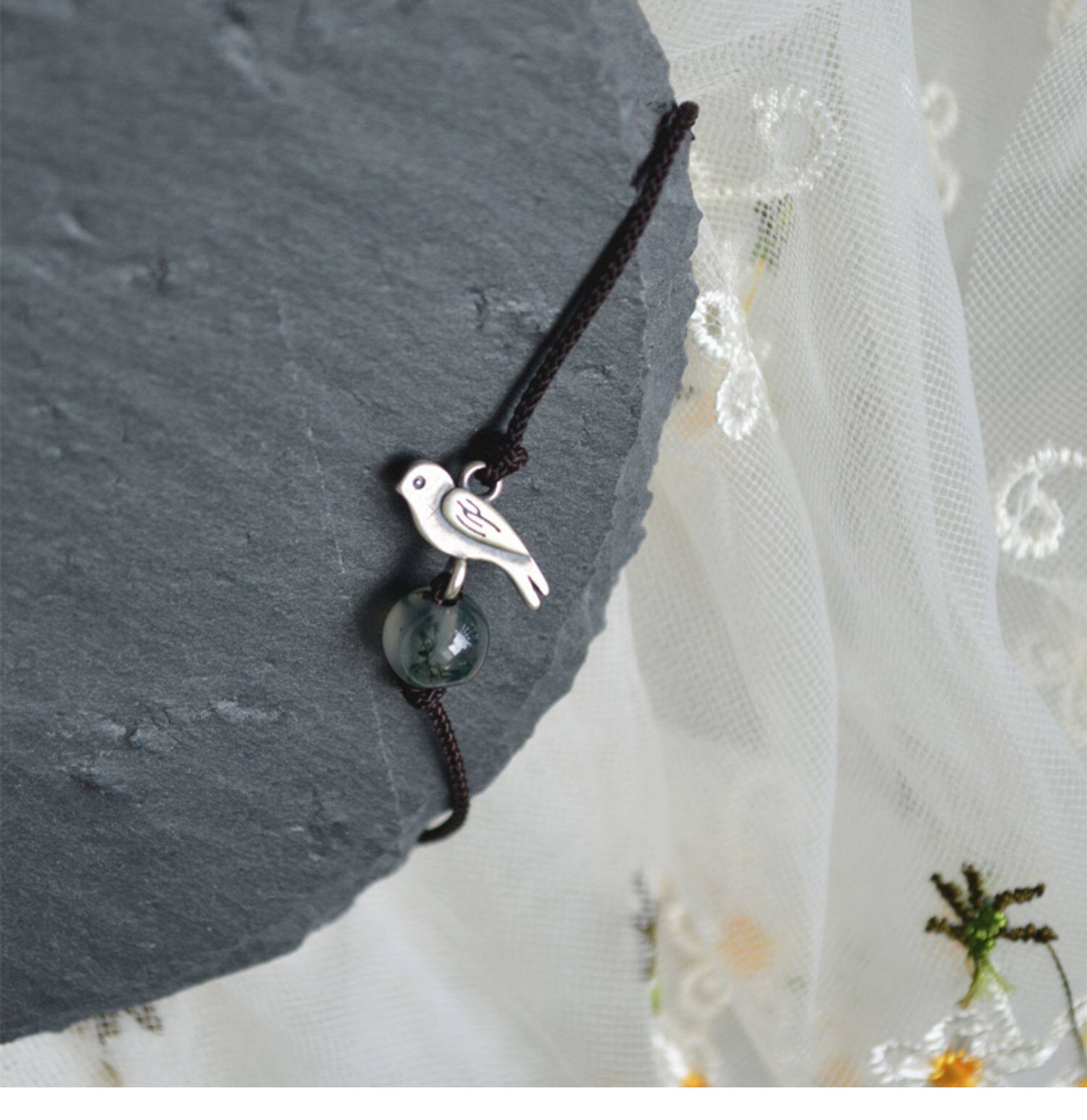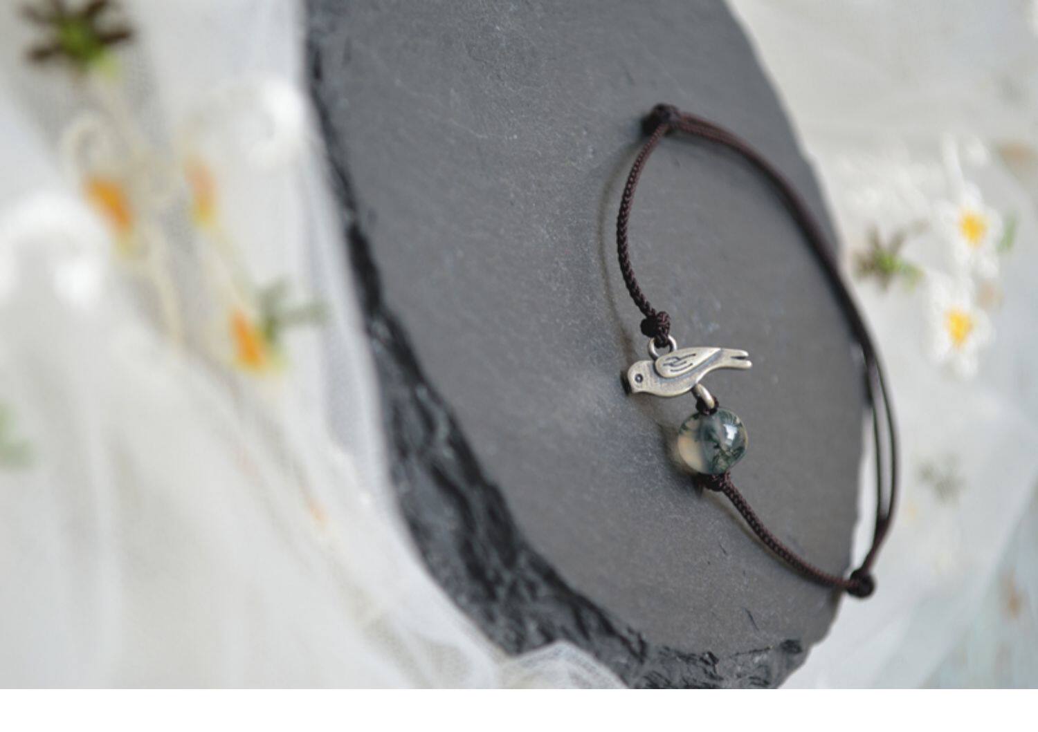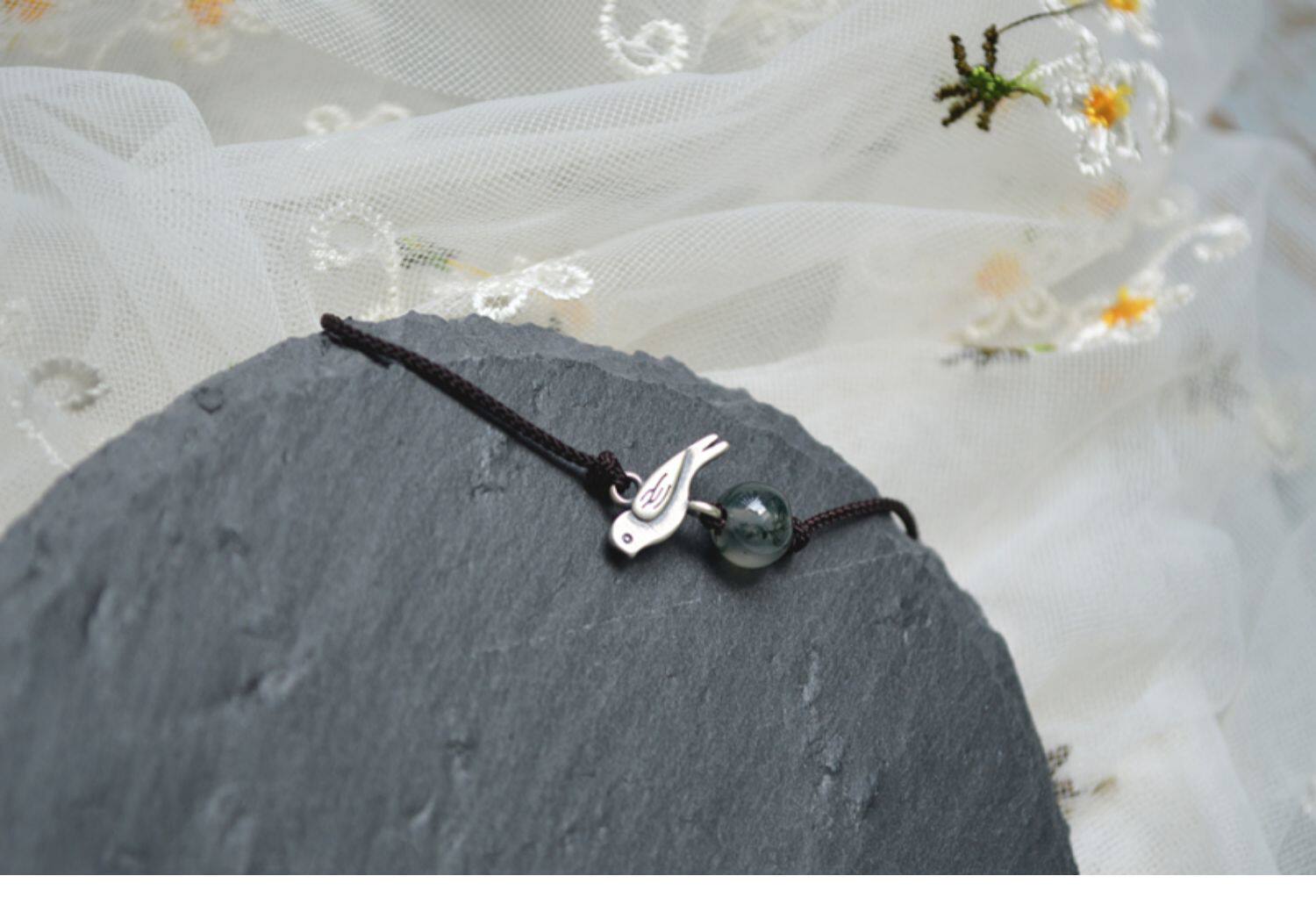 Robin Bird Simple and Elegant Sterling Silver 925 Bird and Aquatic Plant Agate Bracelet Bracelet Gift for Best Friend or Girlfriend