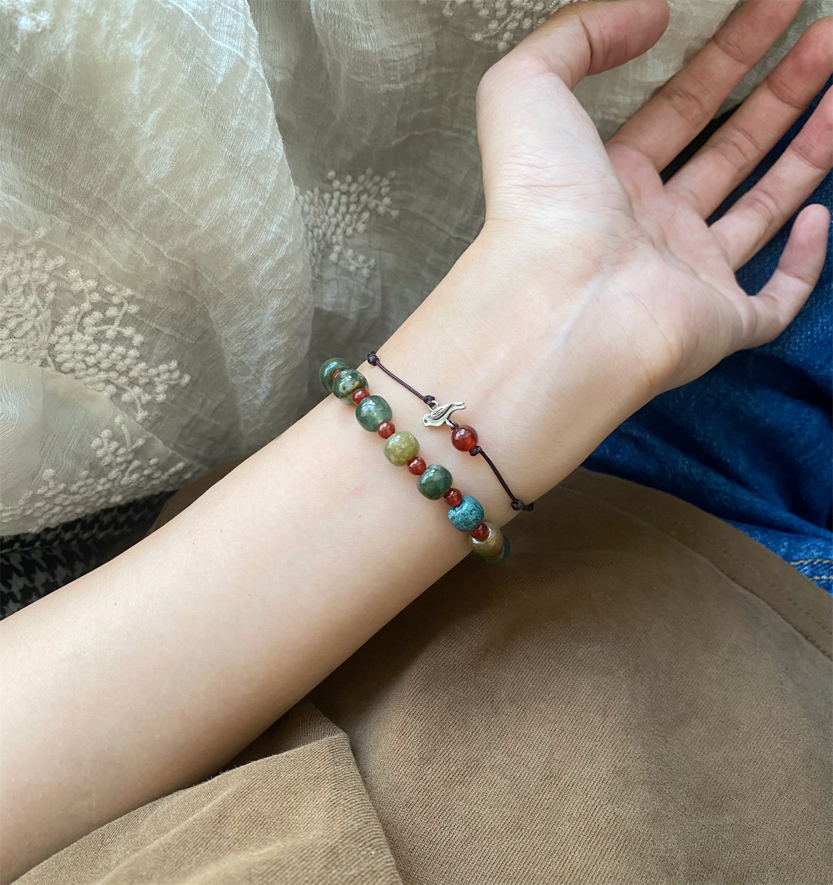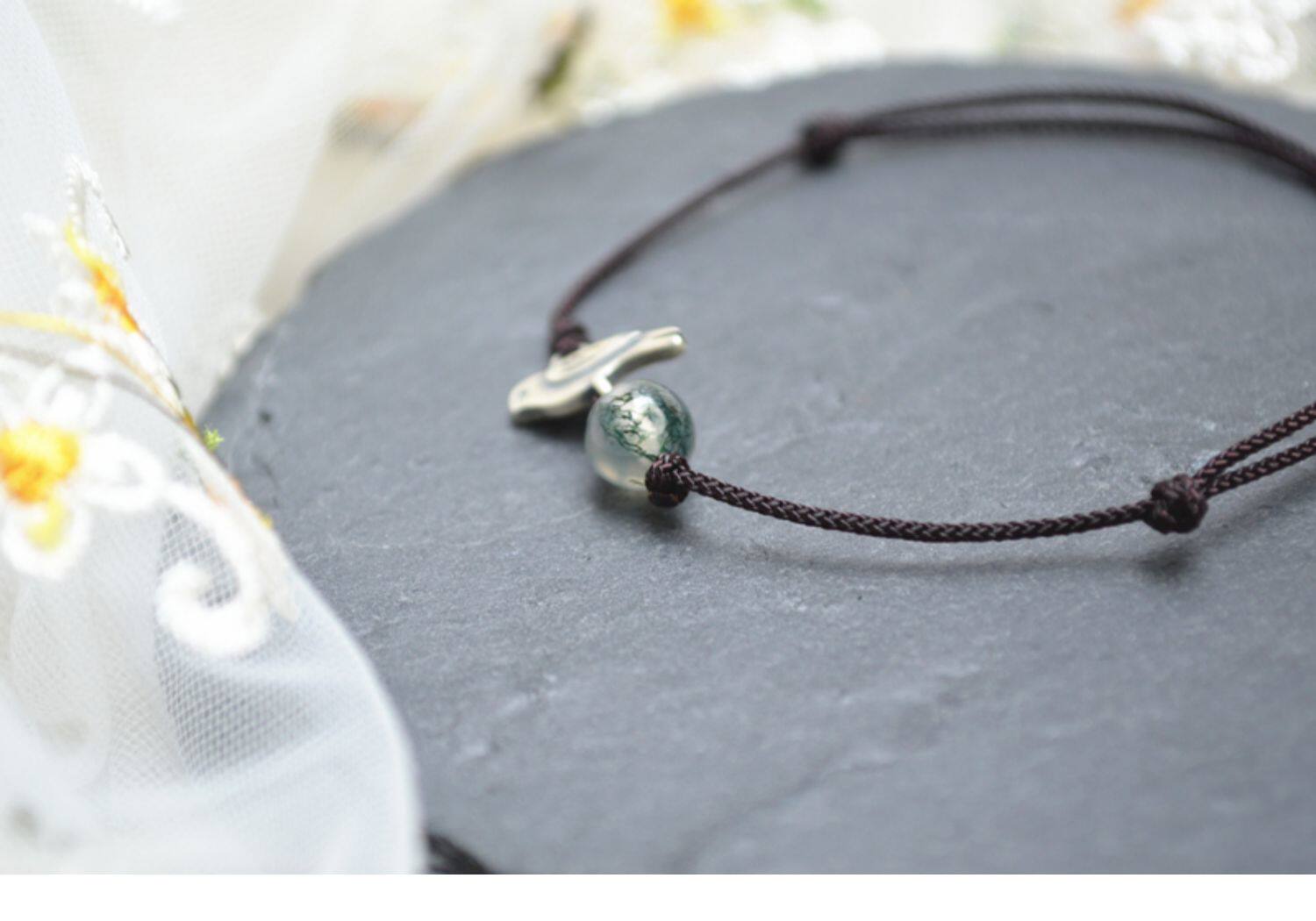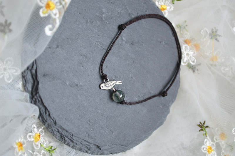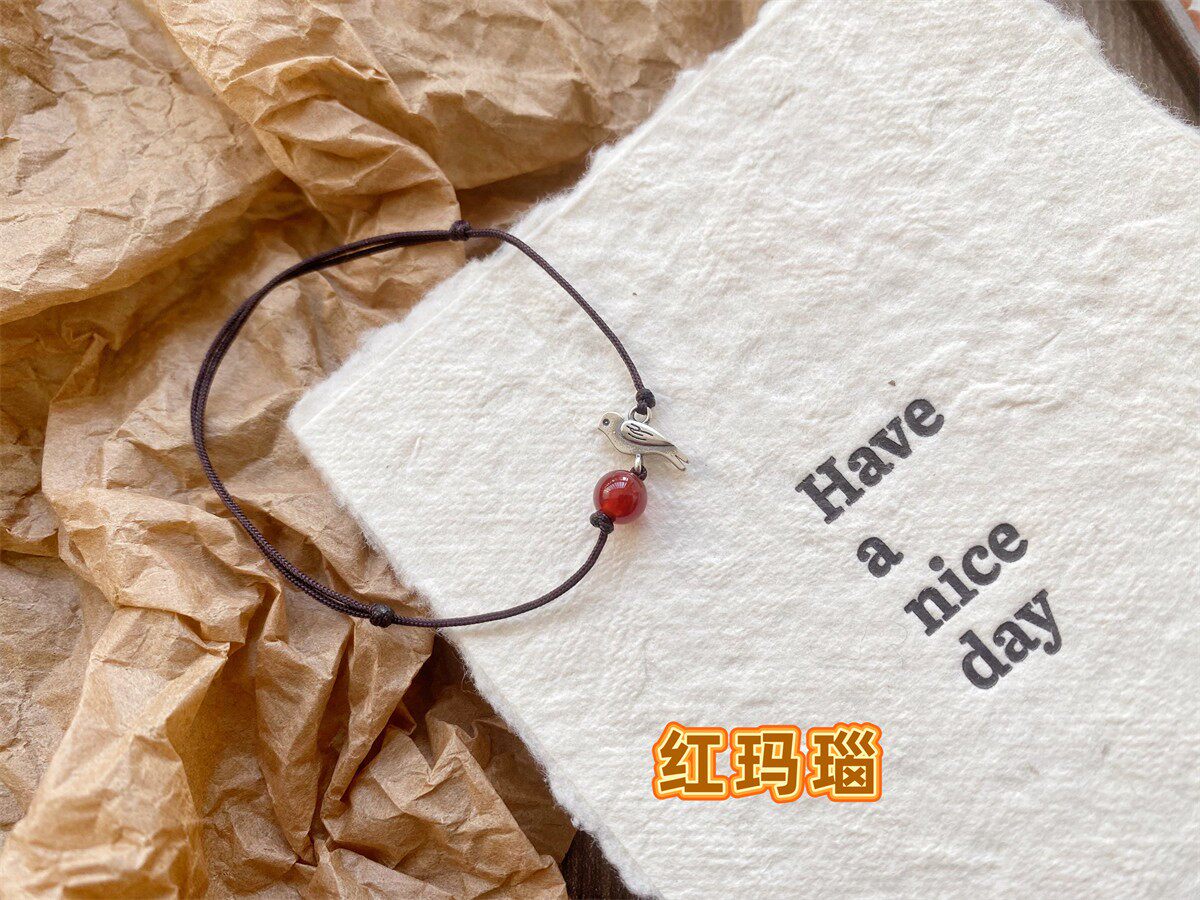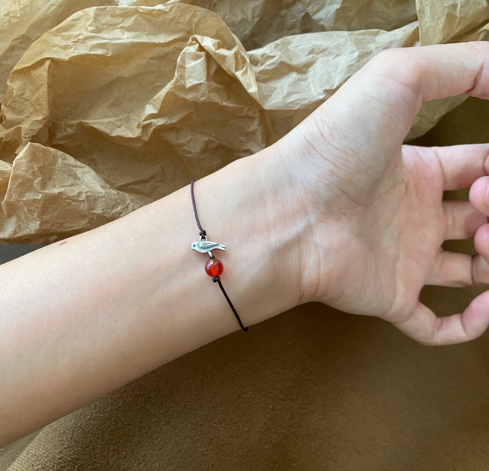 Robin Bird Simple and Elegant Sterling Silver 925 Bird and Aquatic Plant Agate Bracelet Bracelet Gift for Best Friend or Girlfriend