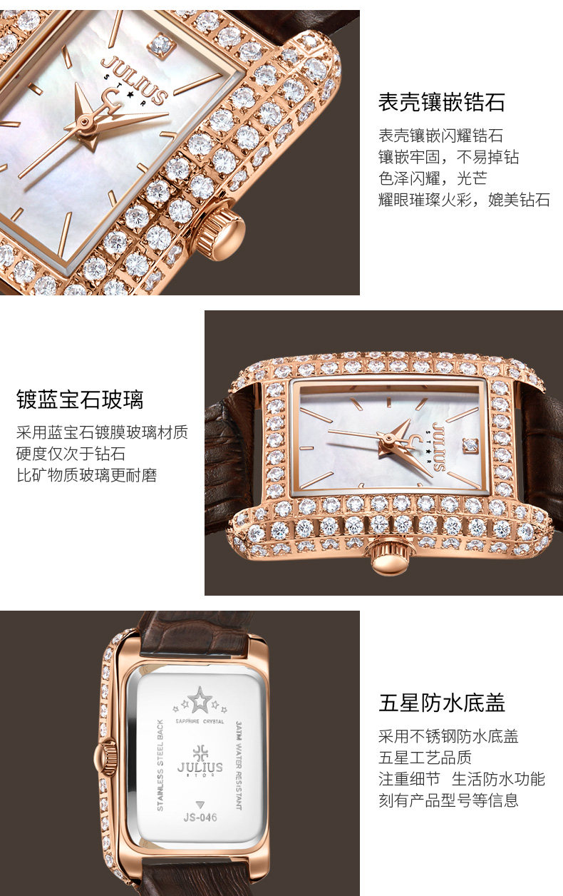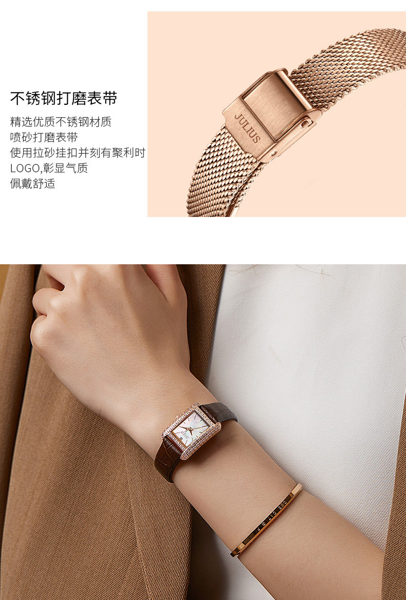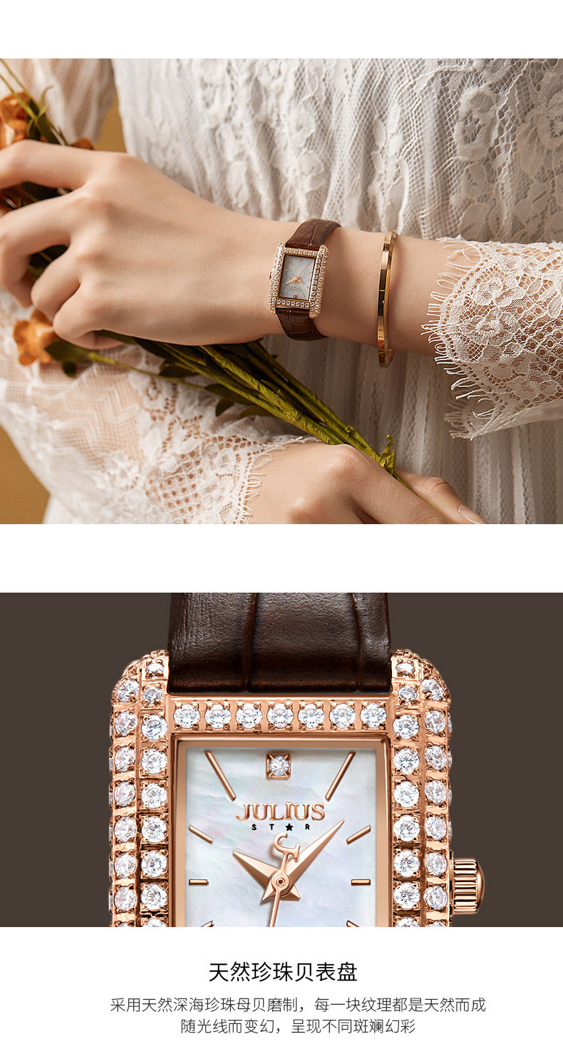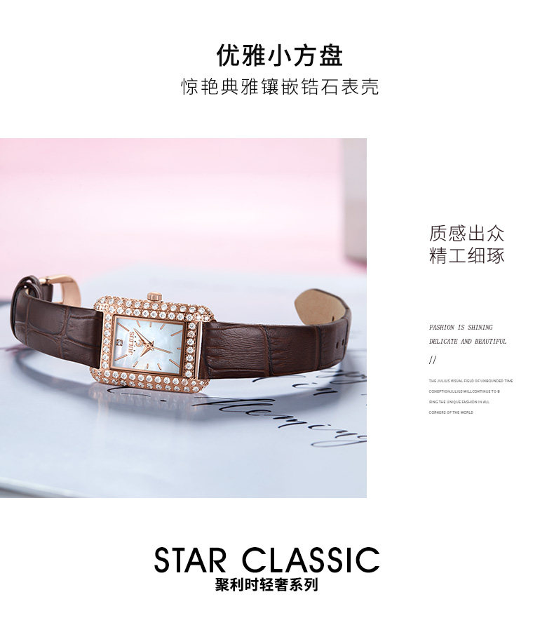 Julishi Korean Classy Accessible Luxury Niche Zircon Inlaid Small Square Watch Waterproof Quartz Professional Women's Watch Js046