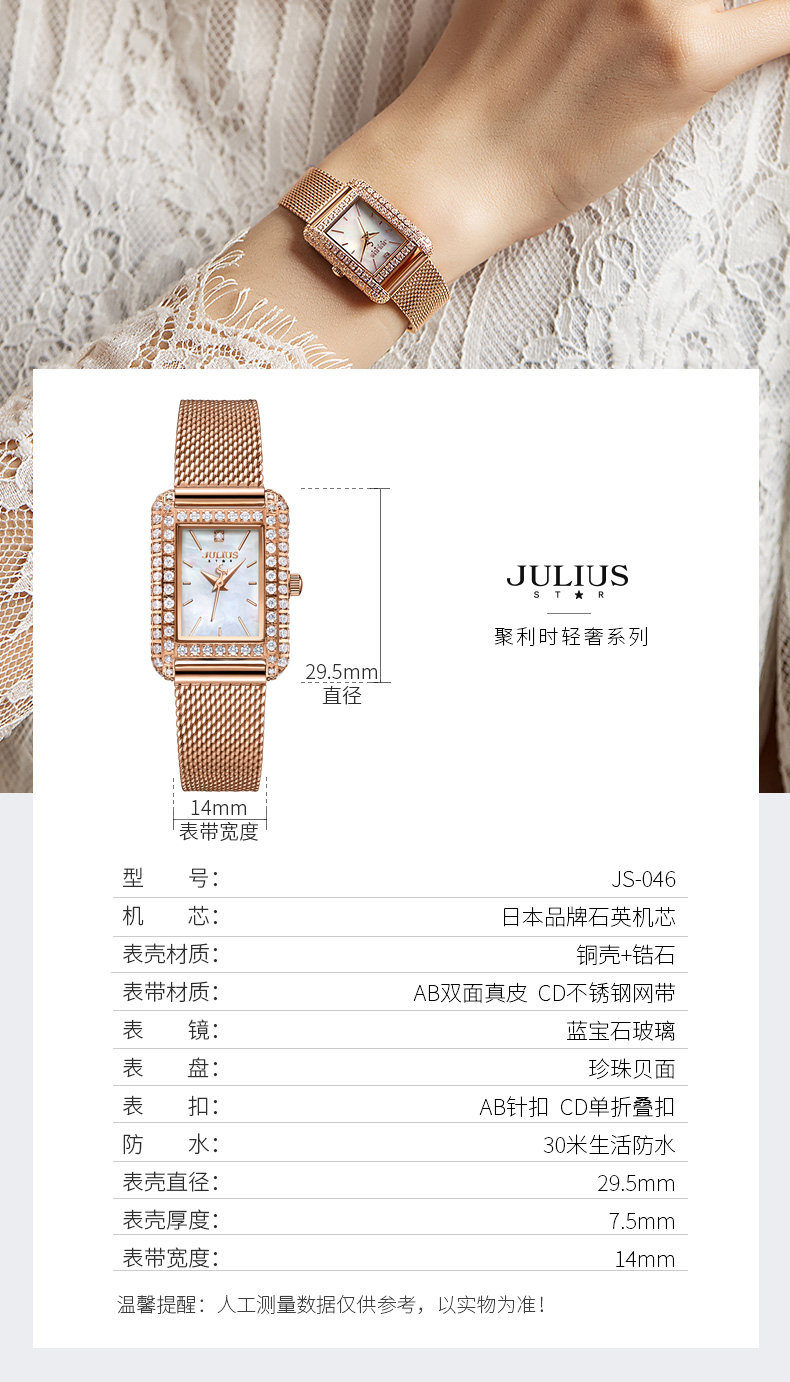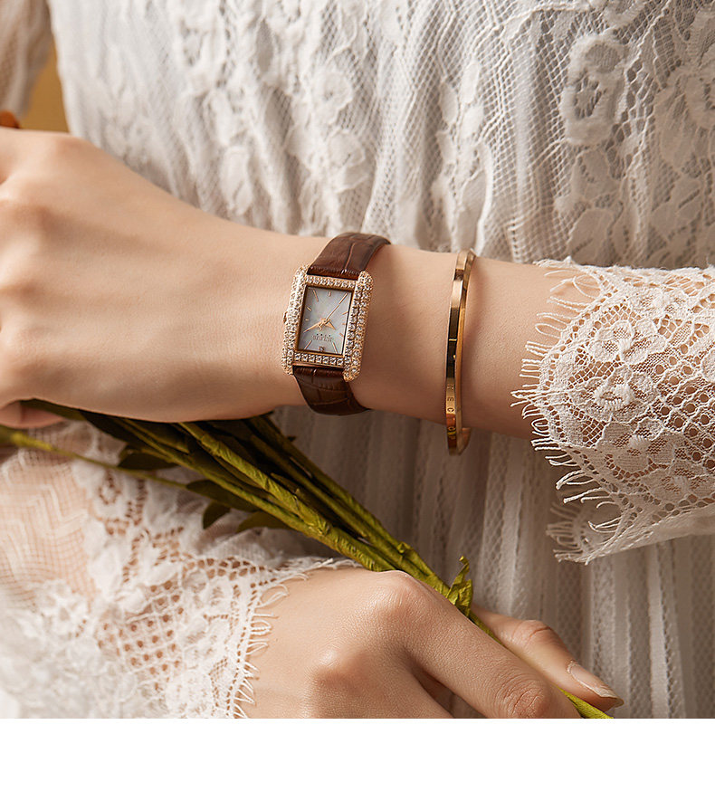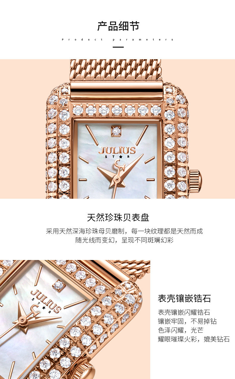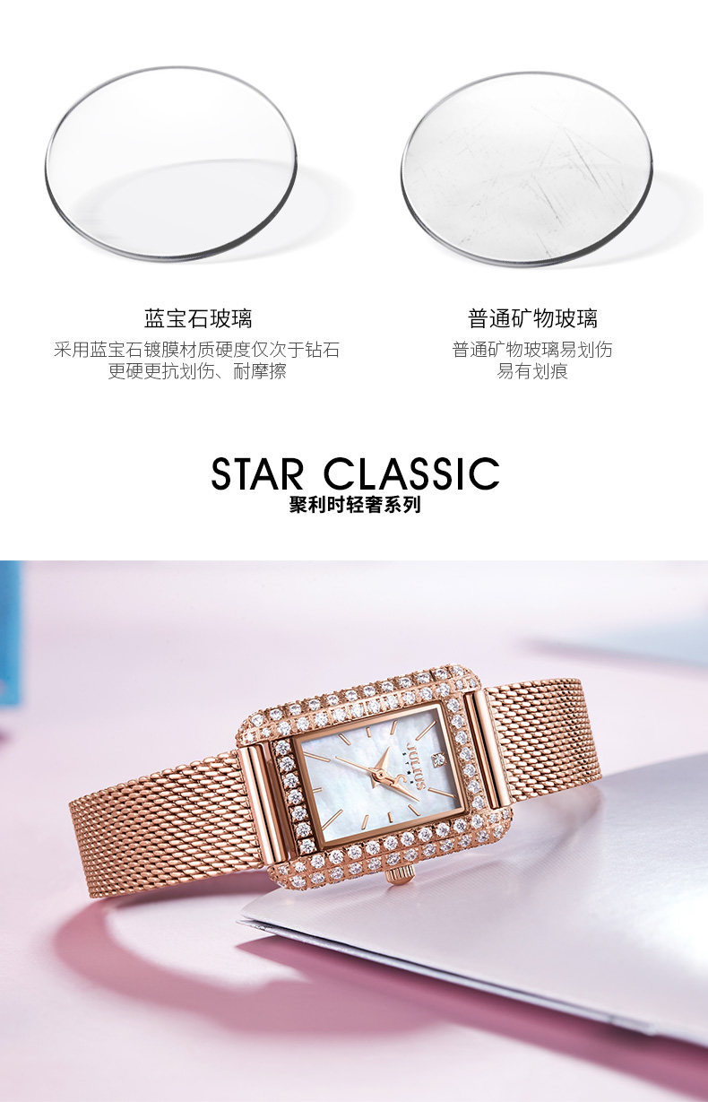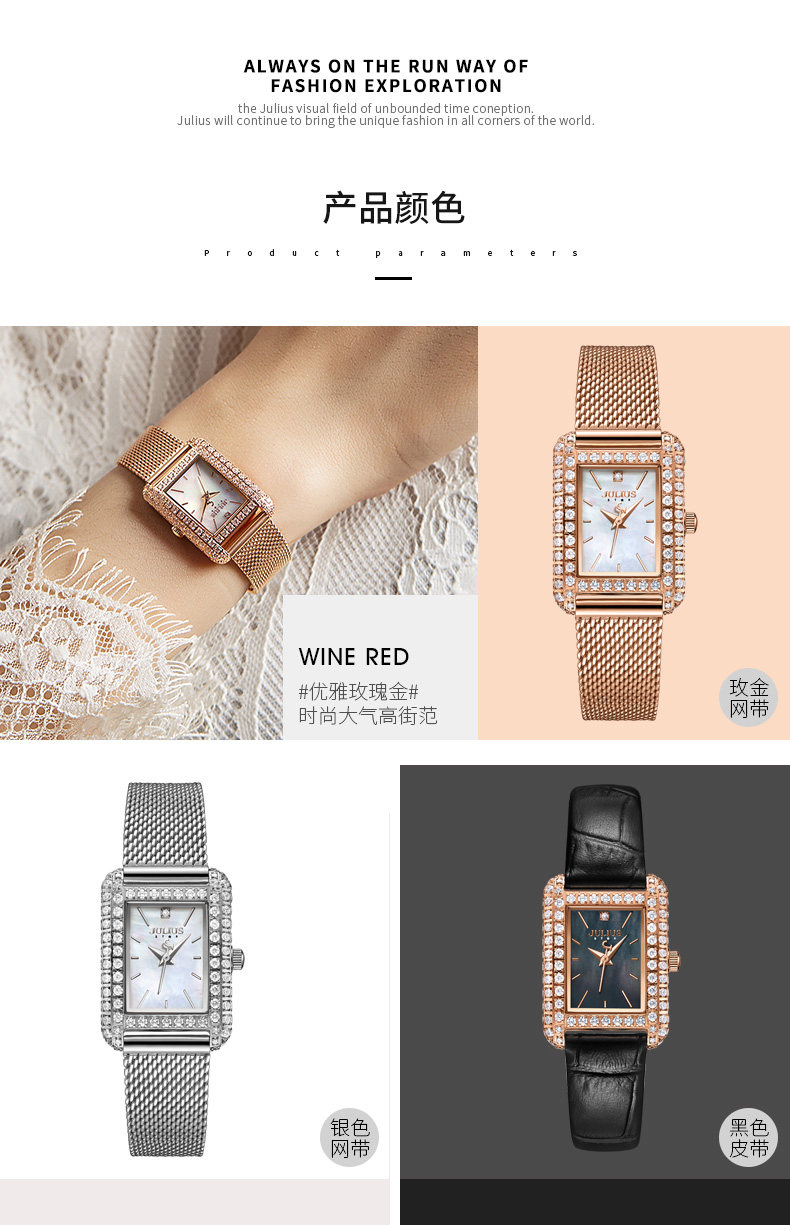 Julishi Korean Classy Accessible Luxury Niche Zircon Inlaid Small Square Watch Waterproof Quartz Professional Women's Watch Js046