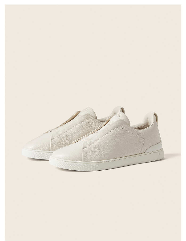 Zegna Men's Shoes White Deerskin Triple Stitch ™ Men's Luxury Casual Shoes