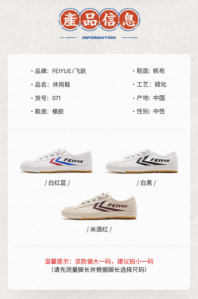 Feiyue/Feiyue Canvas Shoes Women's White Shoes 2024 Autum Style Couple Style Street Style Trendy Casual Men's Shoes 071