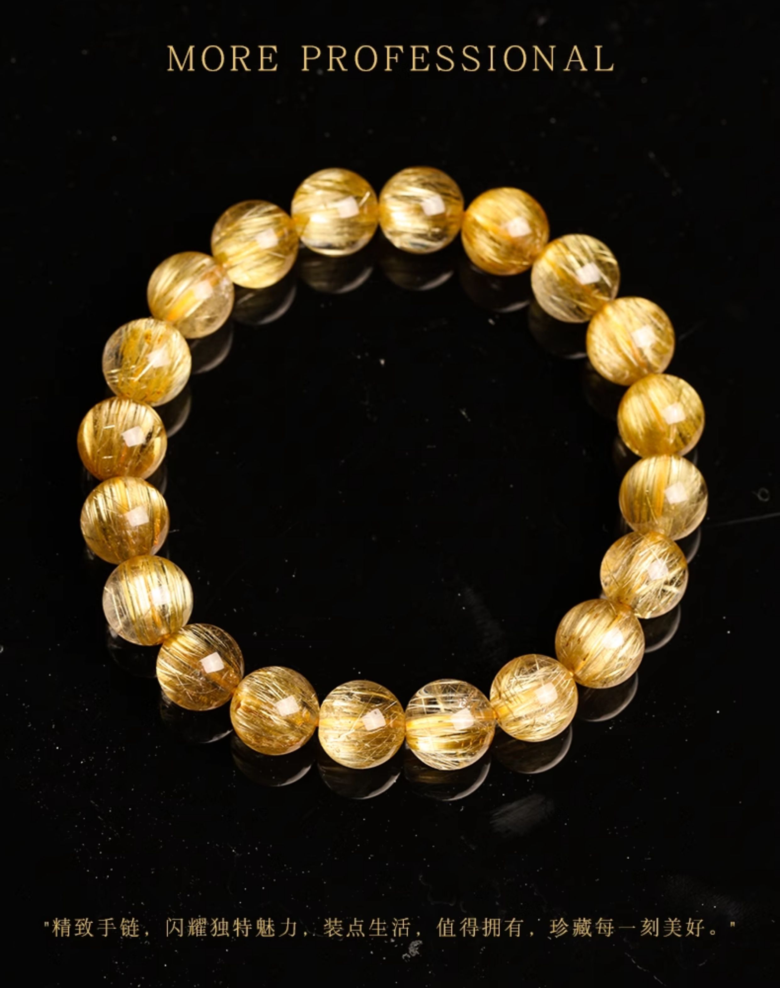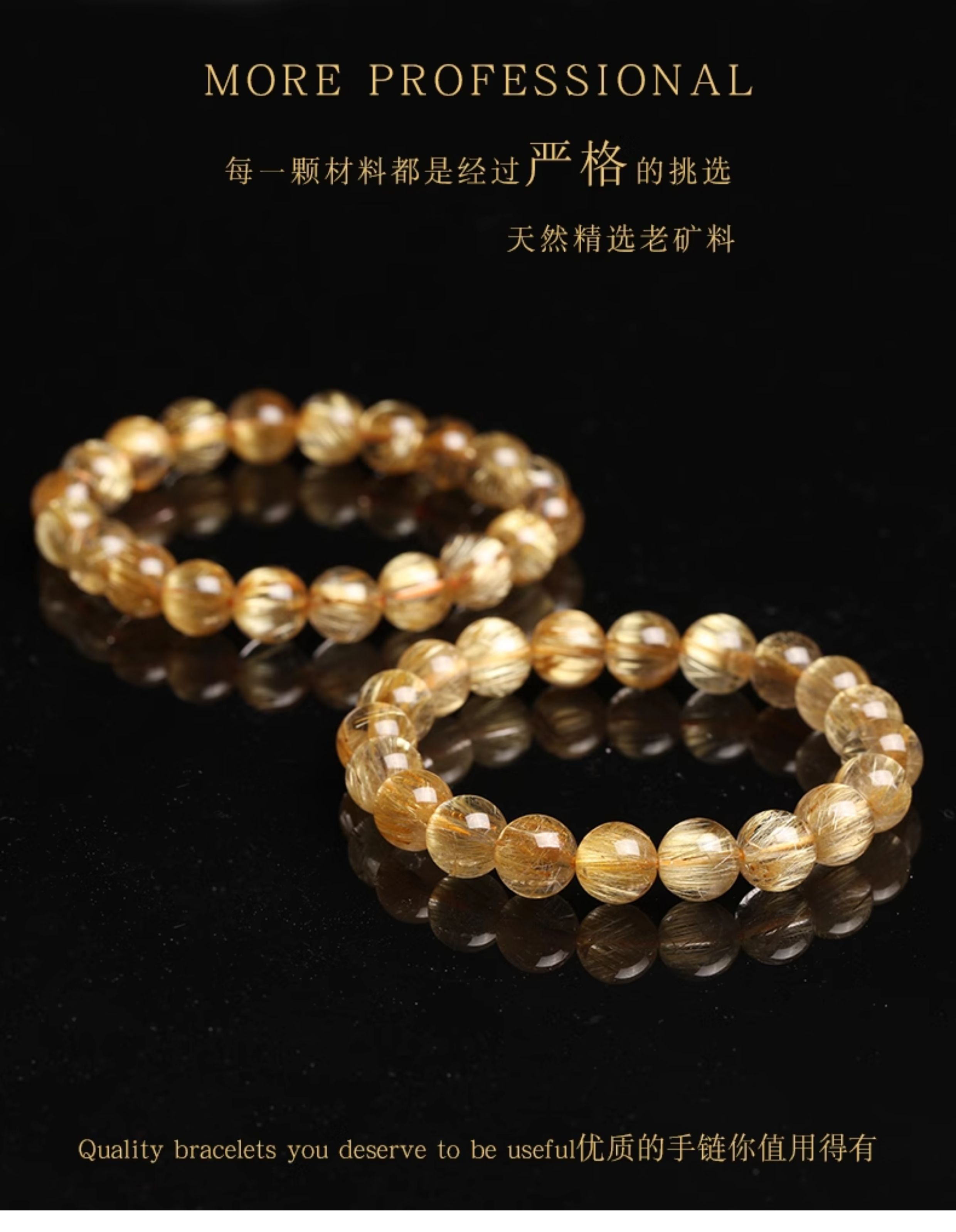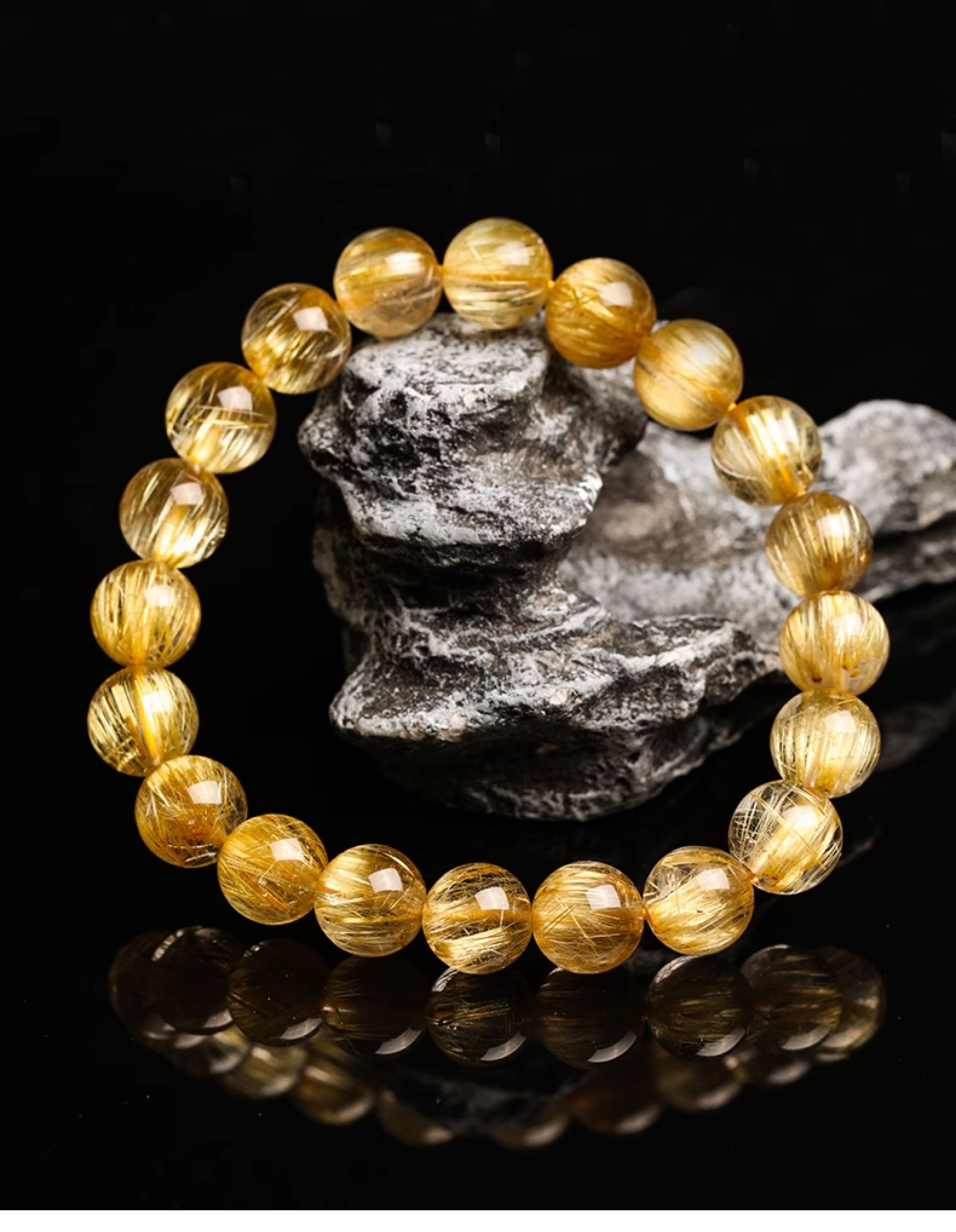 Natural Golden Rutilated Quartz Bracelet for Women, Brazilian Golden Titanium Crystal for Men, Yellow Rutilated Quartz, Raw Stone Bracelet, Collector's Grade
