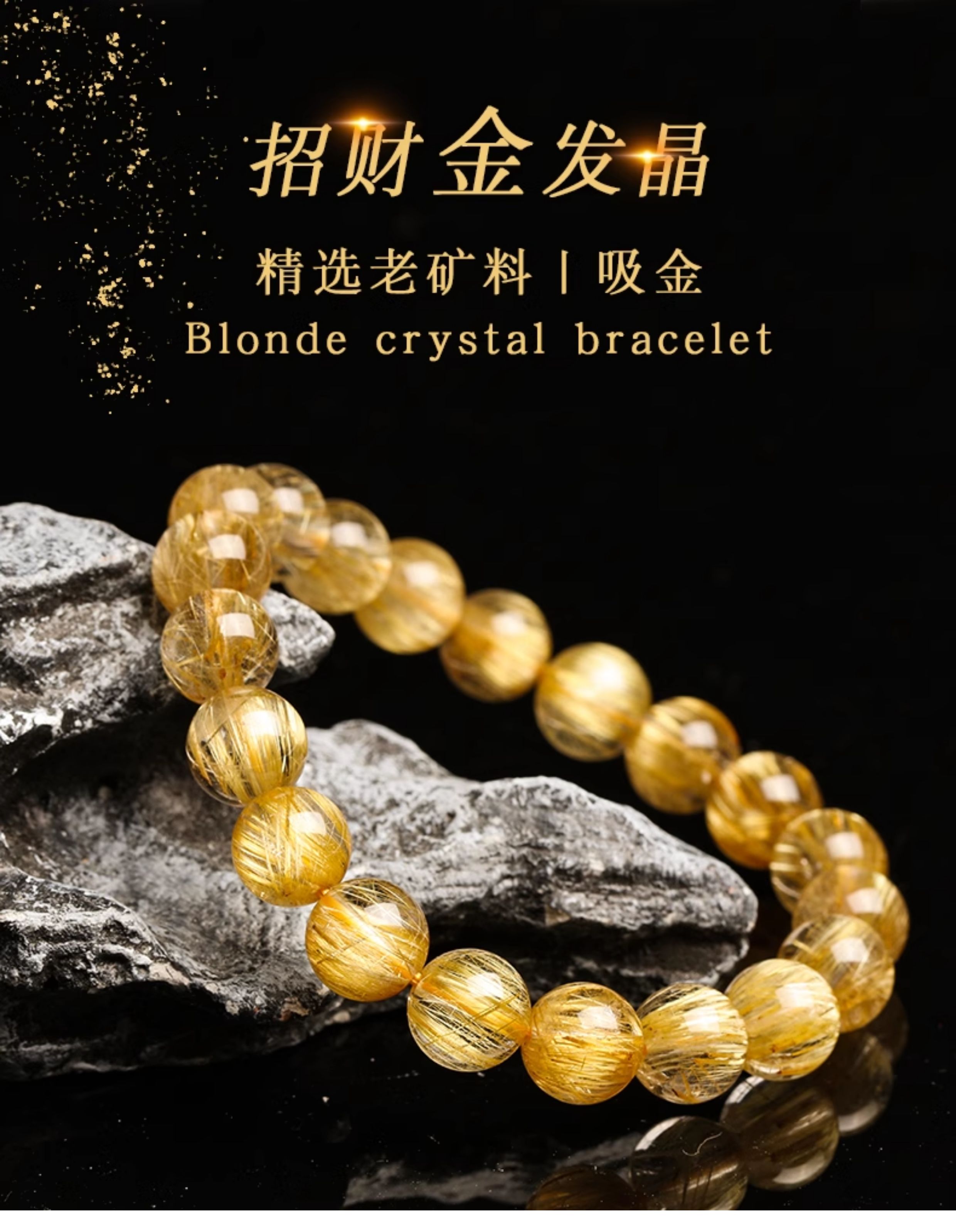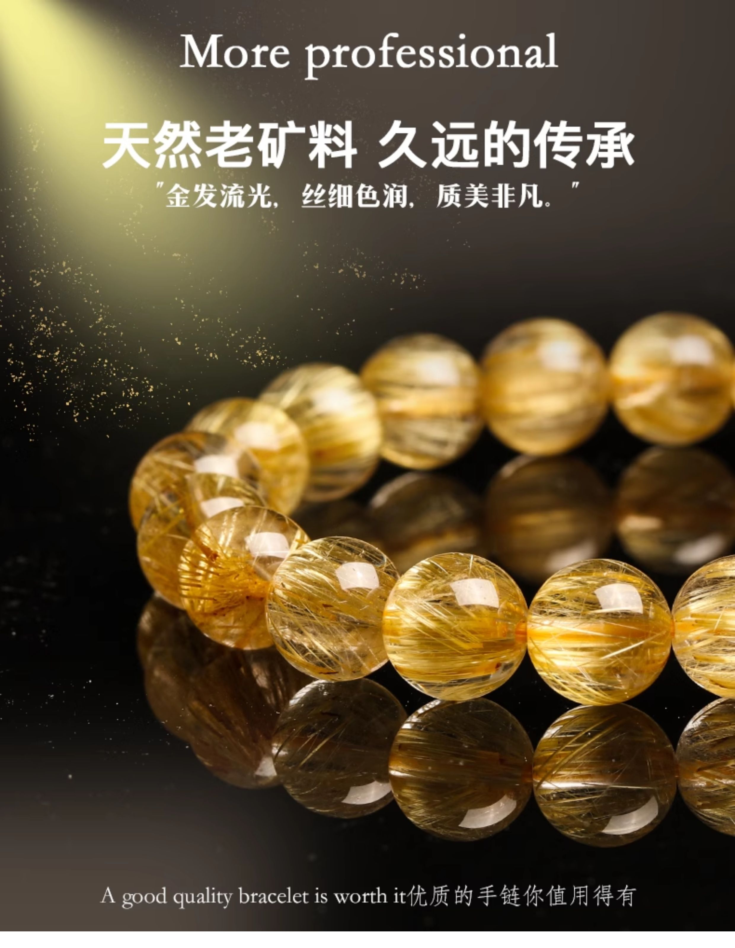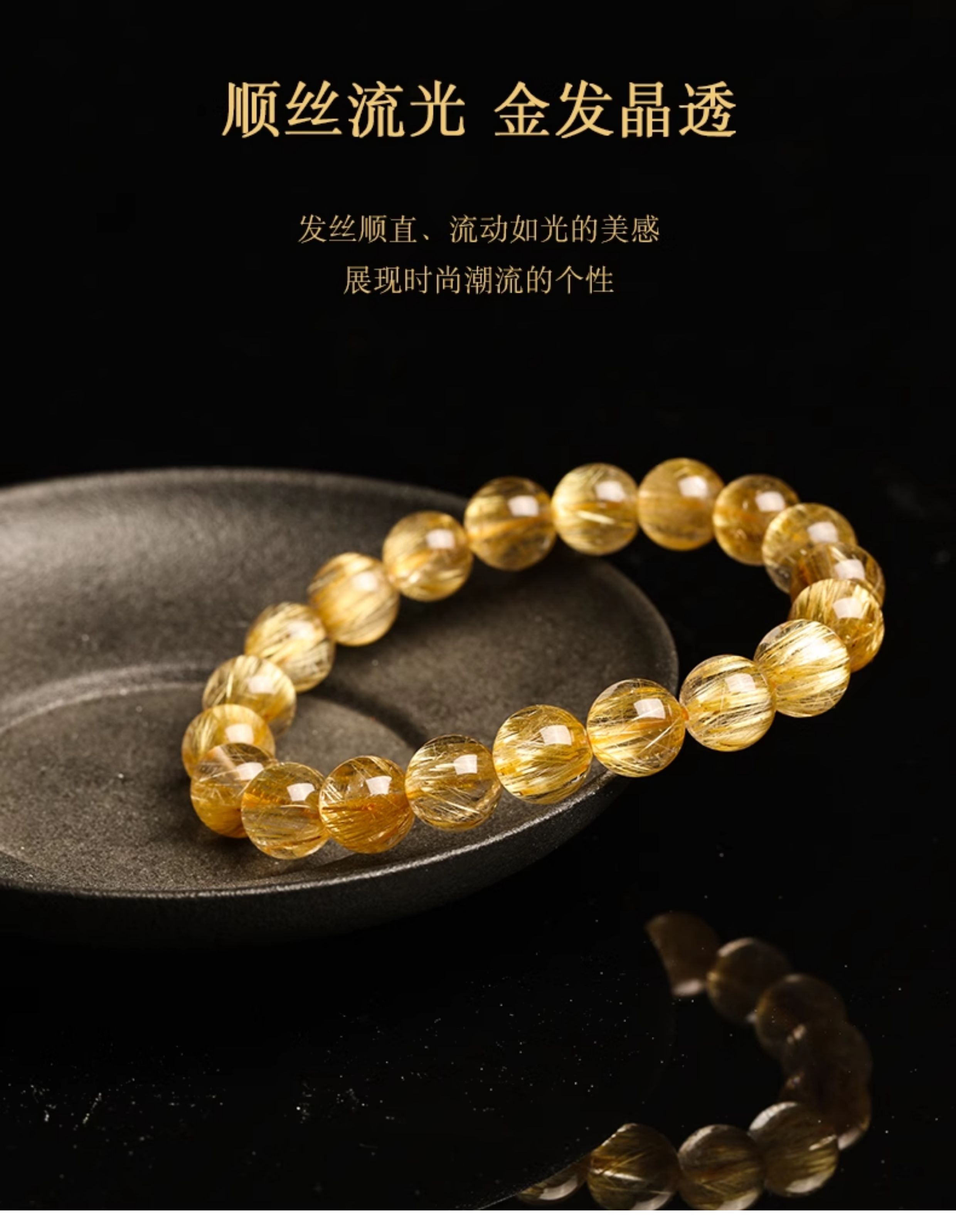 Natural Golden Rutilated Quartz Bracelet for Women, Brazilian Golden Titanium Crystal for Men, Yellow Rutilated Quartz, Raw Stone Bracelet, Collector's Grade