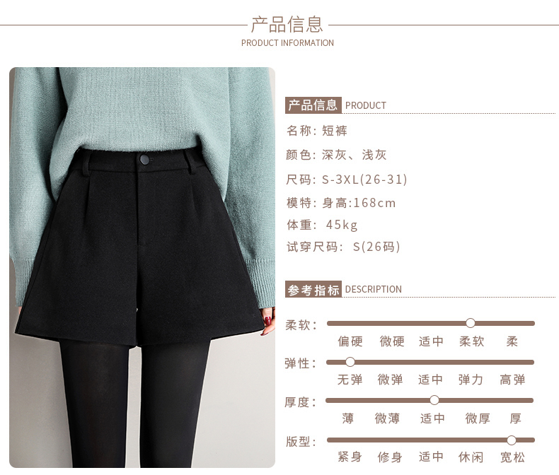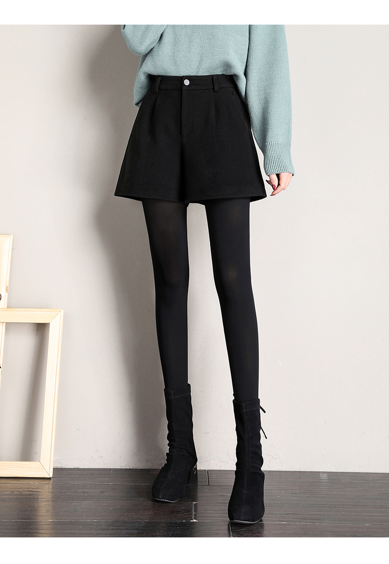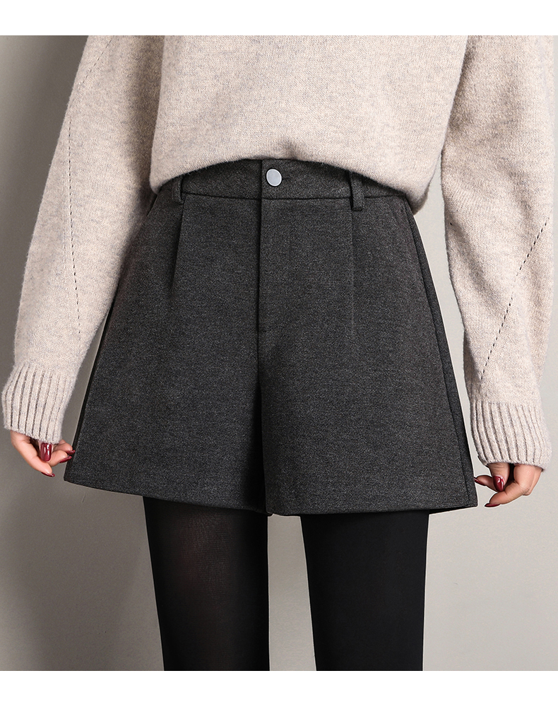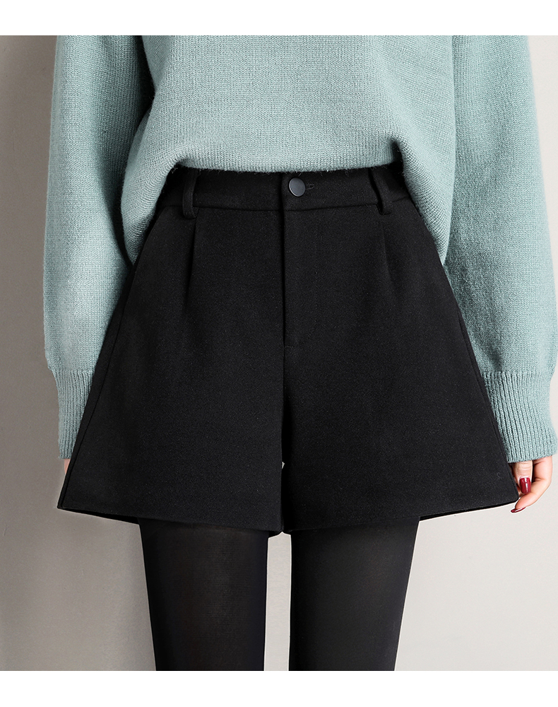 Women's Shorts for Autumn and Winter, 2025 New Style, Slimming Woolen Thickened Loose High-Waisted Wide-Leg A-Line Boot Shorts