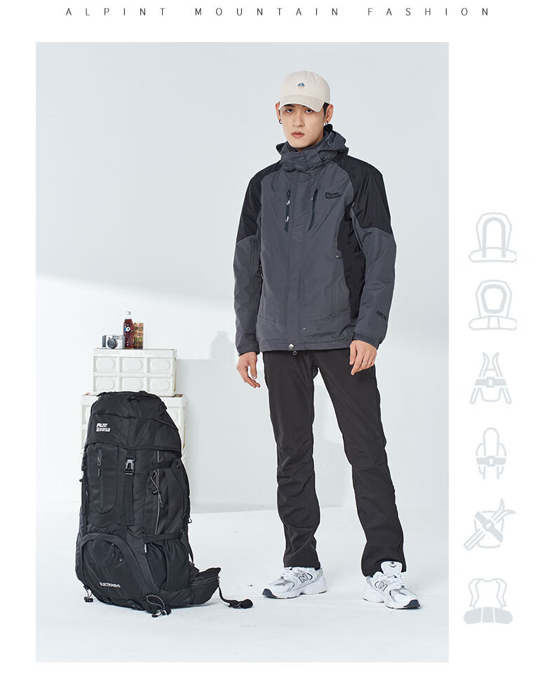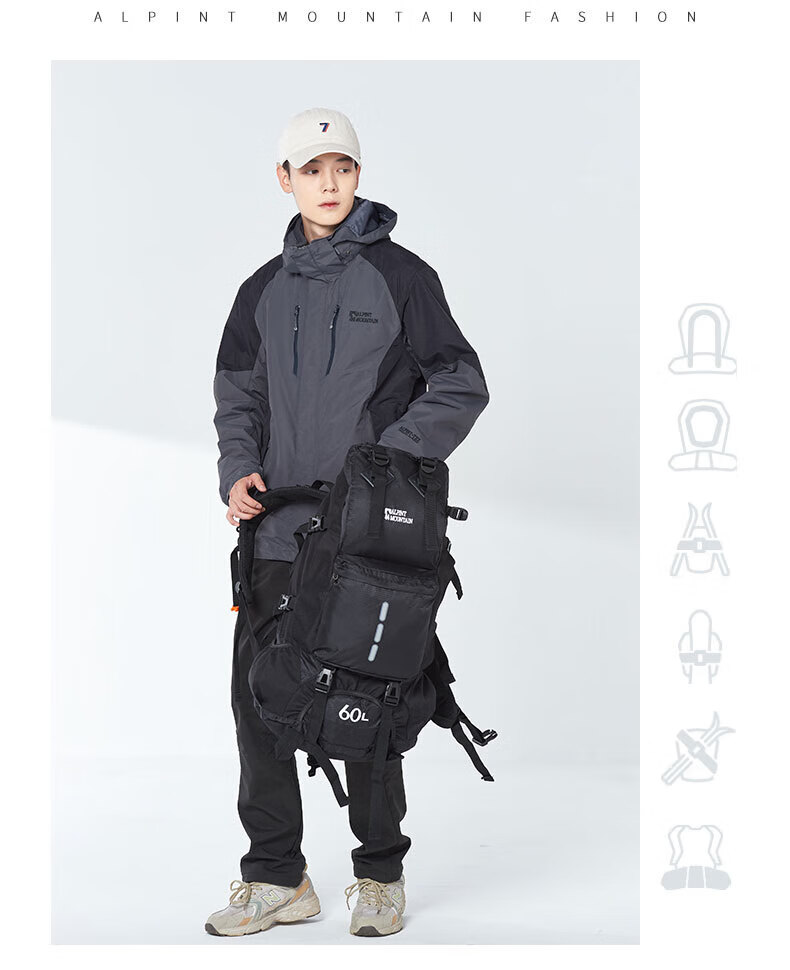 Elmont Professional Mountaineering Bag Outdoor Travel Backpack Men's 50-Liter Large-Capacity Wear-Resistant Hiking Backpack Women's