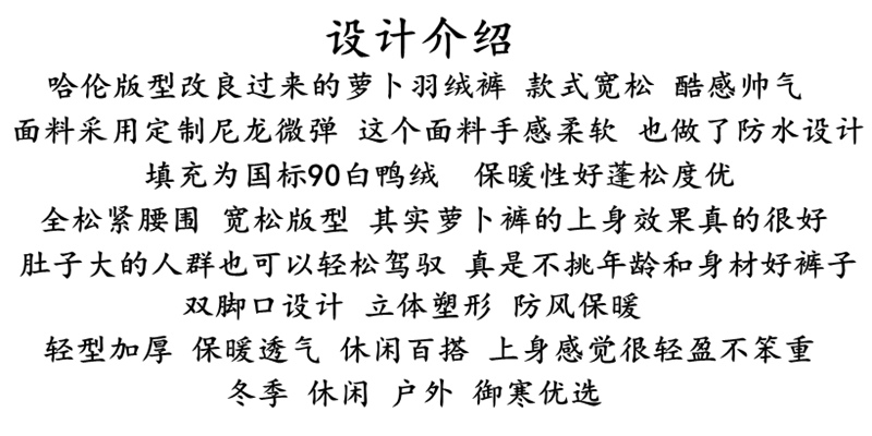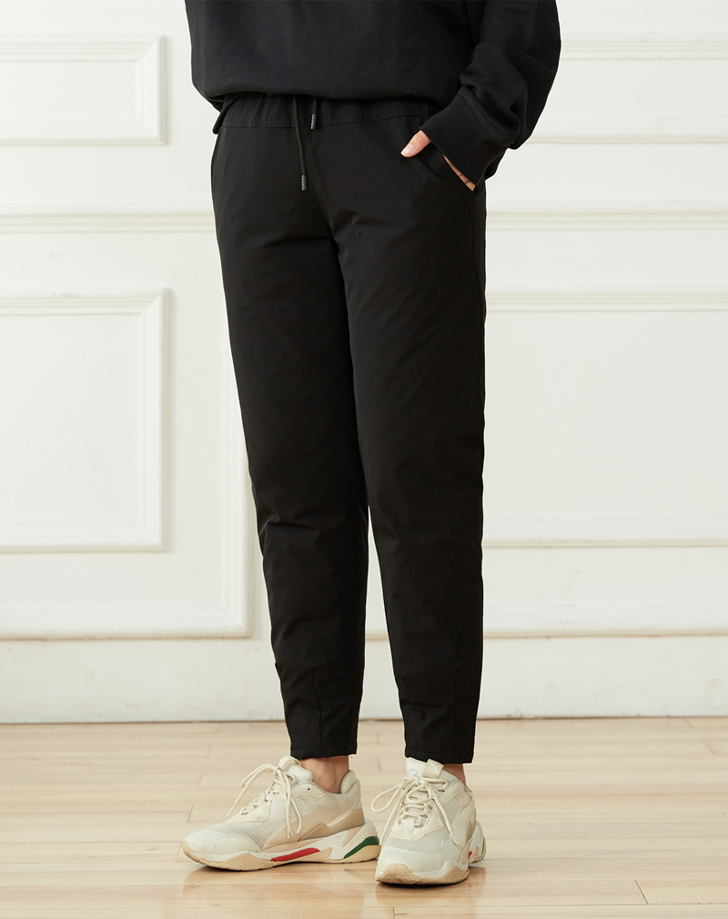 Women's down Pants for Outdoor Wear, High-Waisted, Thickened with White Duck Down, Warm, Slim-Fitting, Casual Winter Harem Carrot Pants, Trendy