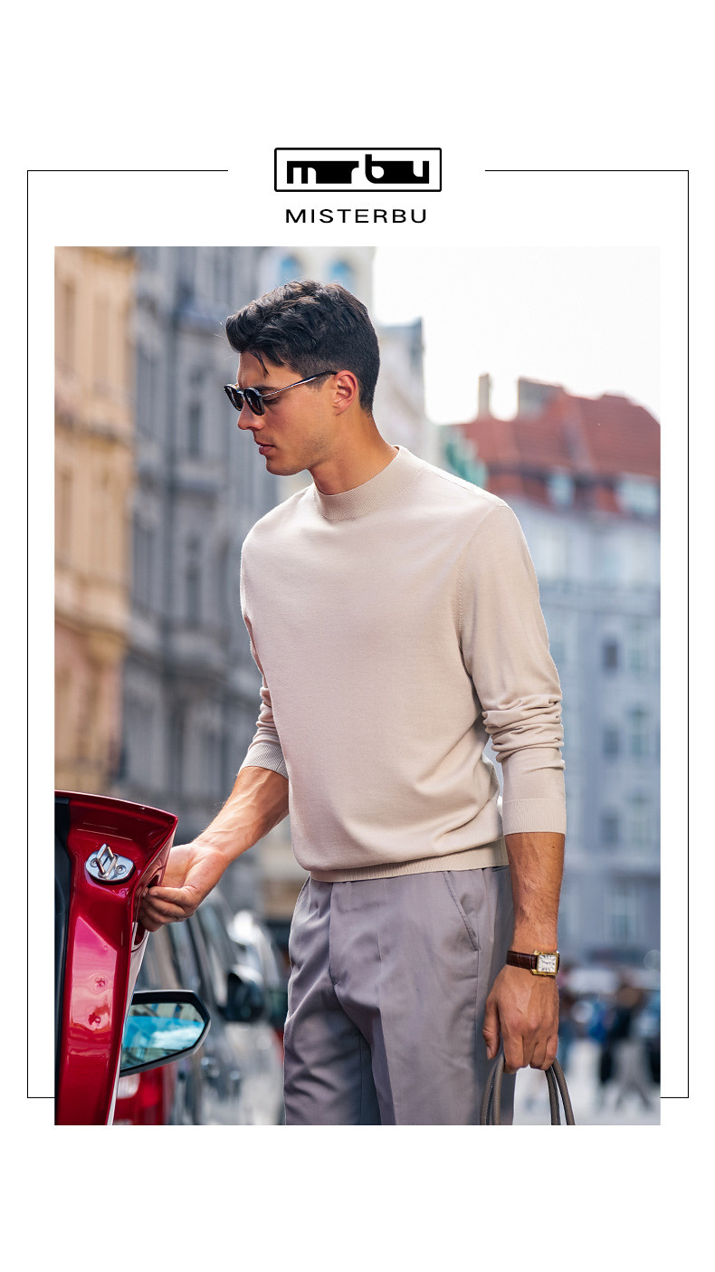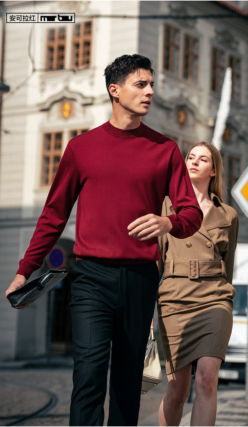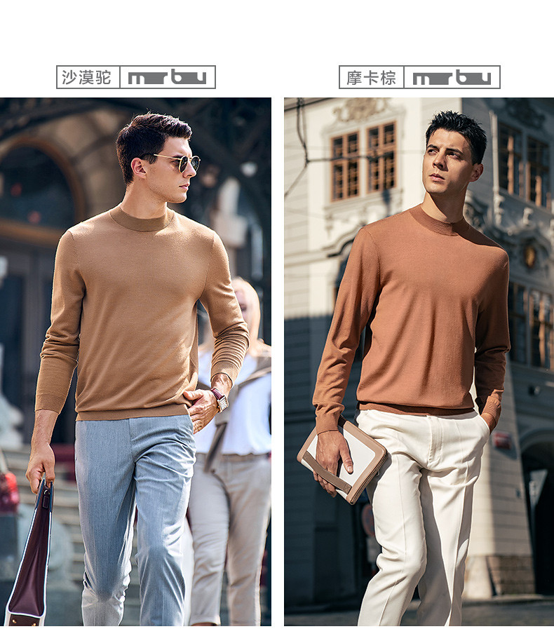 [Same Style as Tong Dawei] Mrbu Men's Turtleneck Wool Sweater for Autumn and Winter, Machine Washable