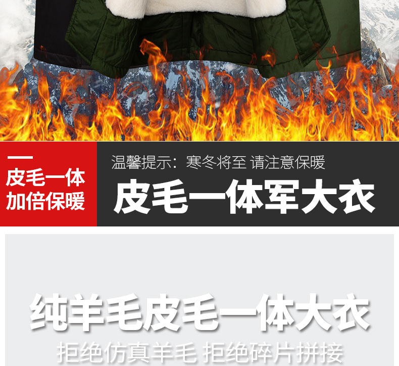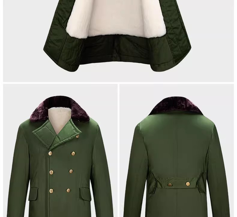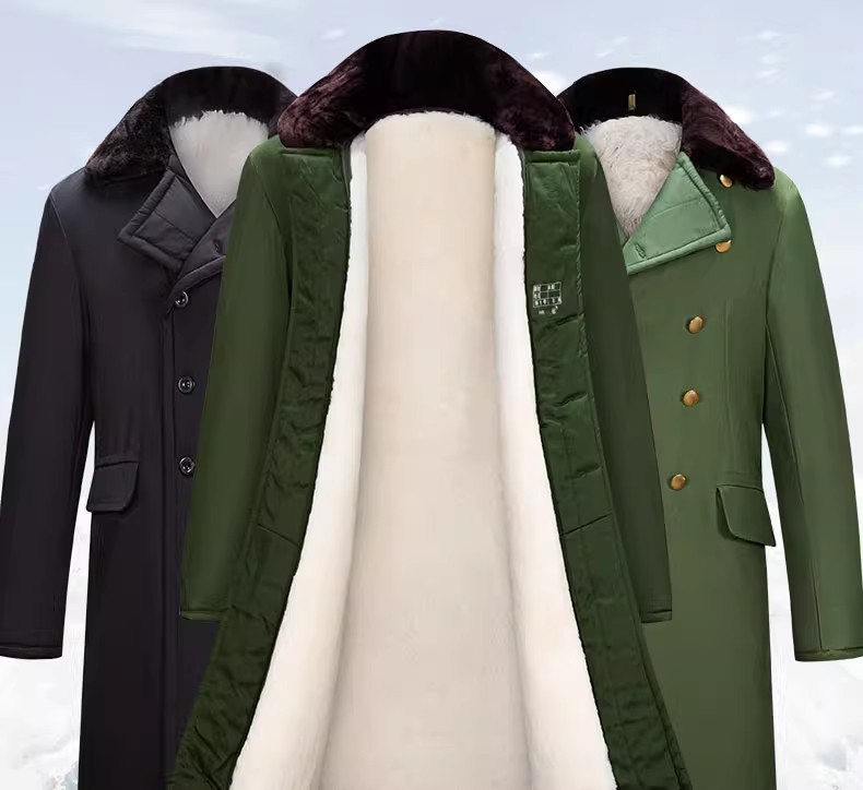 Men's Winter Military-Style Cotton Coat, Shearling Coat, Fur Integrated Long Style, Thickened for Labor Protection, Old-Style Cold-Proof Northeast Cotton Jacket