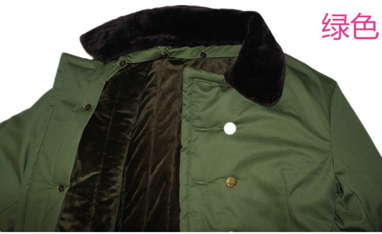 Military Cotton Coat, Winter Thickened Long Style for Men and Women, Cold Storage Labor Protection, Northeast Green Coat, Washable, Cold-Proof Workwear, Cotton-Padded Jacket