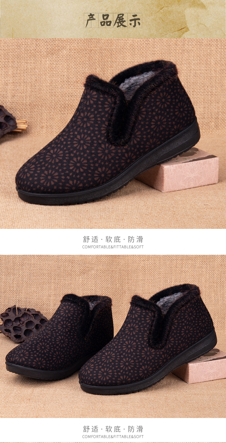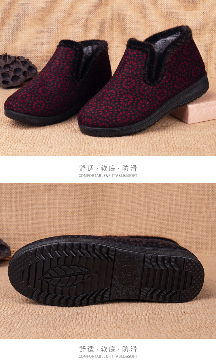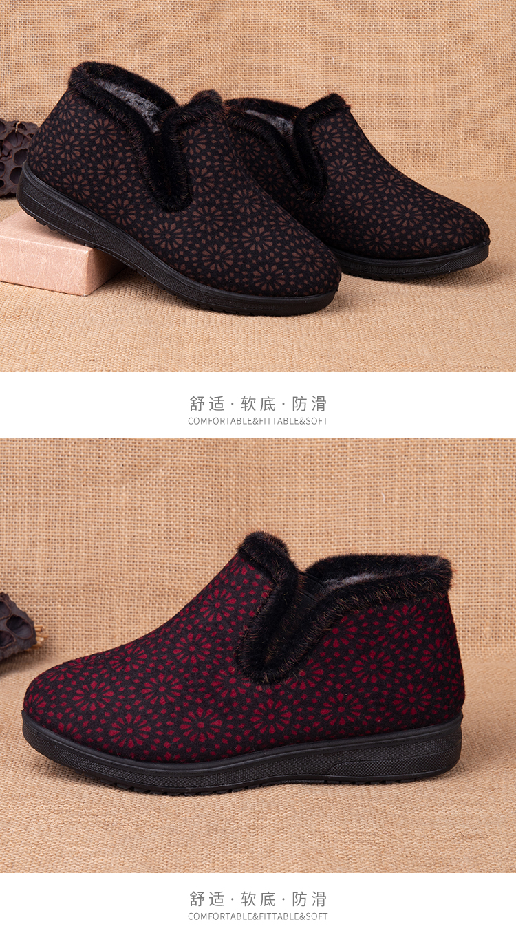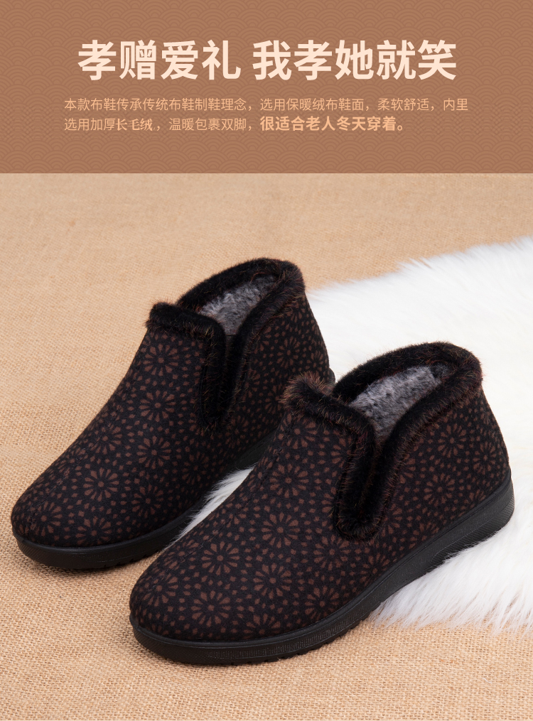Elderly Women's Cotton Shoes for Winter, Old Beijing Cloth Shoes with Fleece Lining, Warm, Non-Slip, Mother's Shoes, Soft-Soled Grandma Cotton Shoes