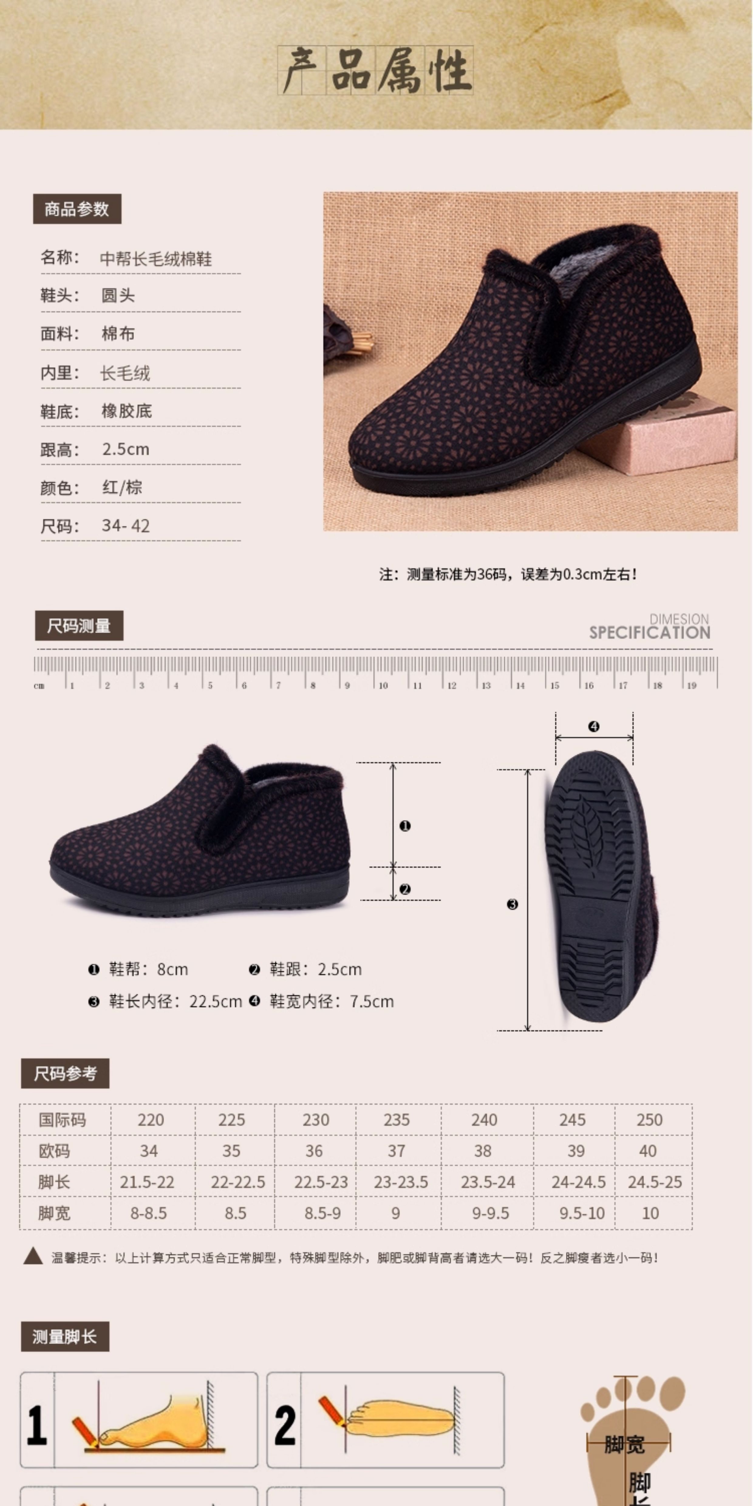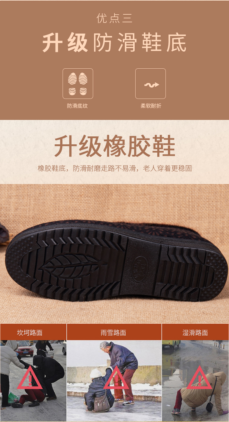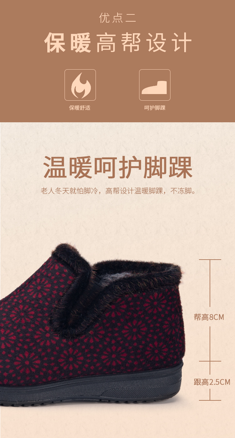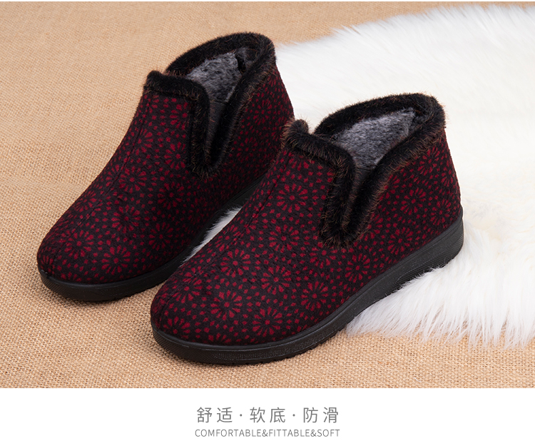 Elderly Women's Cotton Shoes for Winter, Old Beijing Cloth Shoes with Fleece Lining, Warm, Non-Slip, Mother's Shoes, Soft-Soled Grandma Cotton Shoes