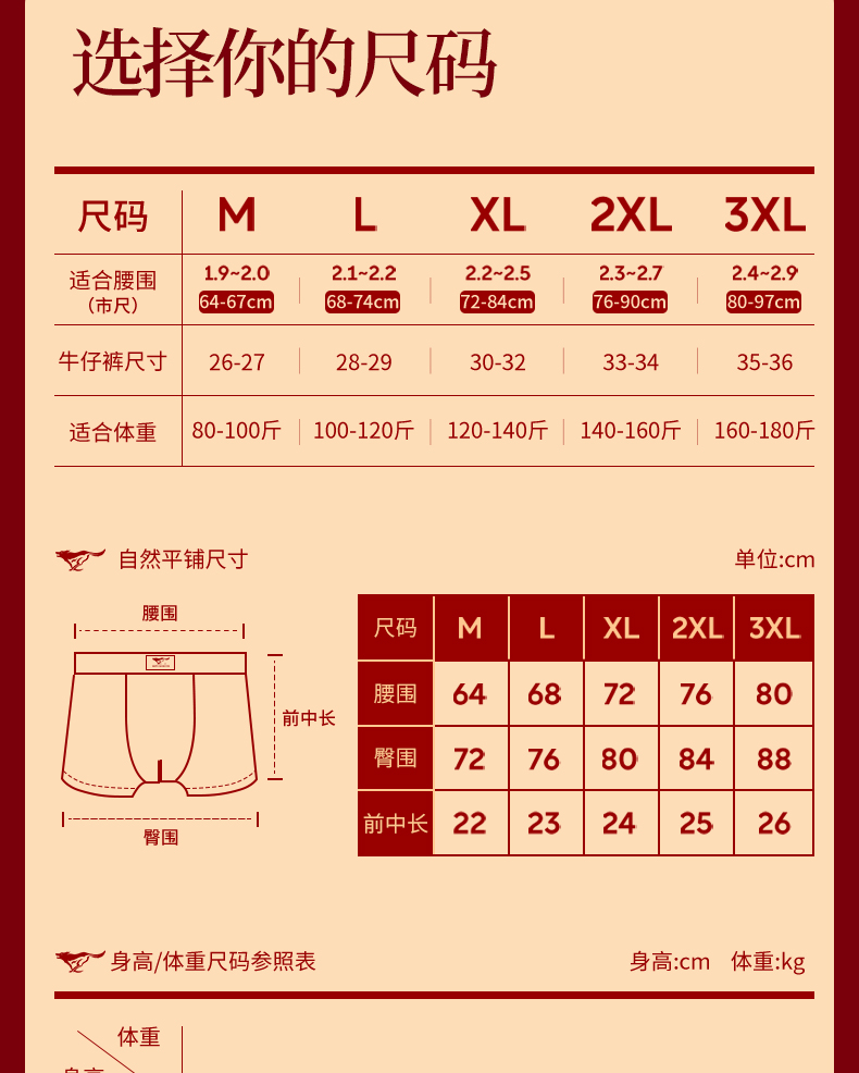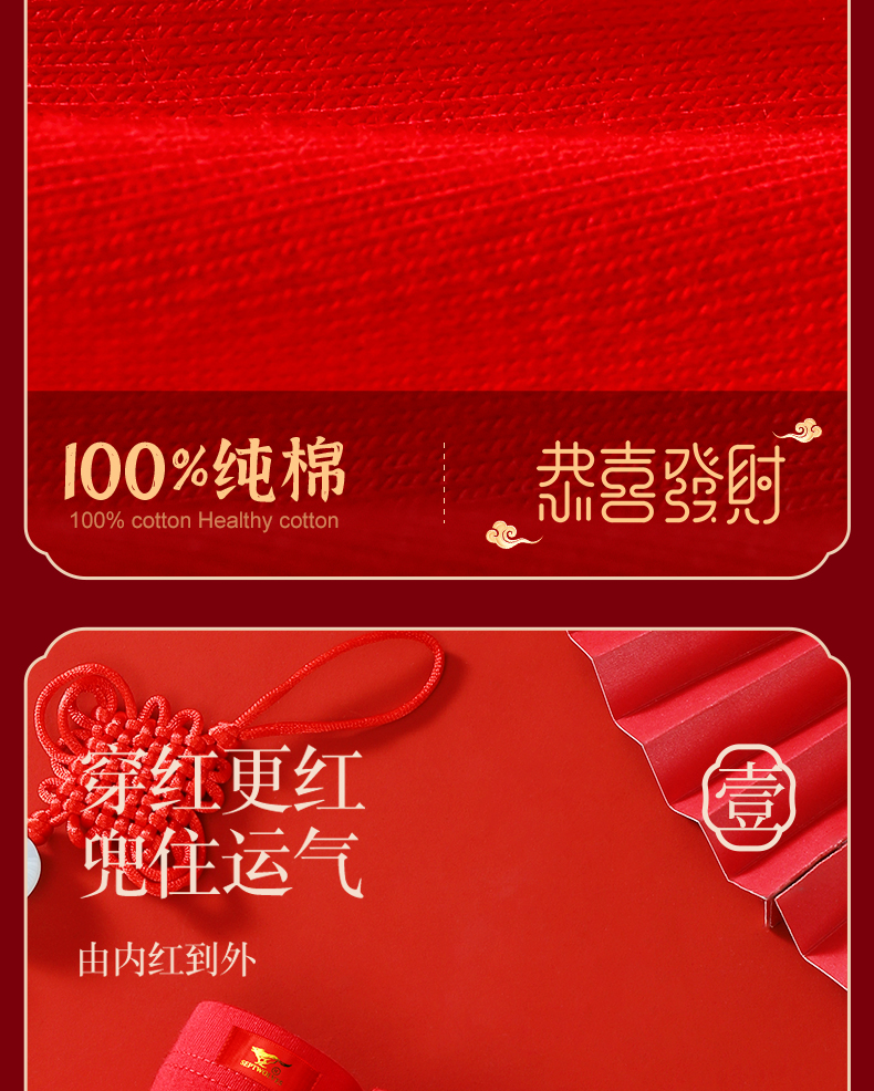 Septwolves Pure Cotton Red Boxer Briefs for Men, Large Size, New Model for the Year of the Horse, Men's Boxer Shorts