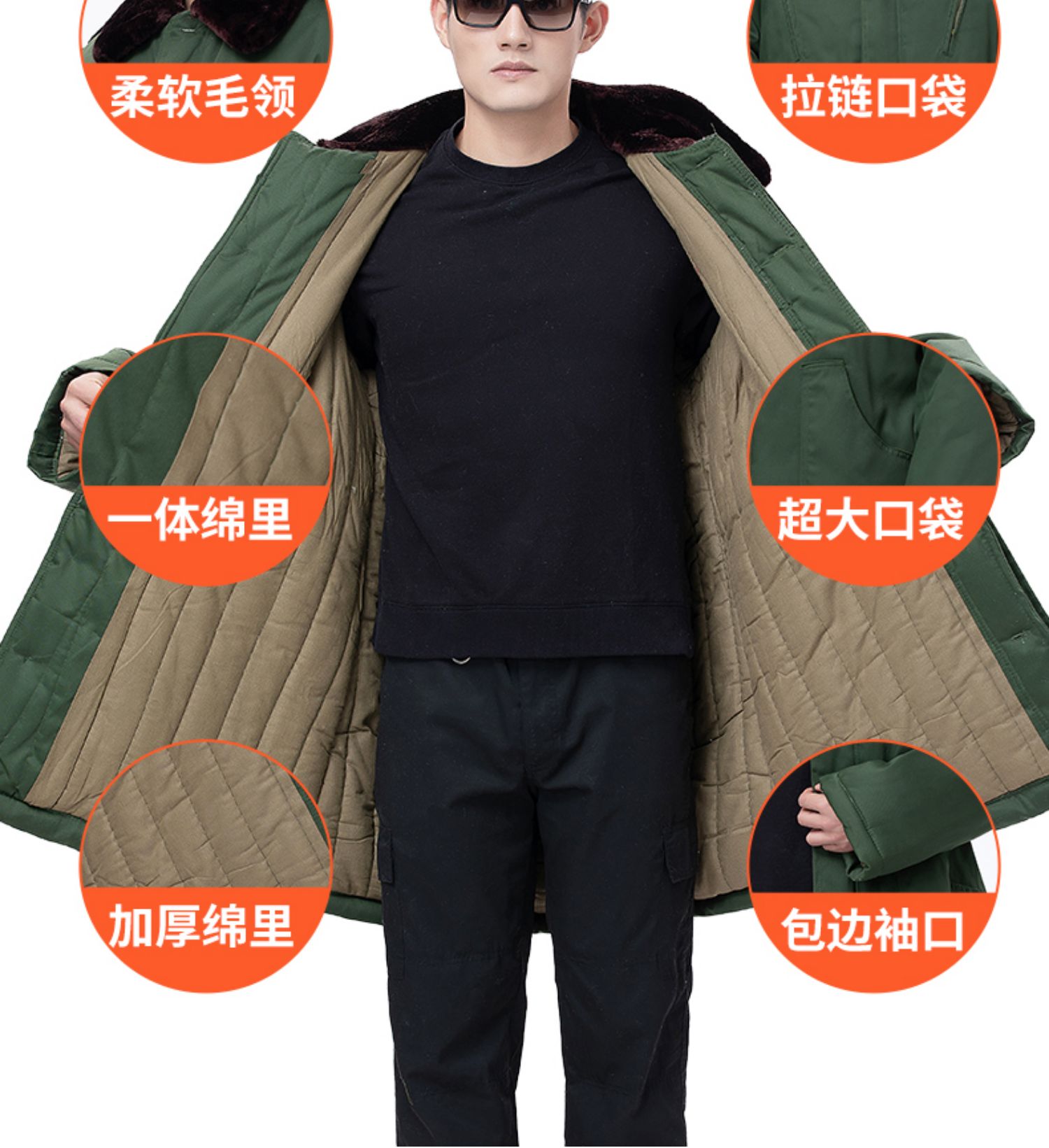 Old-Style Military Overcoat for Men, Winter Thickened and Warm, Northeast Military Overcoat, Cotton-Padded Jacket, Mid-Length Cotton Clothing, Cold Storage Cotton Coat