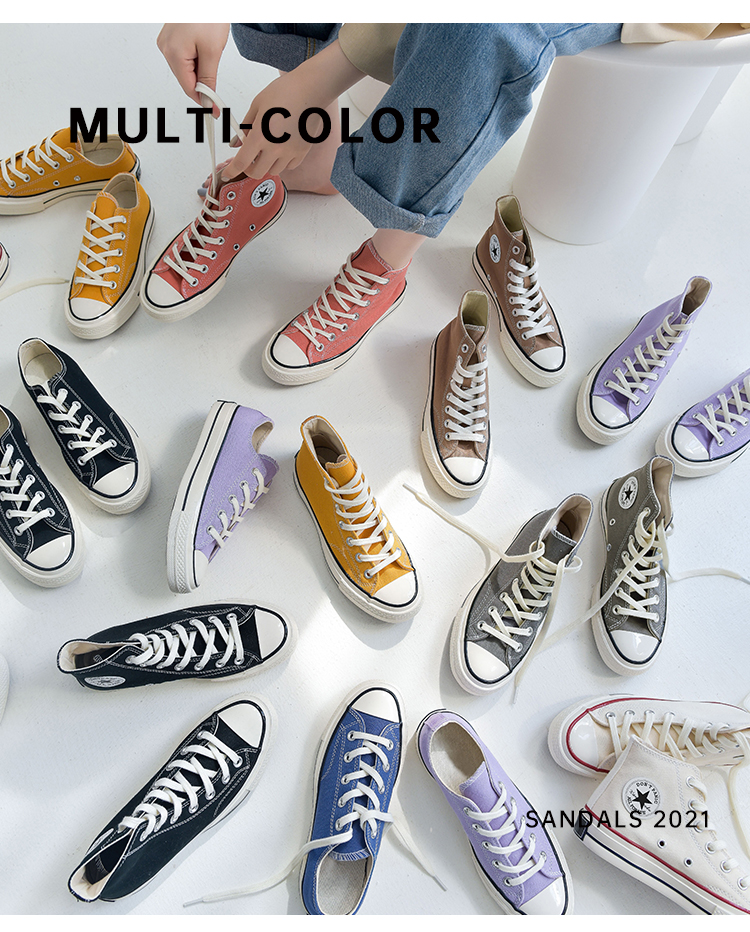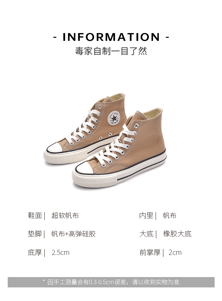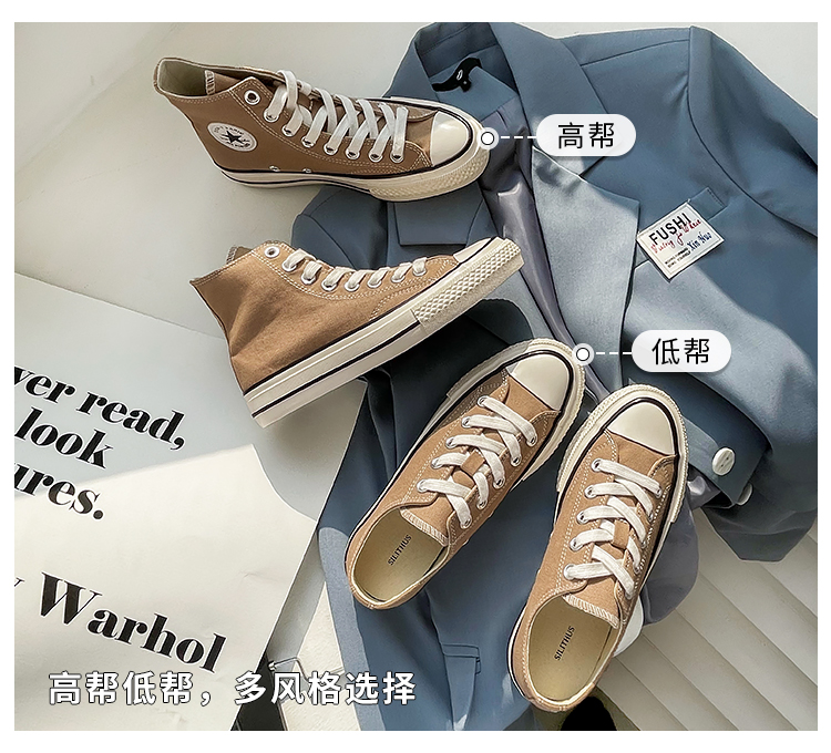 Hong Kong Original Canvas Shoes for Women, High-Top White Shoes, 2025 Spring and Autumn Style, Trendy Korean Version, Versatile Flat Casual Shoes