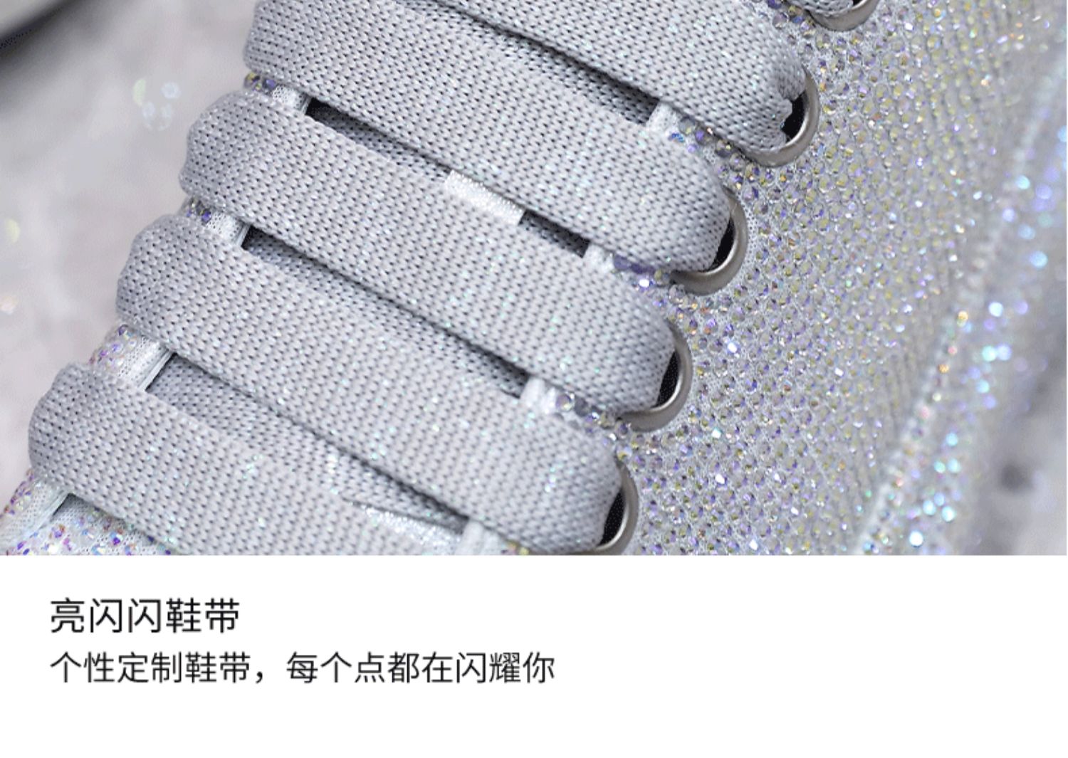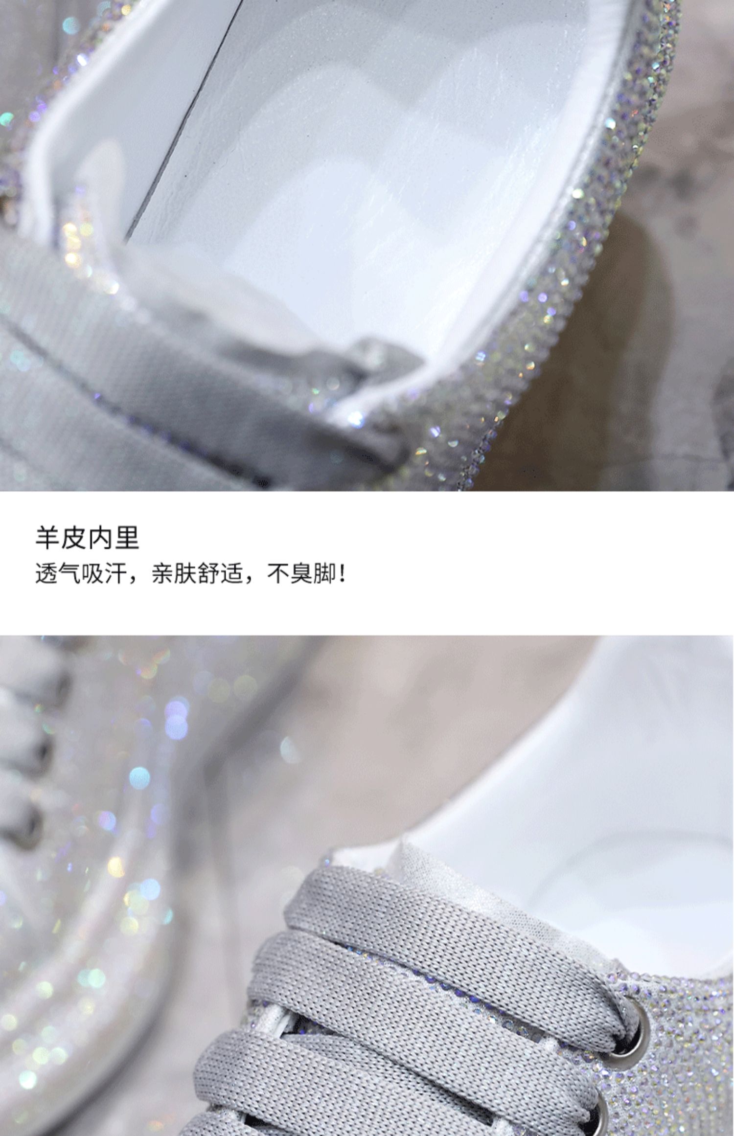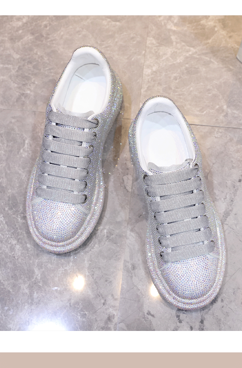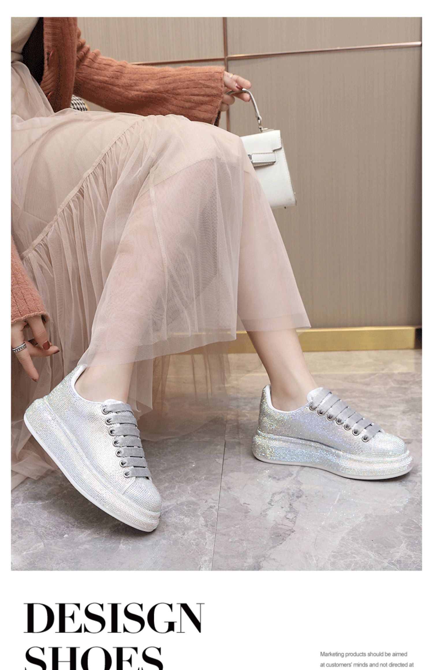 Hong Kong Rhinestone Platform Shoes for Women 2025 Spring and Autumn New Versatile Korean Style White Shoes Thick-Soled Casual Sneakers Sports Shoes