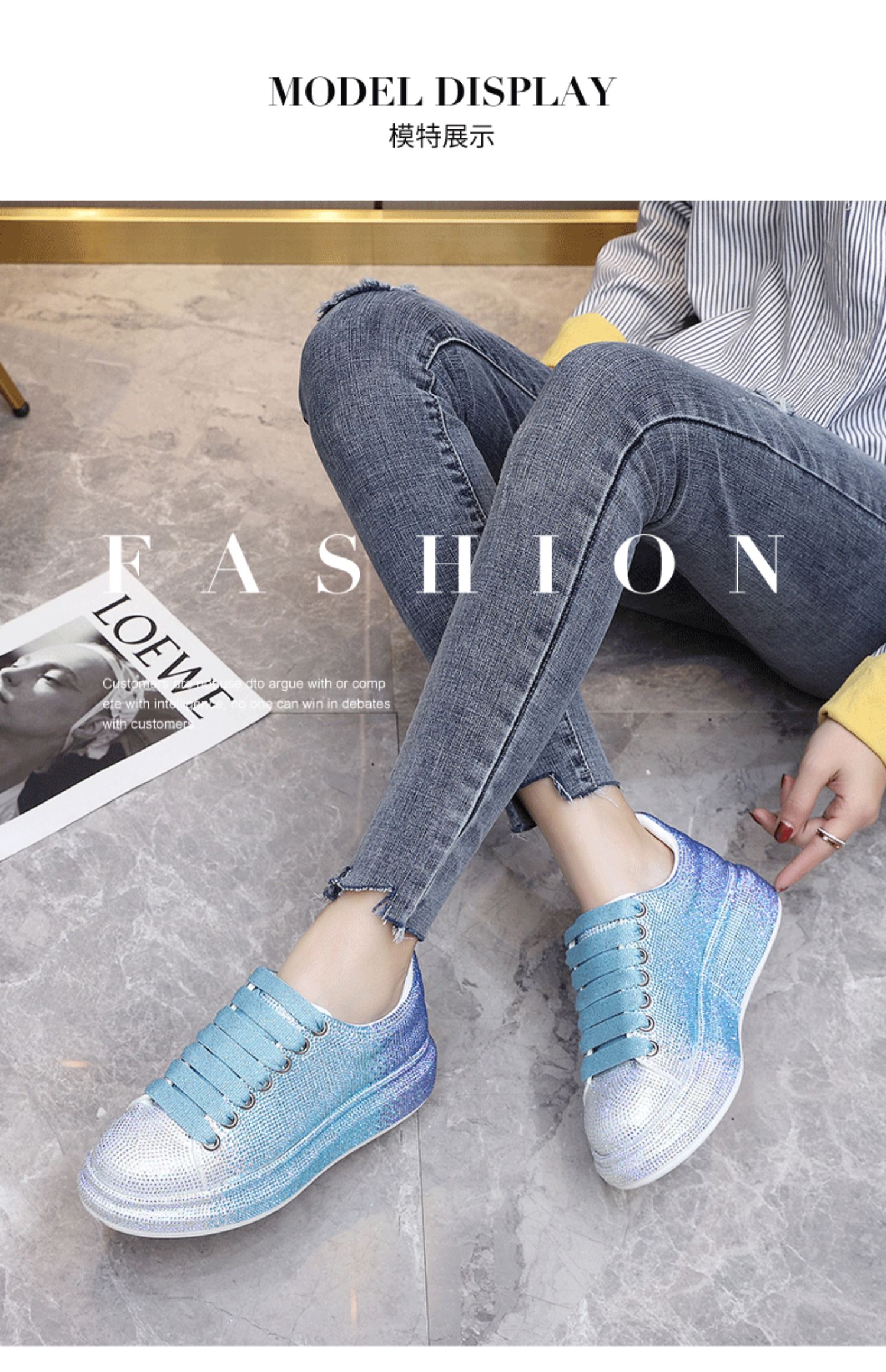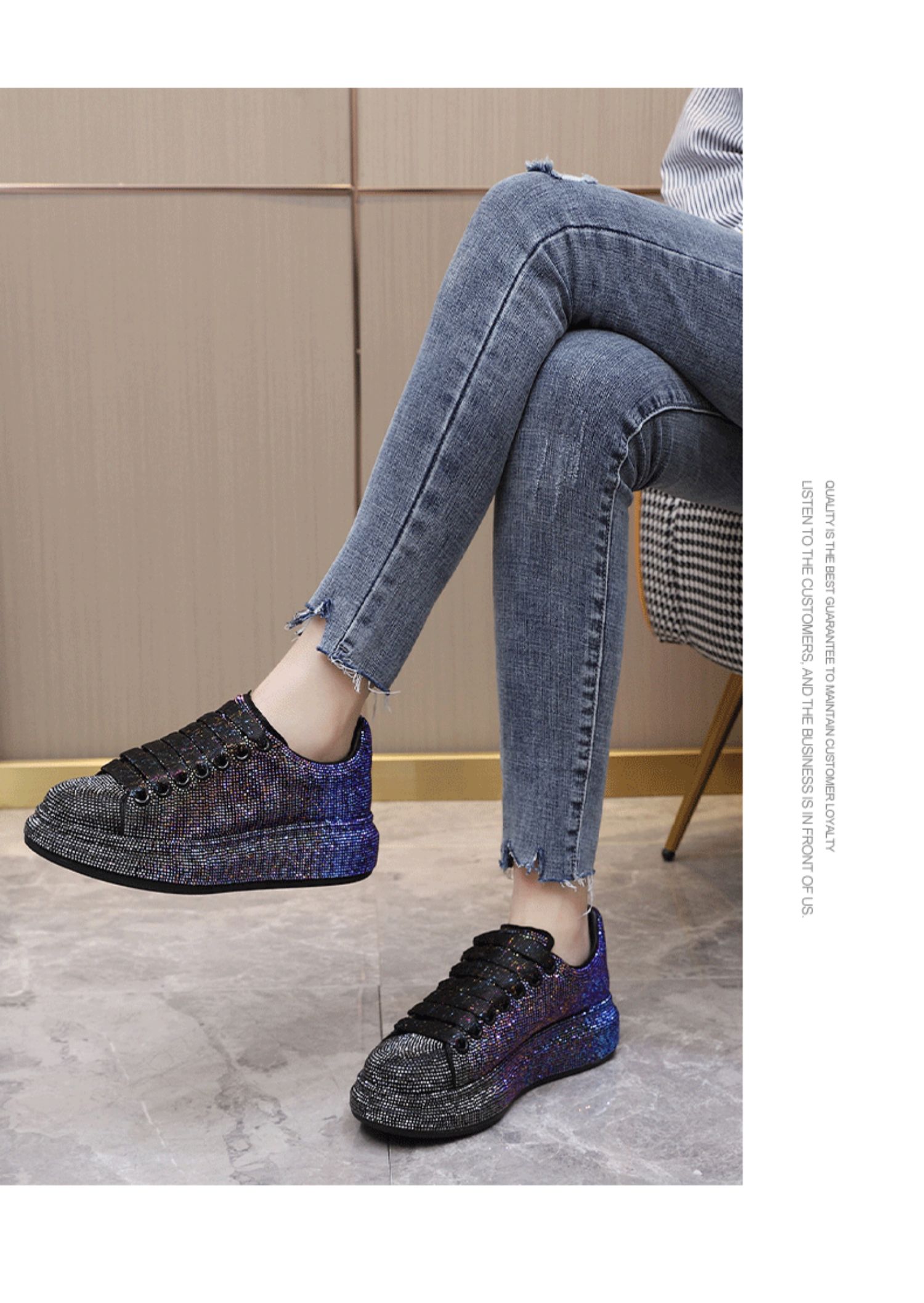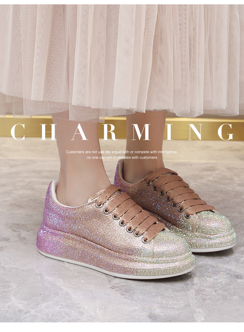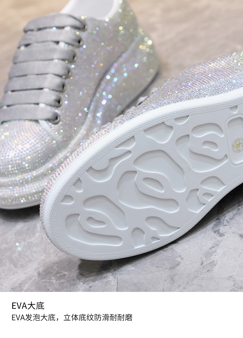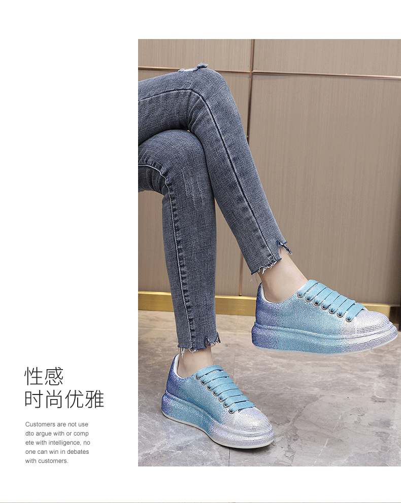 Hong Kong Rhinestone Platform Shoes for Women 2025 Spring and Autumn New Versatile Korean Style White Shoes Thick-Soled Casual Sneakers Sports Shoes
