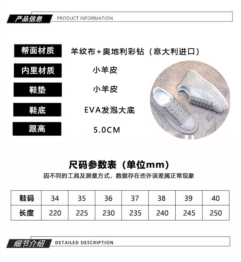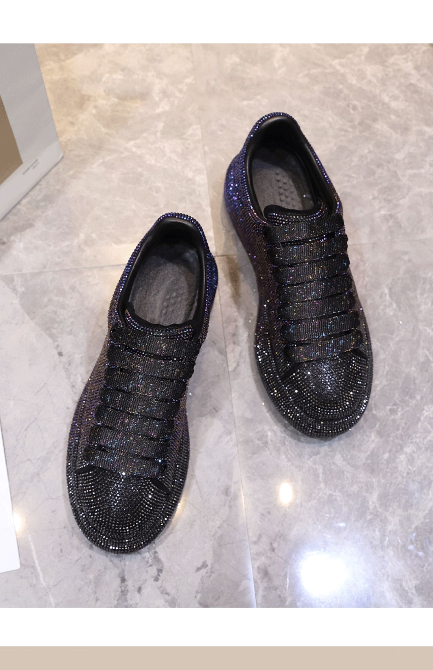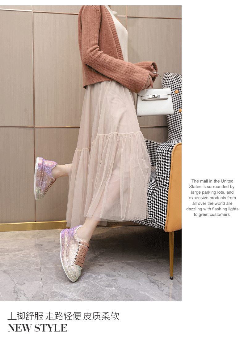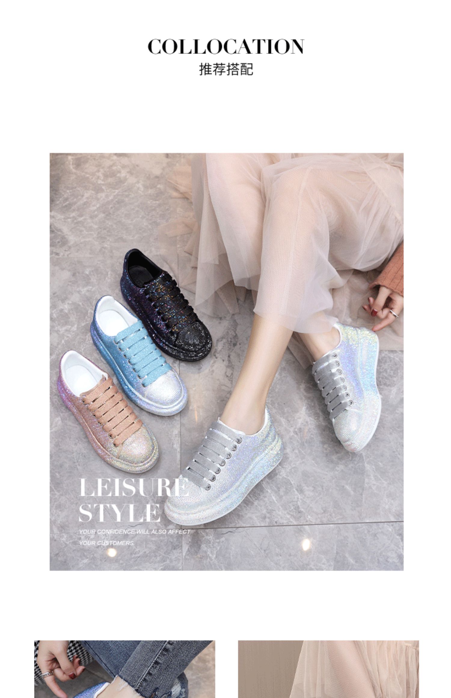 Hong Kong Rhinestone Platform Shoes for Women 2025 Spring and Autumn New Versatile Korean Style White Shoes Thick-Soled Casual Sneakers Sports Shoes