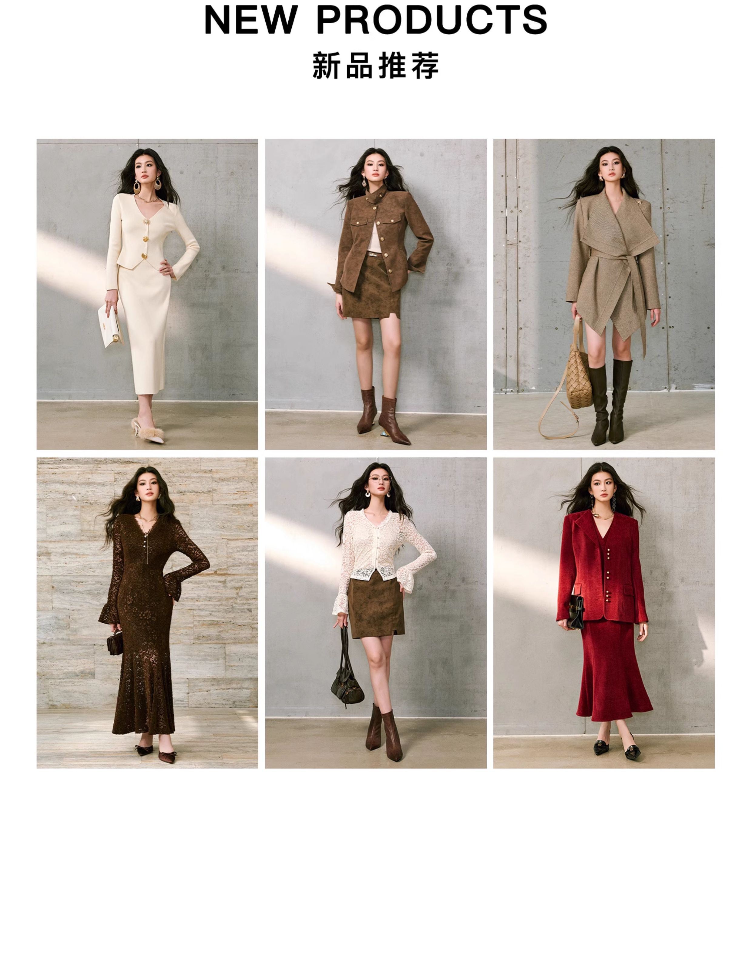 Wangxo|Tr Tangled Knit | Bone-Slimming Tailoring with Hand-Pleated Details | One-Line Neckline Side Slit Tank Dress