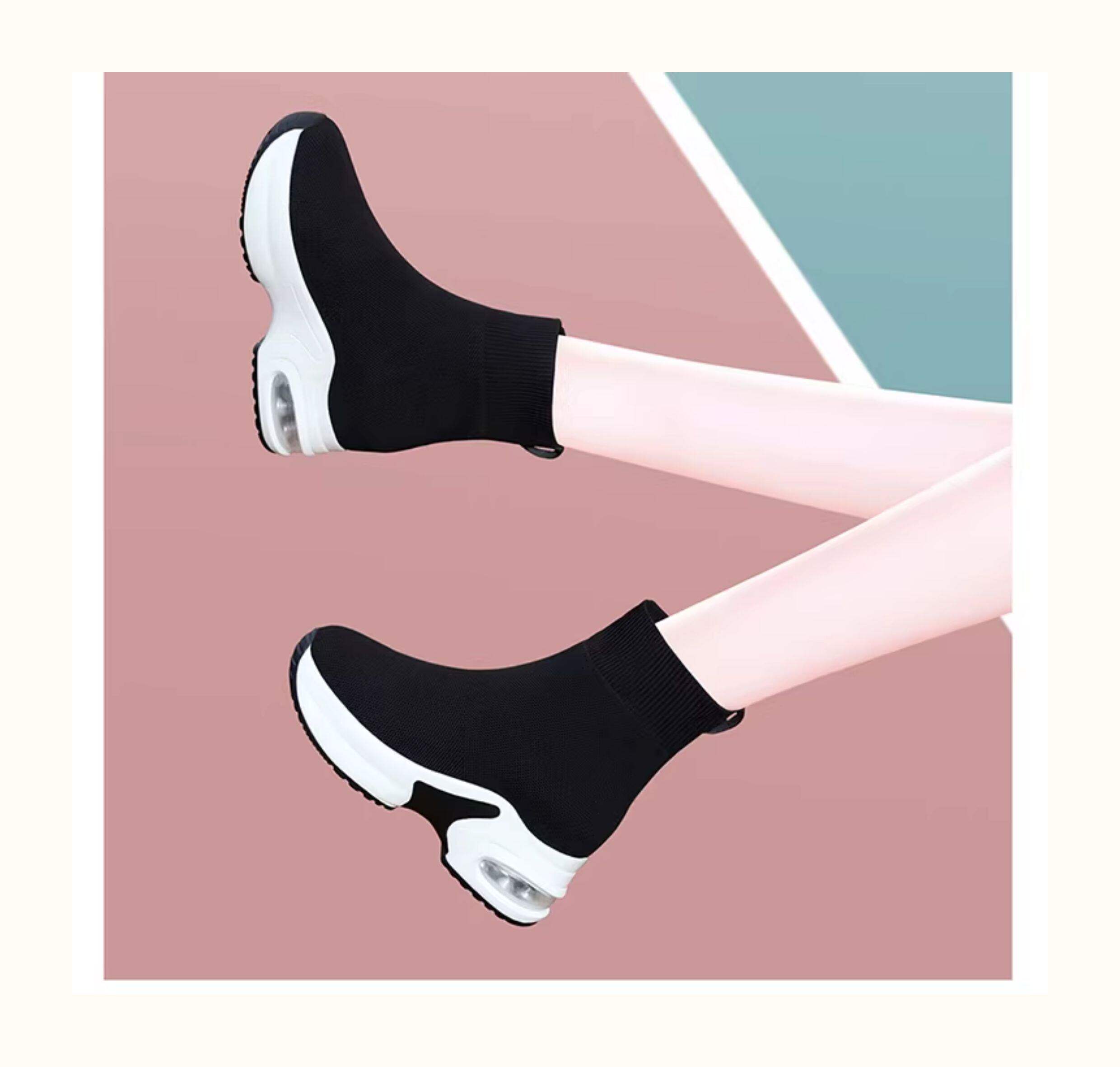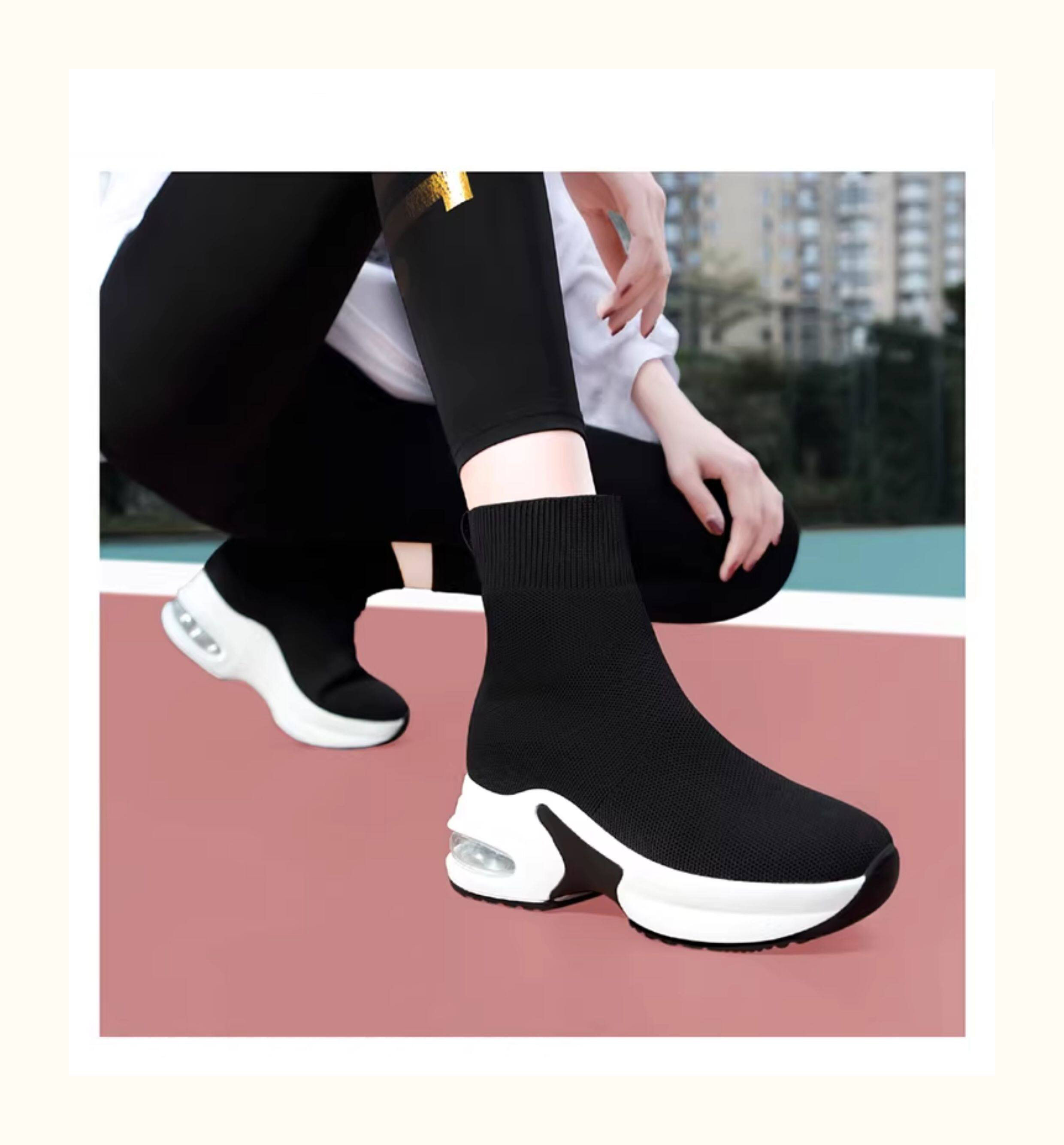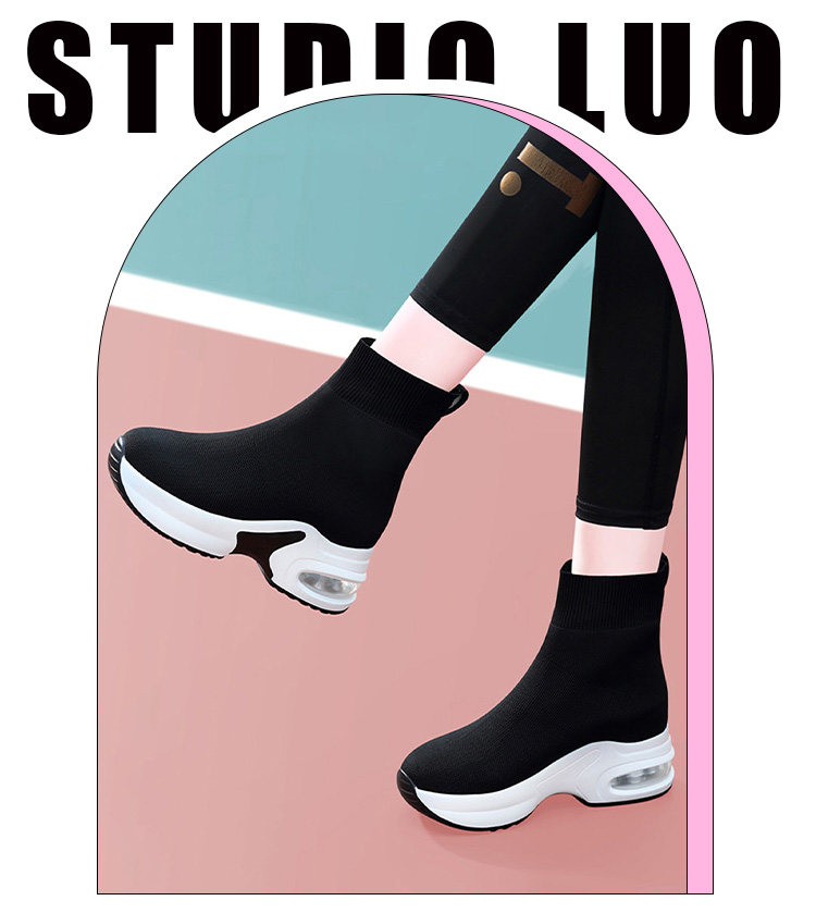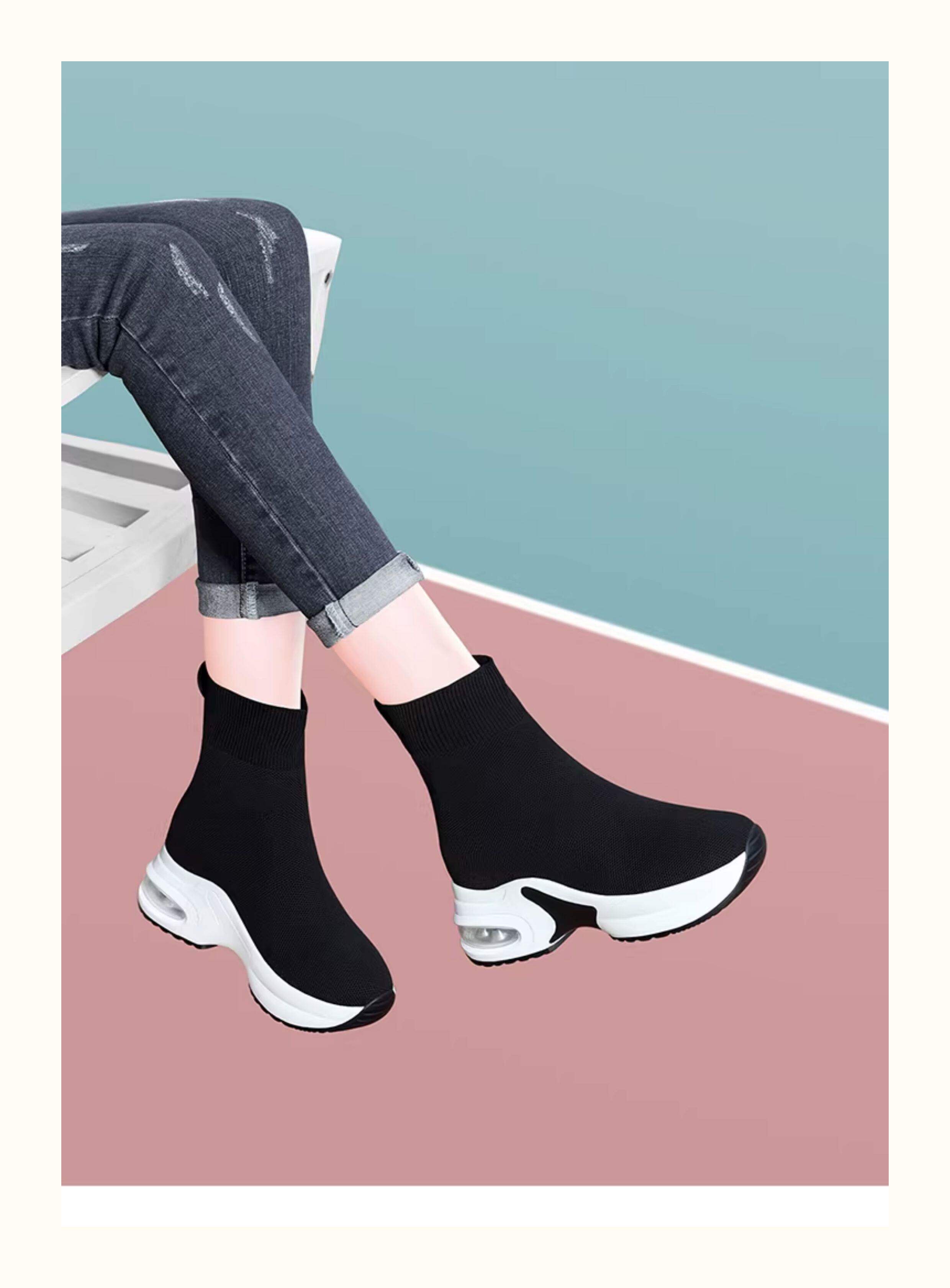 Hong Kong High-Top Elastic Sock Shoes for Women 2026 Spring and Autumn New Thick-Soled Knitted Sock Boots Casual Fly-Knit Sports Shoes