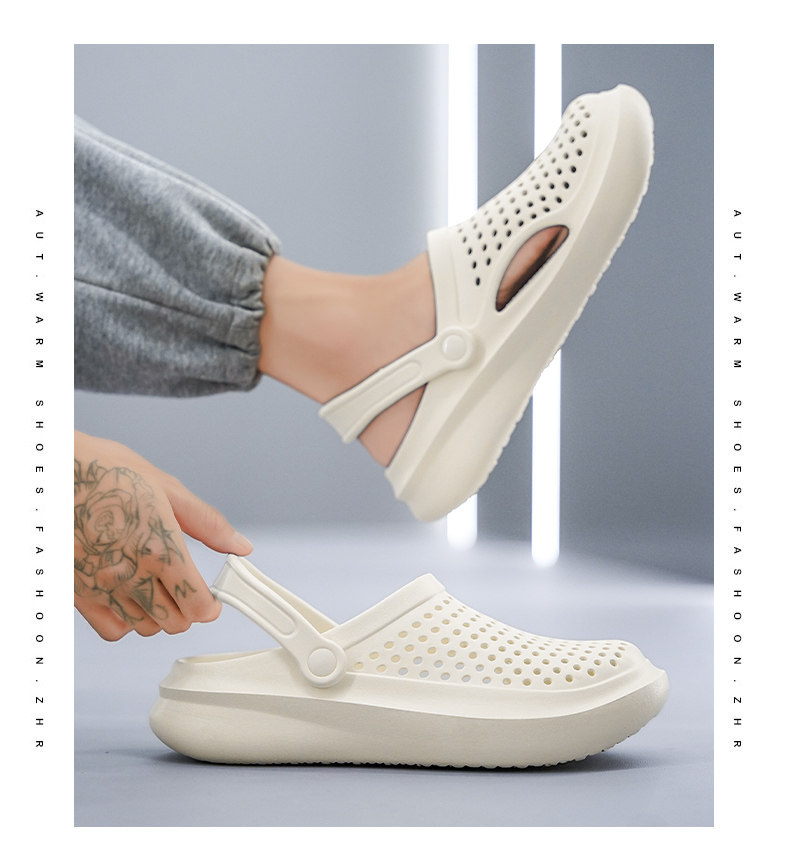 Thick Sole Crocs Men's Summer Outwear Non Slip Deodorizing Filter Driver Driving Sandals Men Seaside Beach Shoes